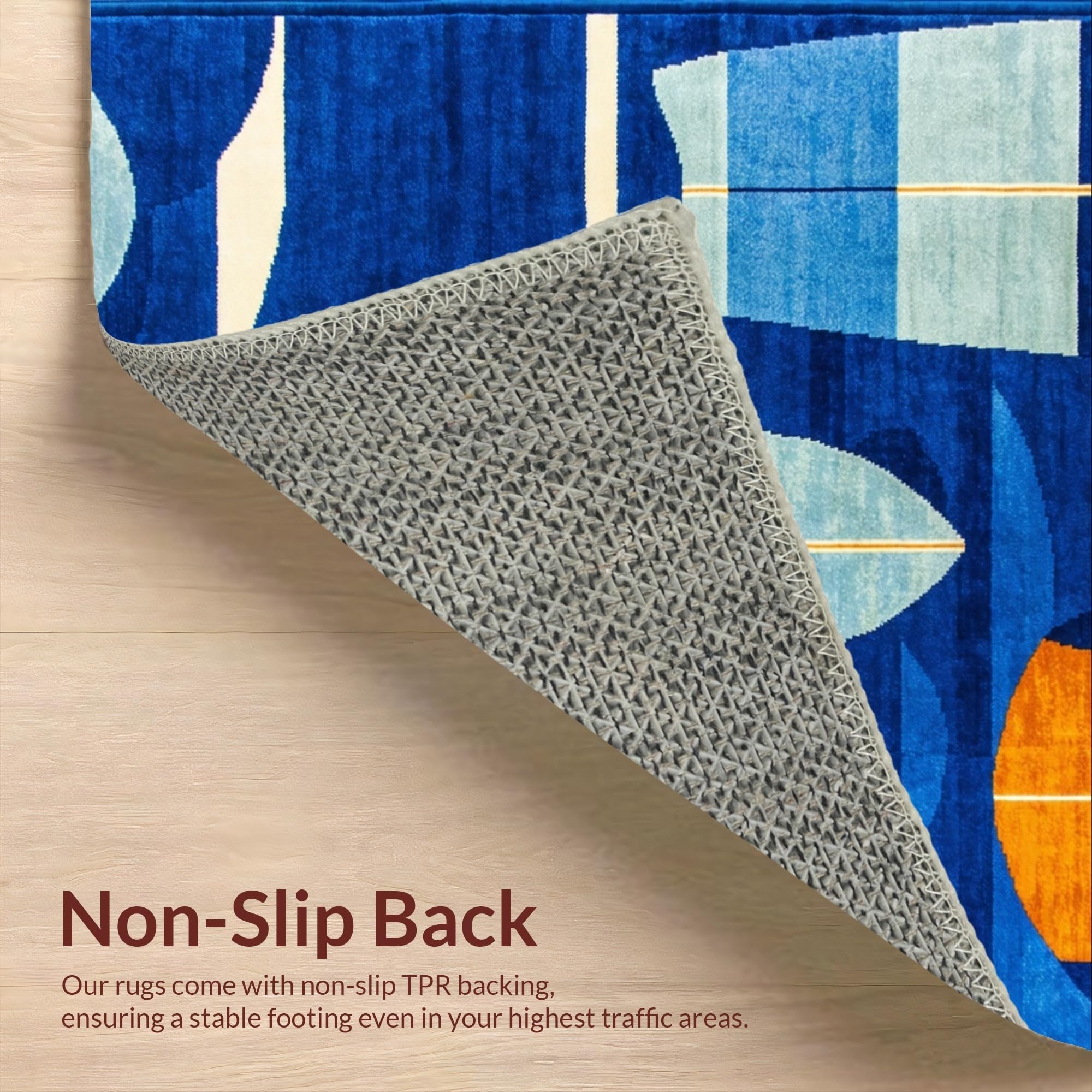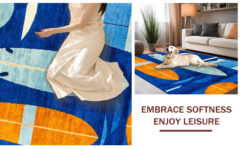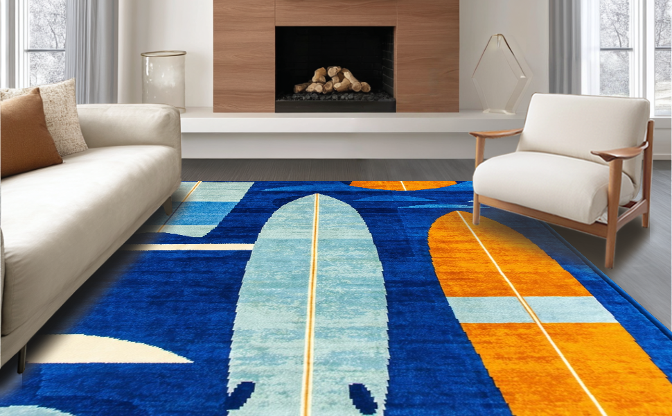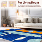 Ultra Soft Area Rug, Non Slip, Stain Resistant, Washable Area Rugs for Living Room, Bedroom, Artful Modern Minimalist Style(Blue) Overview: