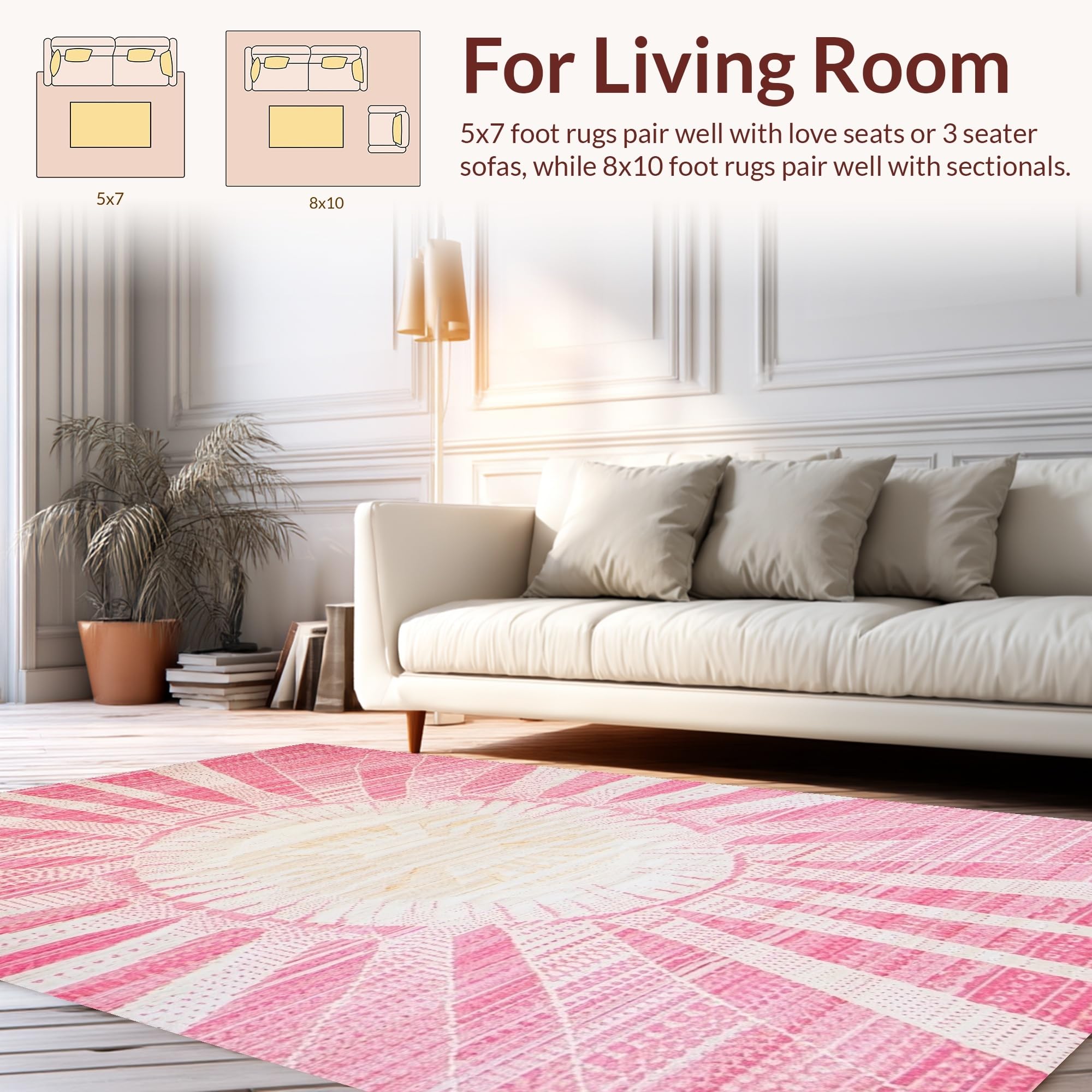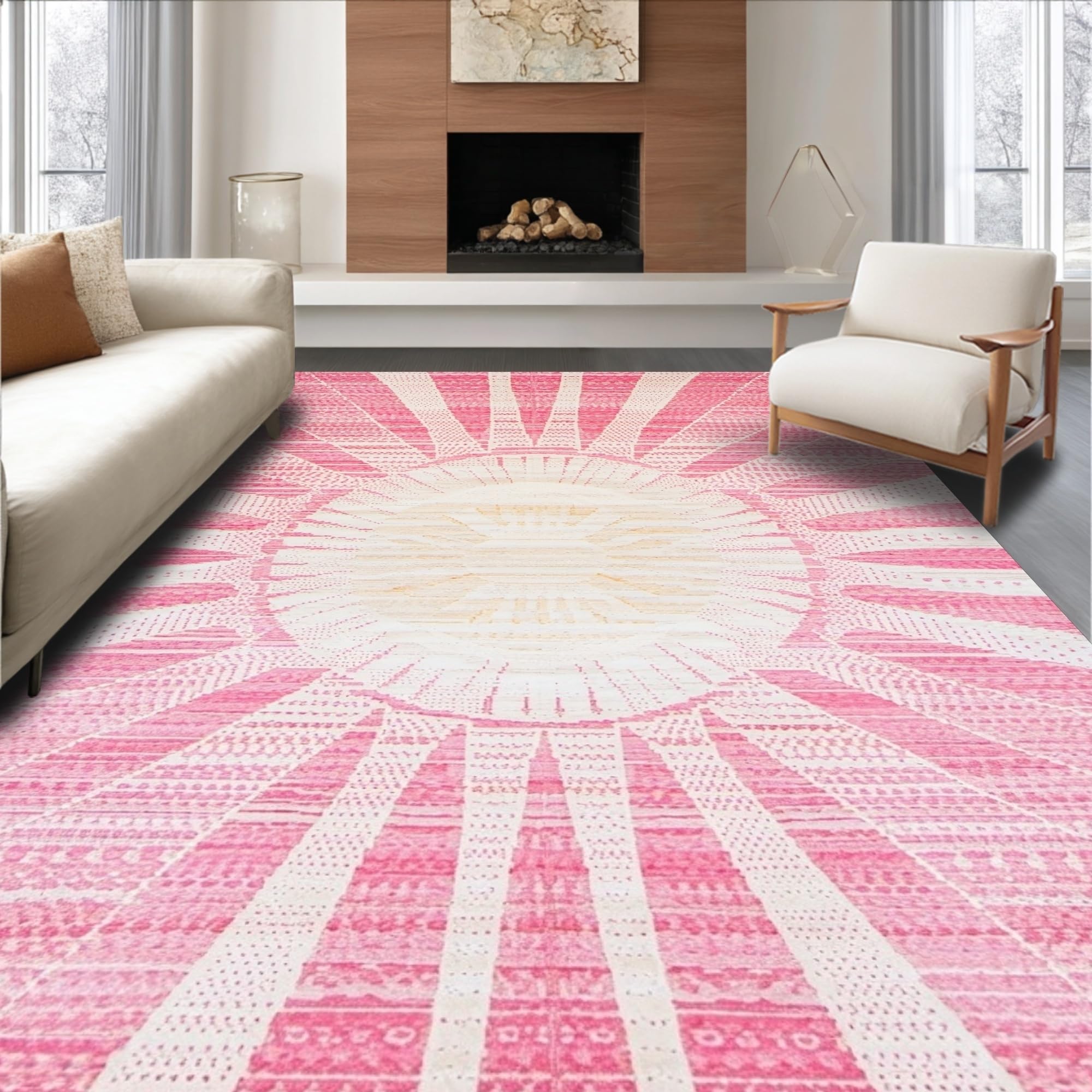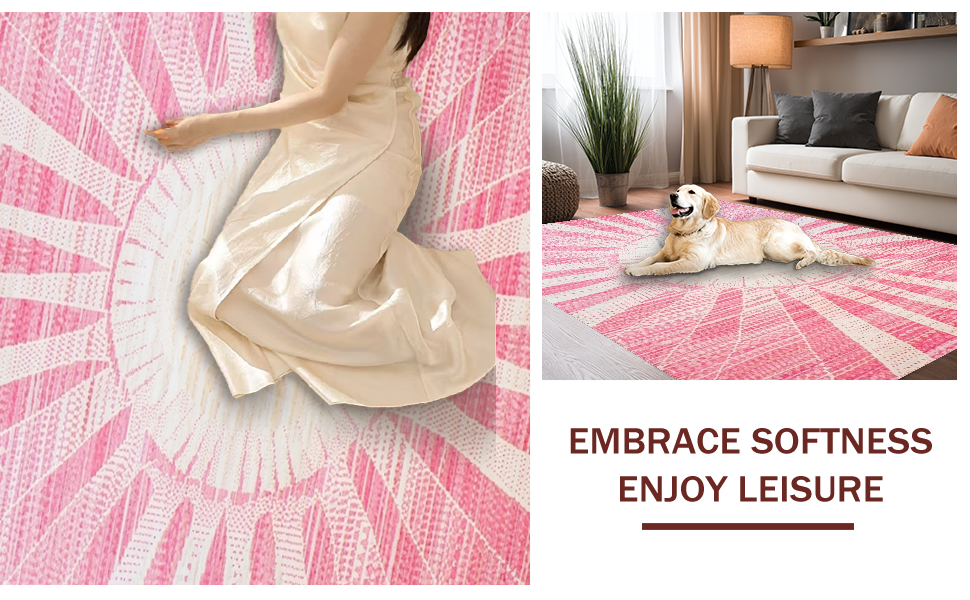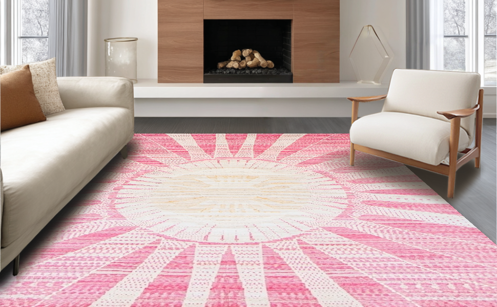 Ultra Soft Area Rug, Non Slip, Stain Resistant, Washable Area Rugs for Living Room, Bedroom, Artful Modern Swirl Arrangement(Pink) Overview: