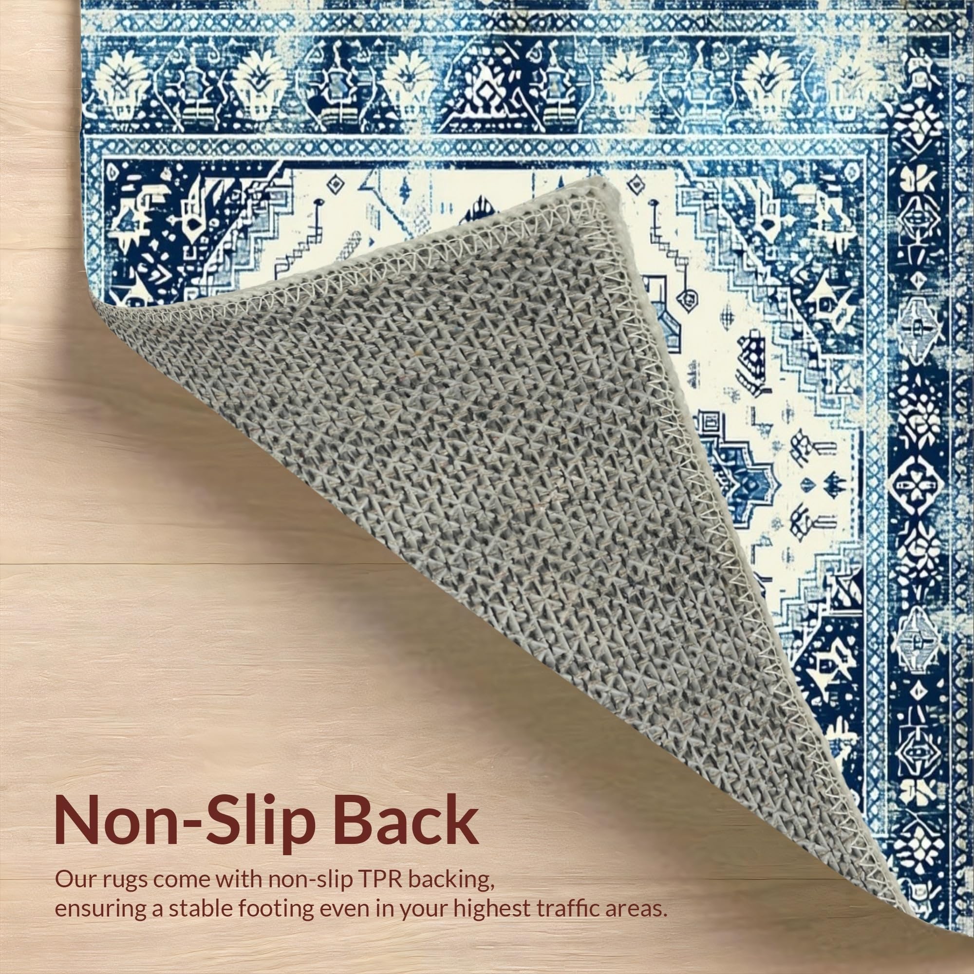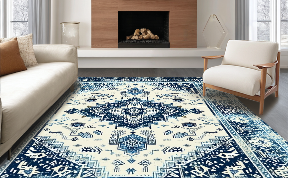 Ultra Soft Area Rug, Non Slip, Stain Resistant, Washable Area Rugs for Living Room, Bedroom, Artful Modern Symmetrical Arrangement(Blue) Overview: