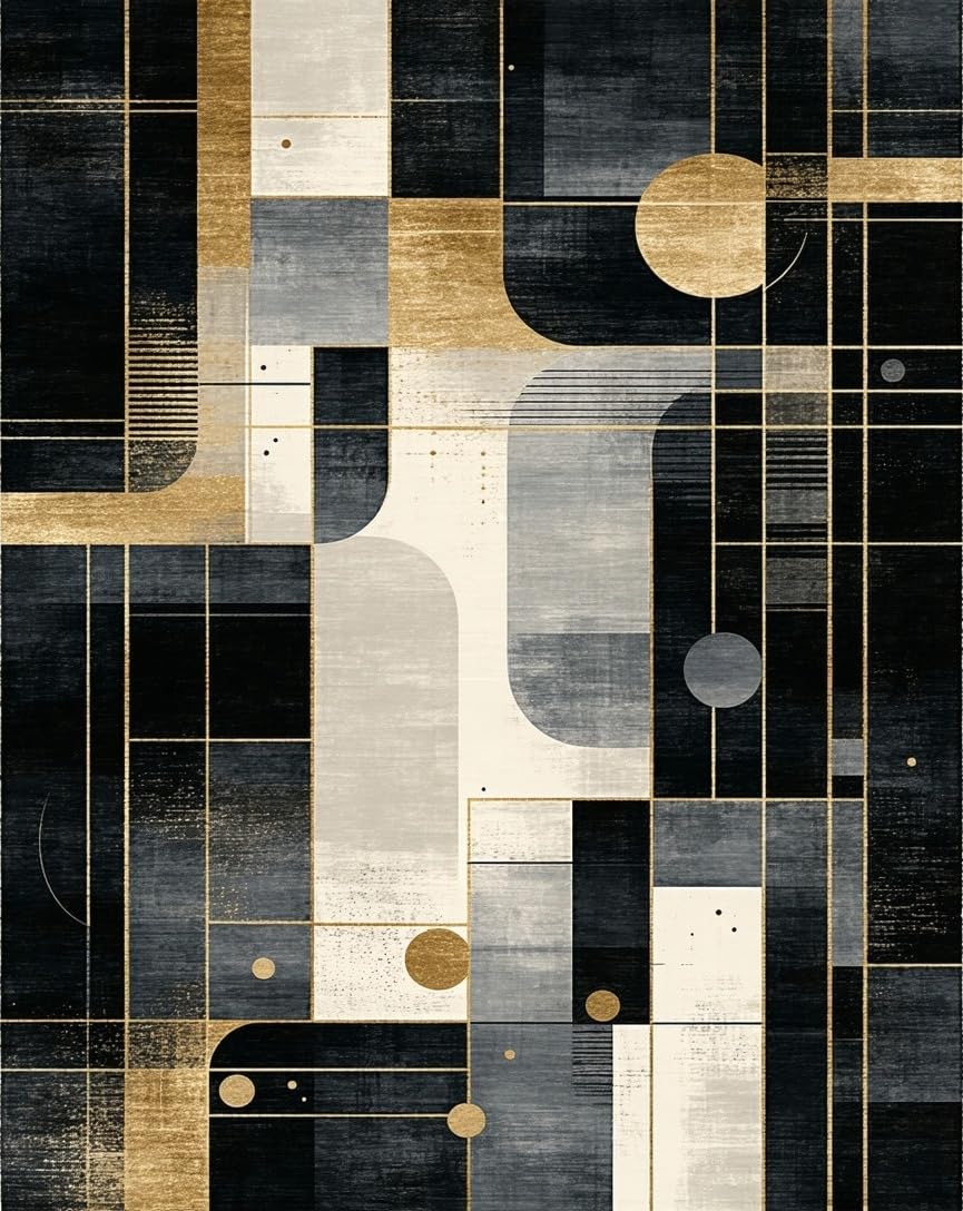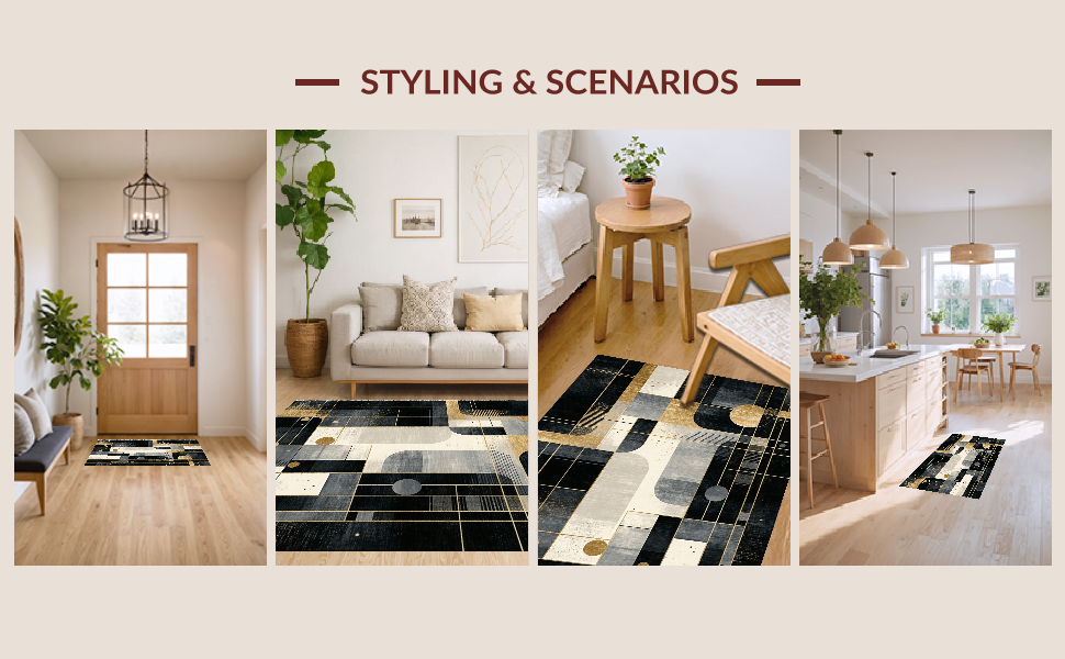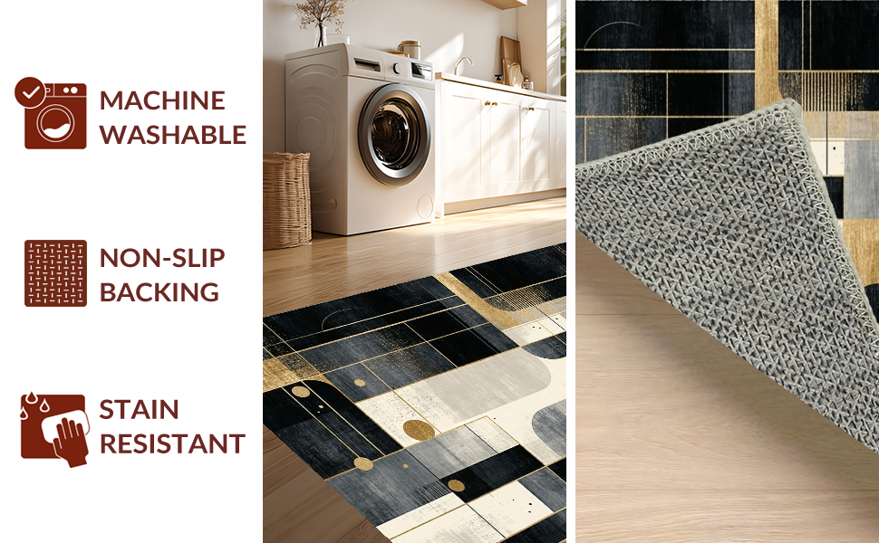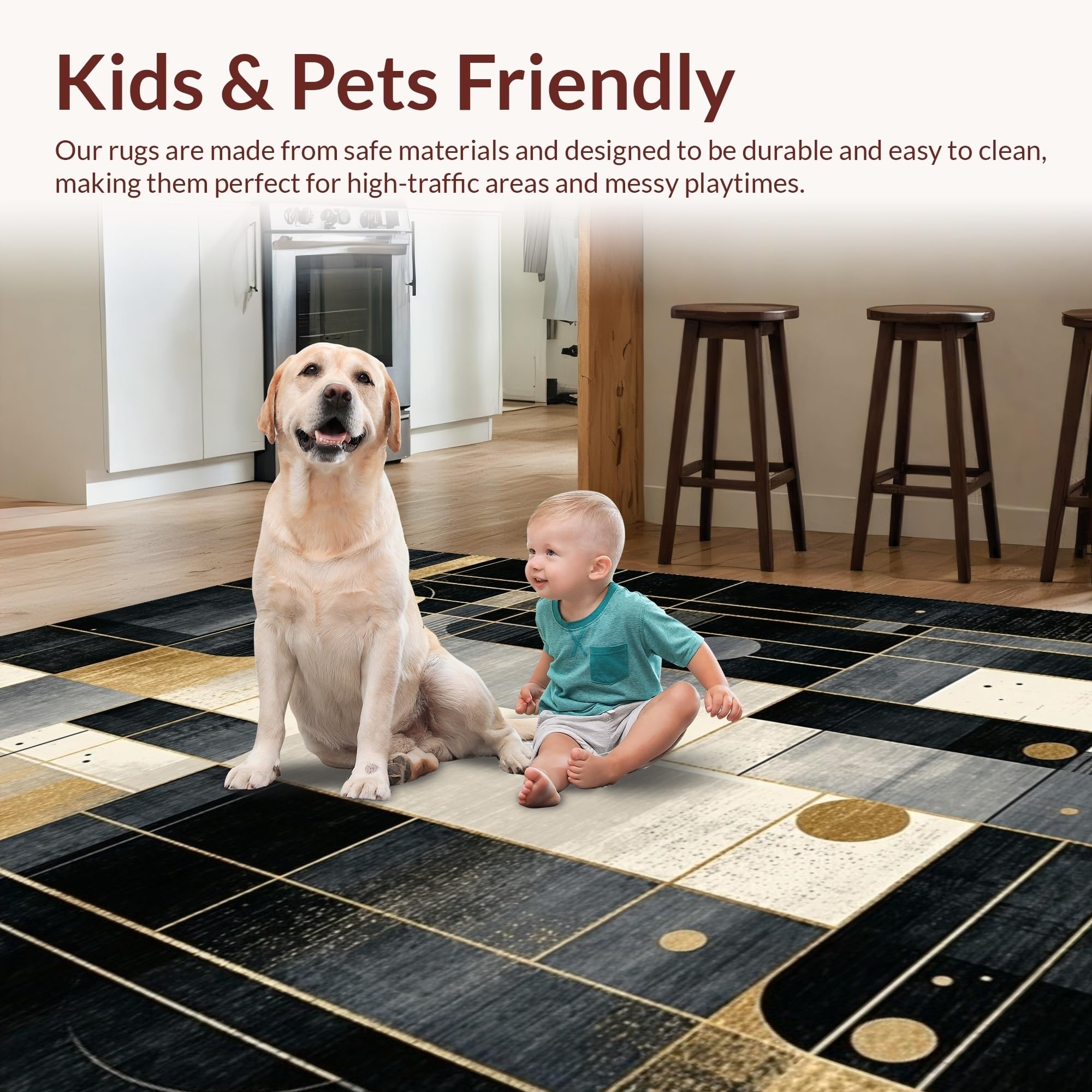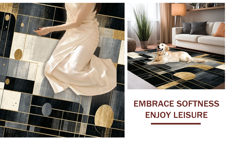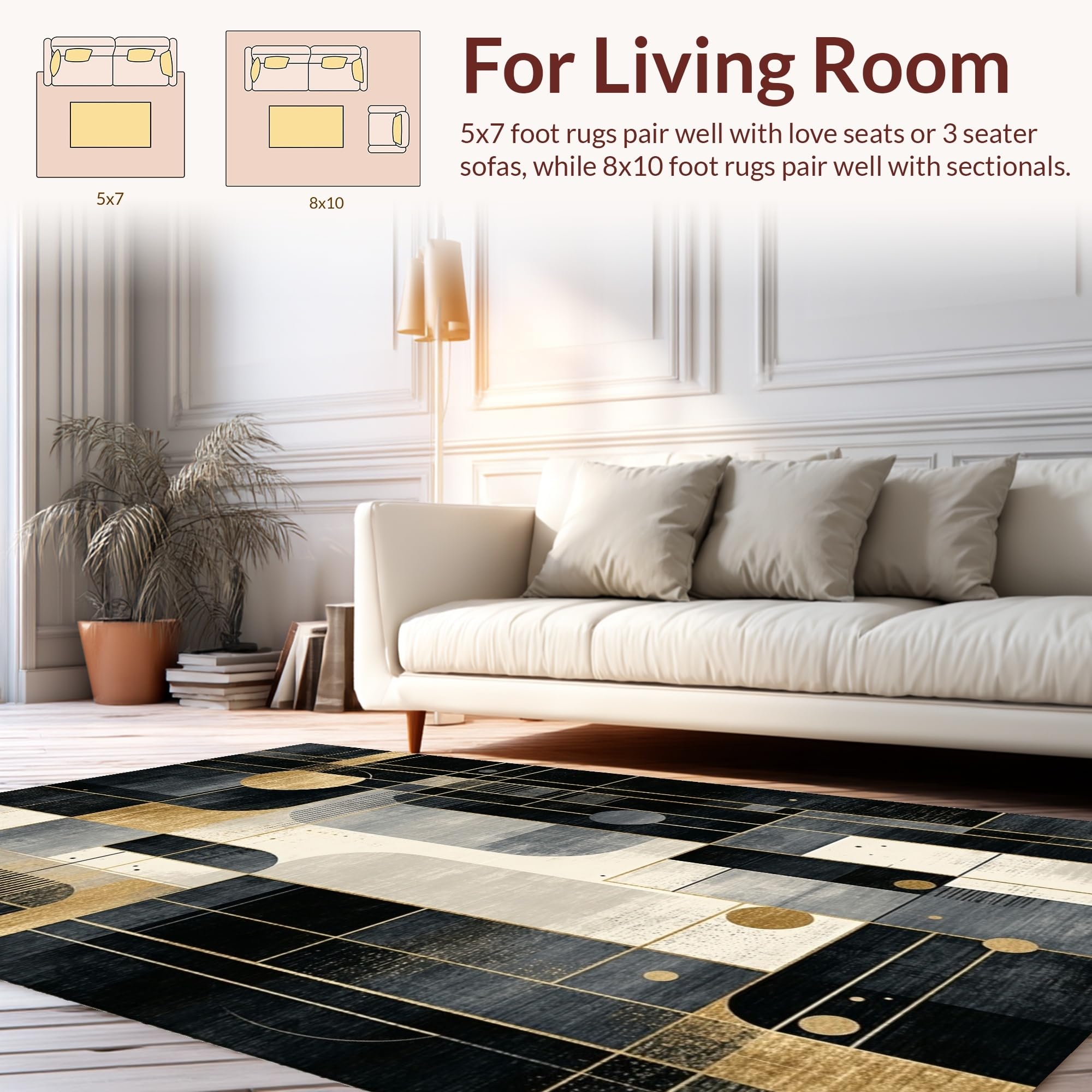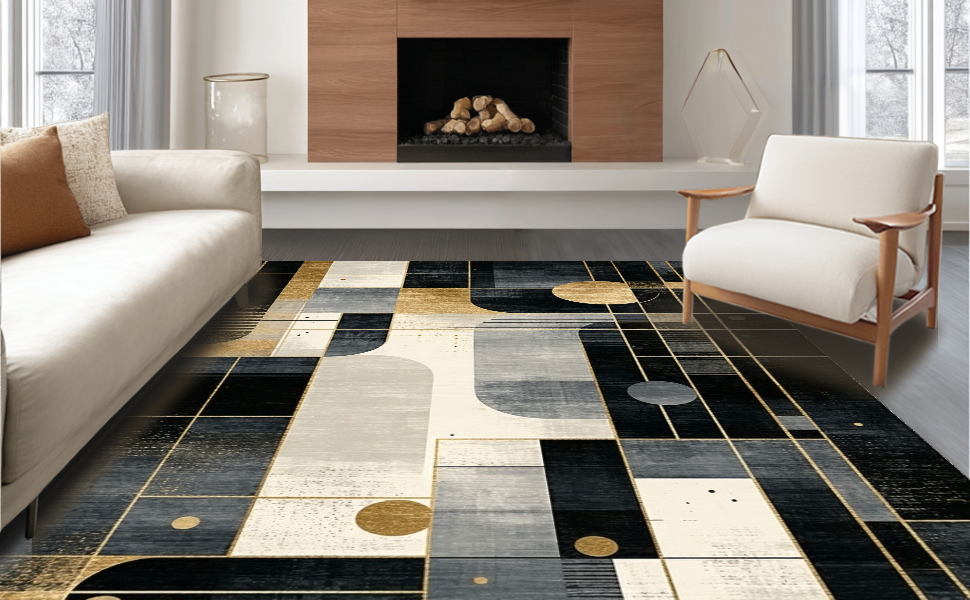 Ultra Soft Area Rug, Non Slip, Stain Resistant, Washable Area Rugs for Living Room, Bedroom, Artful Modern Tiled Arrangement(Black) Overview: