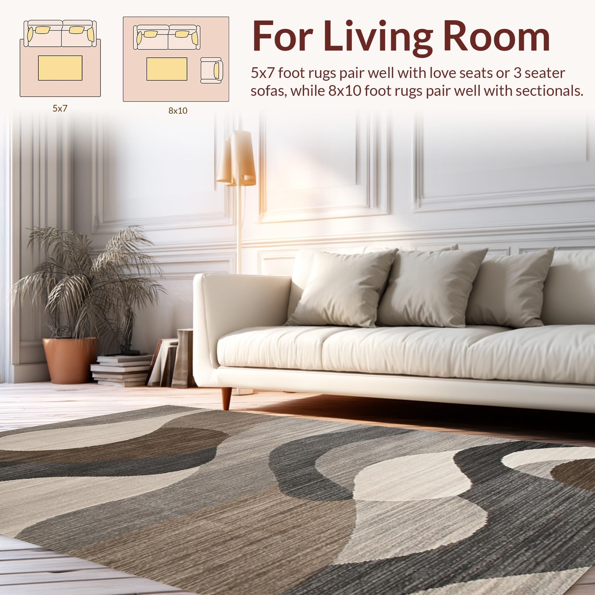 Ultra Soft Area Rug, Non Slip, Stain Resistant, Washable Area Rugs for Living Room, Bedroom, Artful Modern Tiled Composition(Beige) Overview: