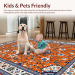 Ultra Soft Area Rug, Non Slip, Stain Resistant, Washable Area Rugs for Living Room, Bedroom, Artful Multicolored Medallion Style(Orange) Overview: