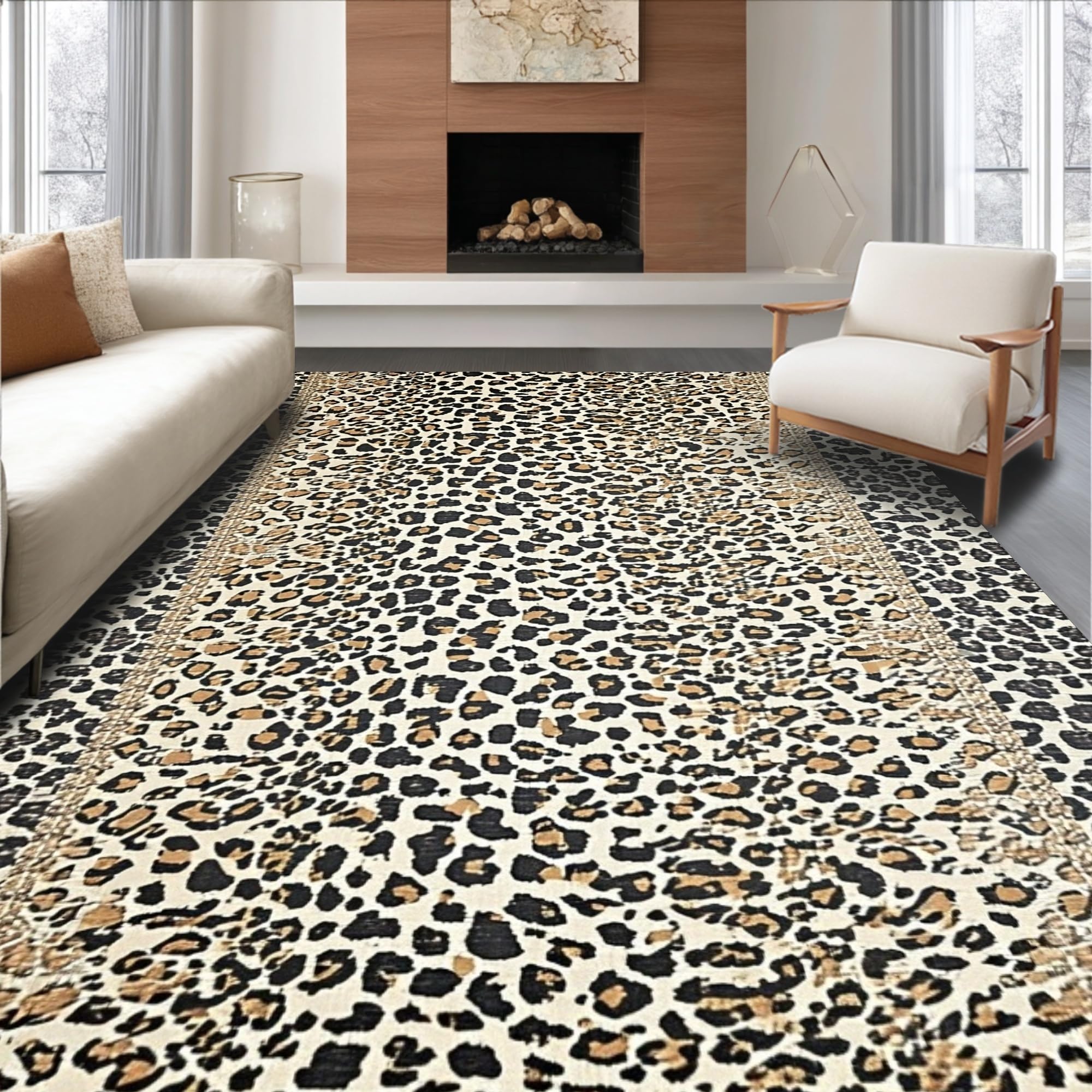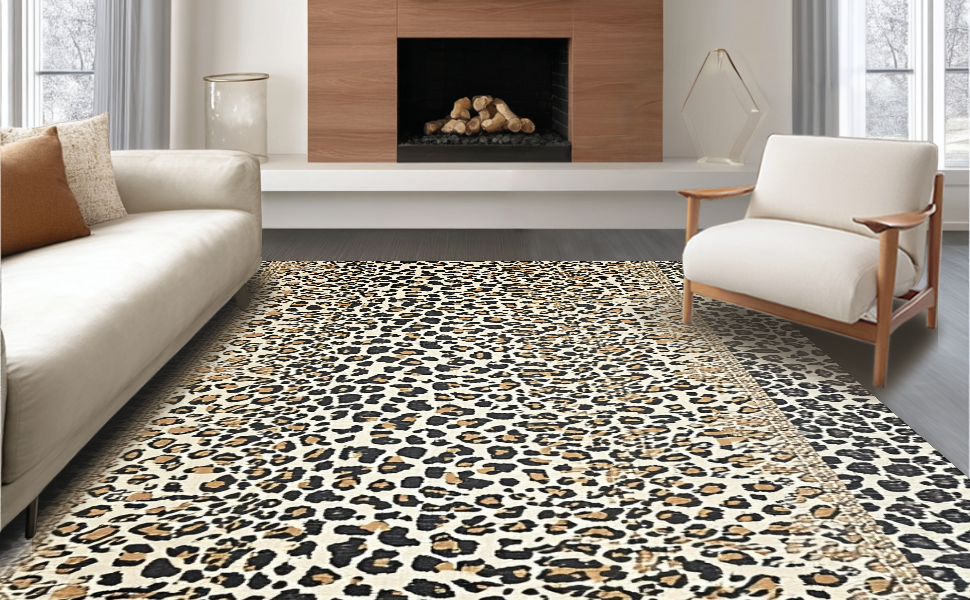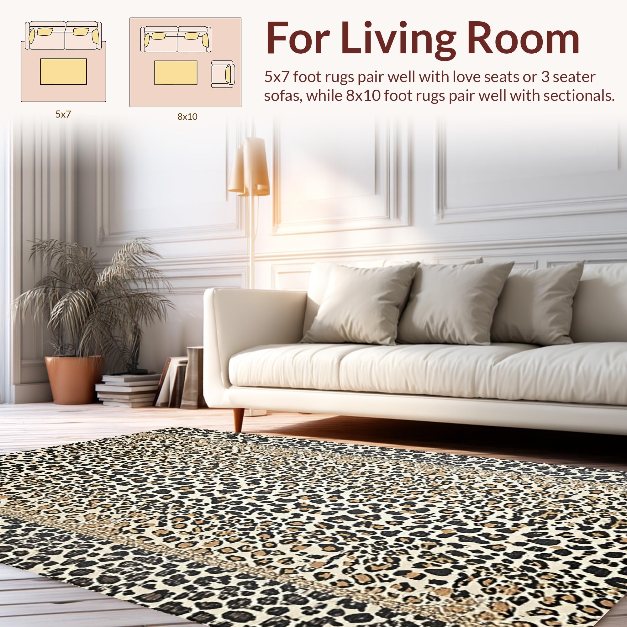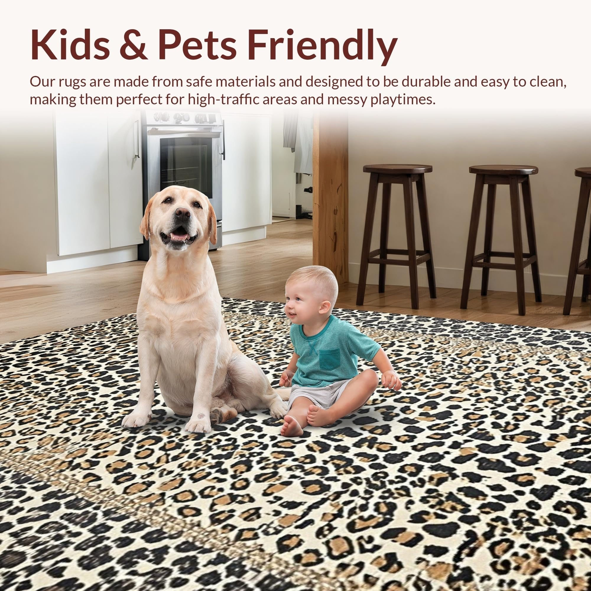 Ultra Soft Area Rug, Non Slip, Stain Resistant, Washable Area Rugs for Living Room, Bedroom, Artful Naturalistic Design Elements(Beige) Overview:
