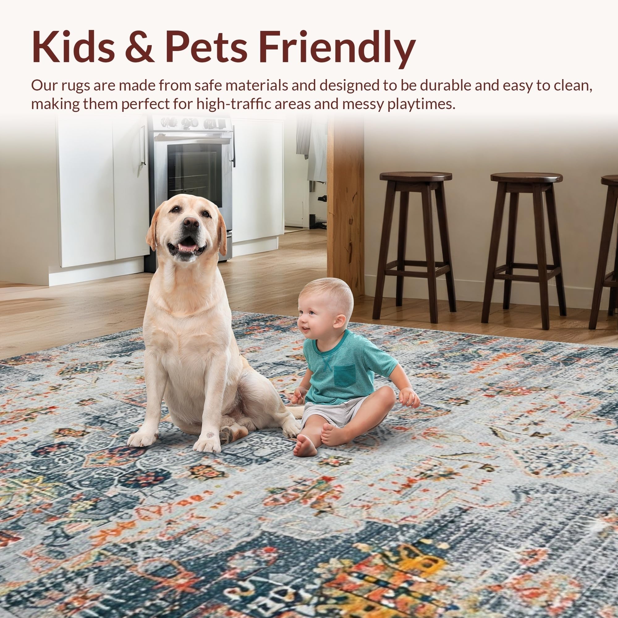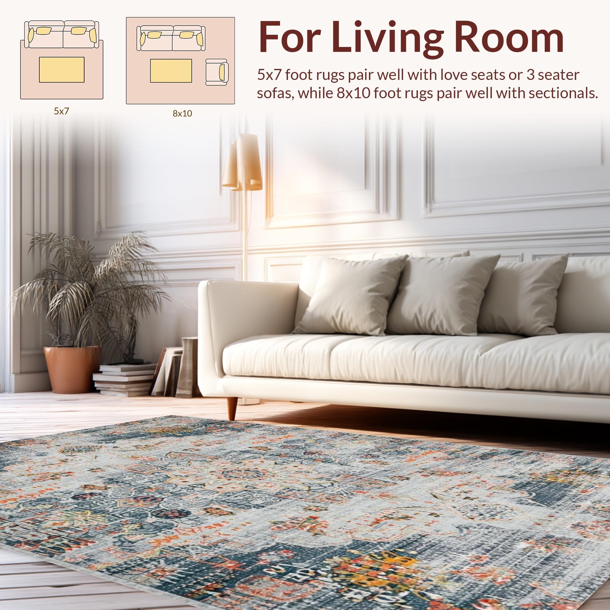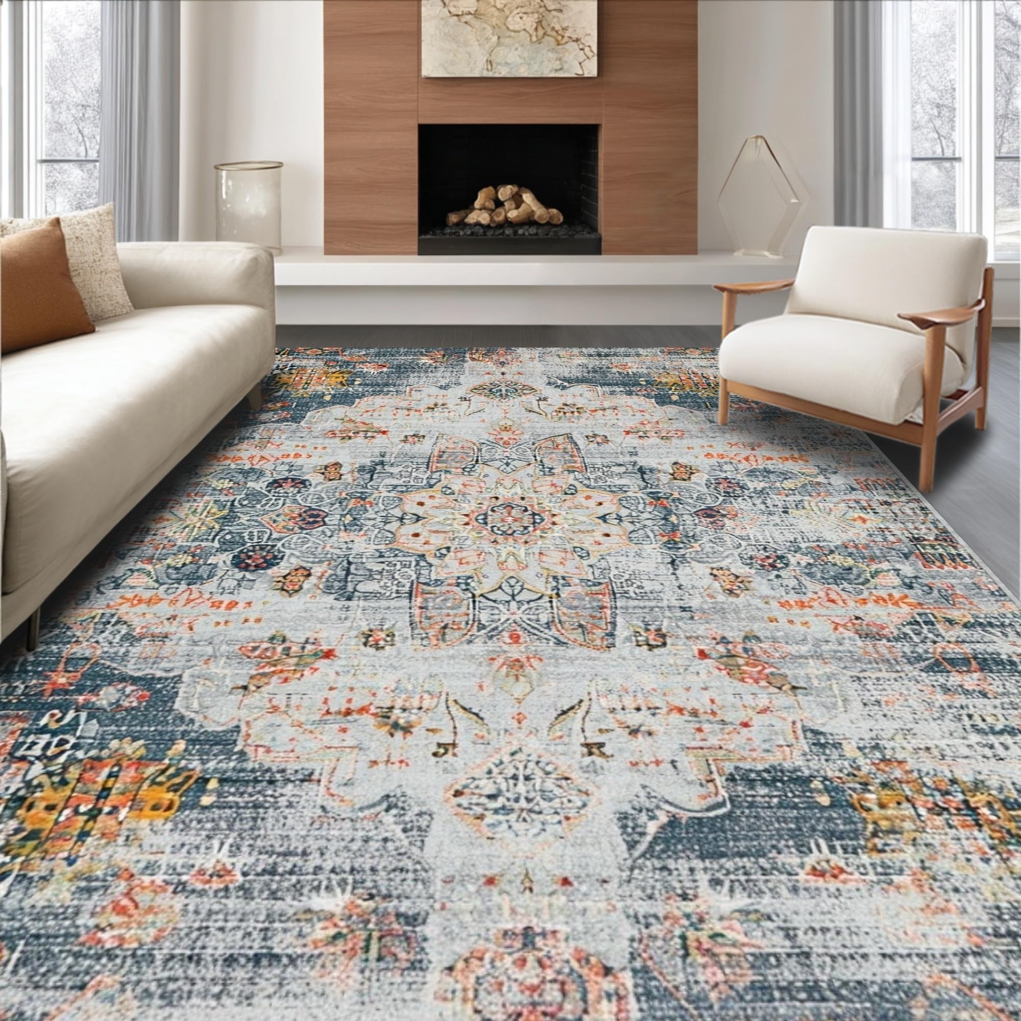 Ultra Soft Area Rug, Non Slip, Stain Resistant, Washable Area Rugs for Living Room, Bedroom, Artful Nature-Inspired Botanical Print(Gray) Overview: