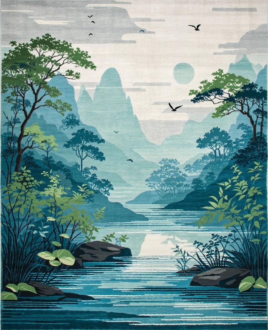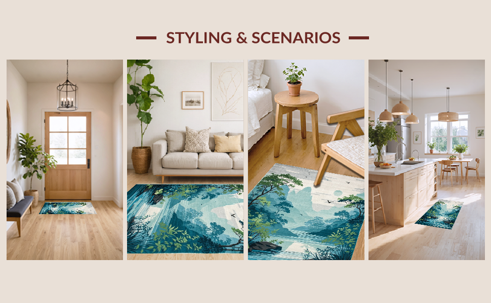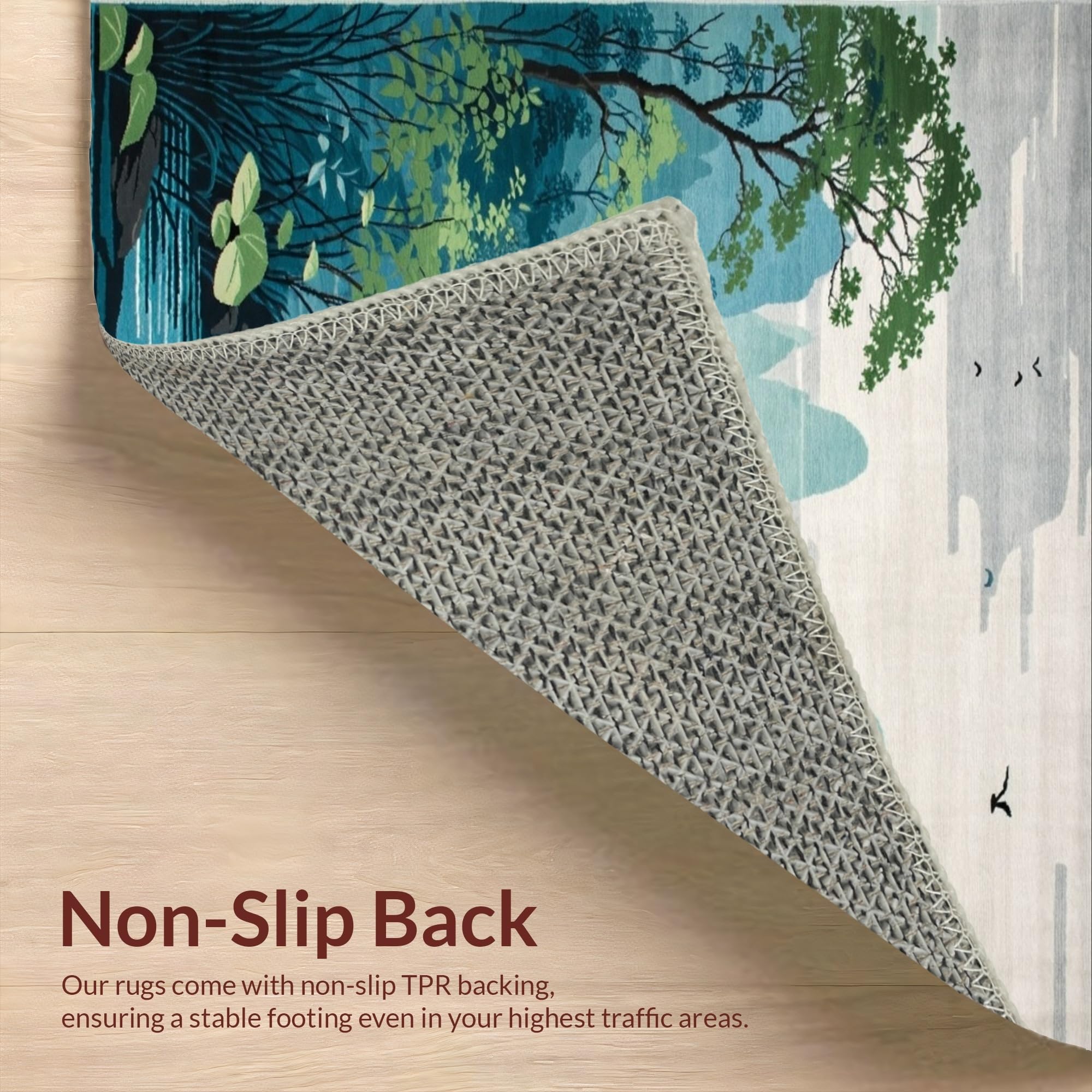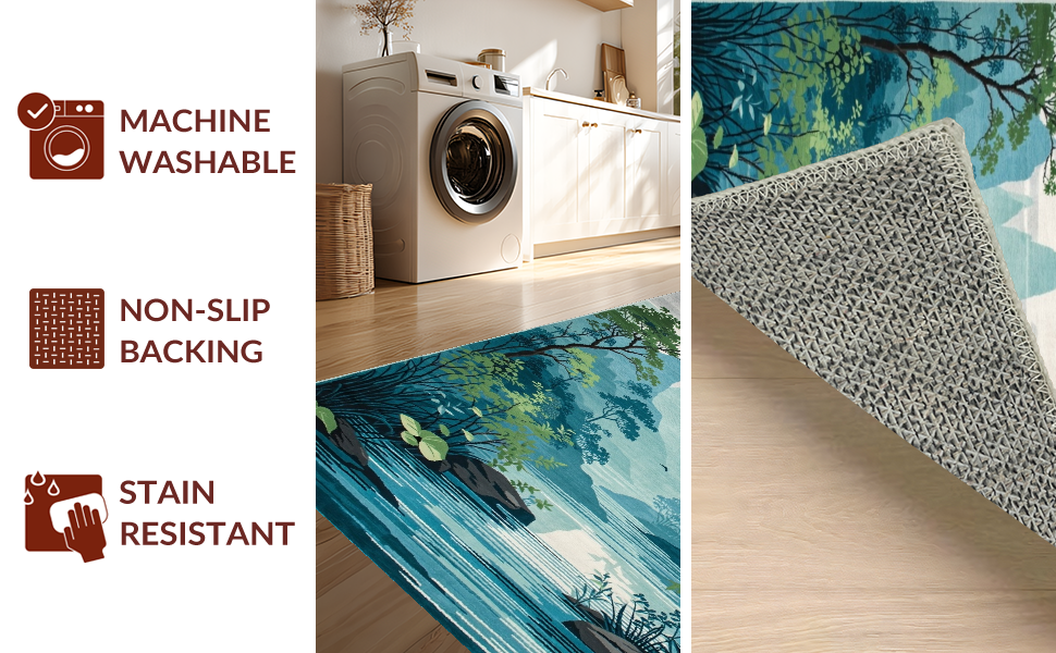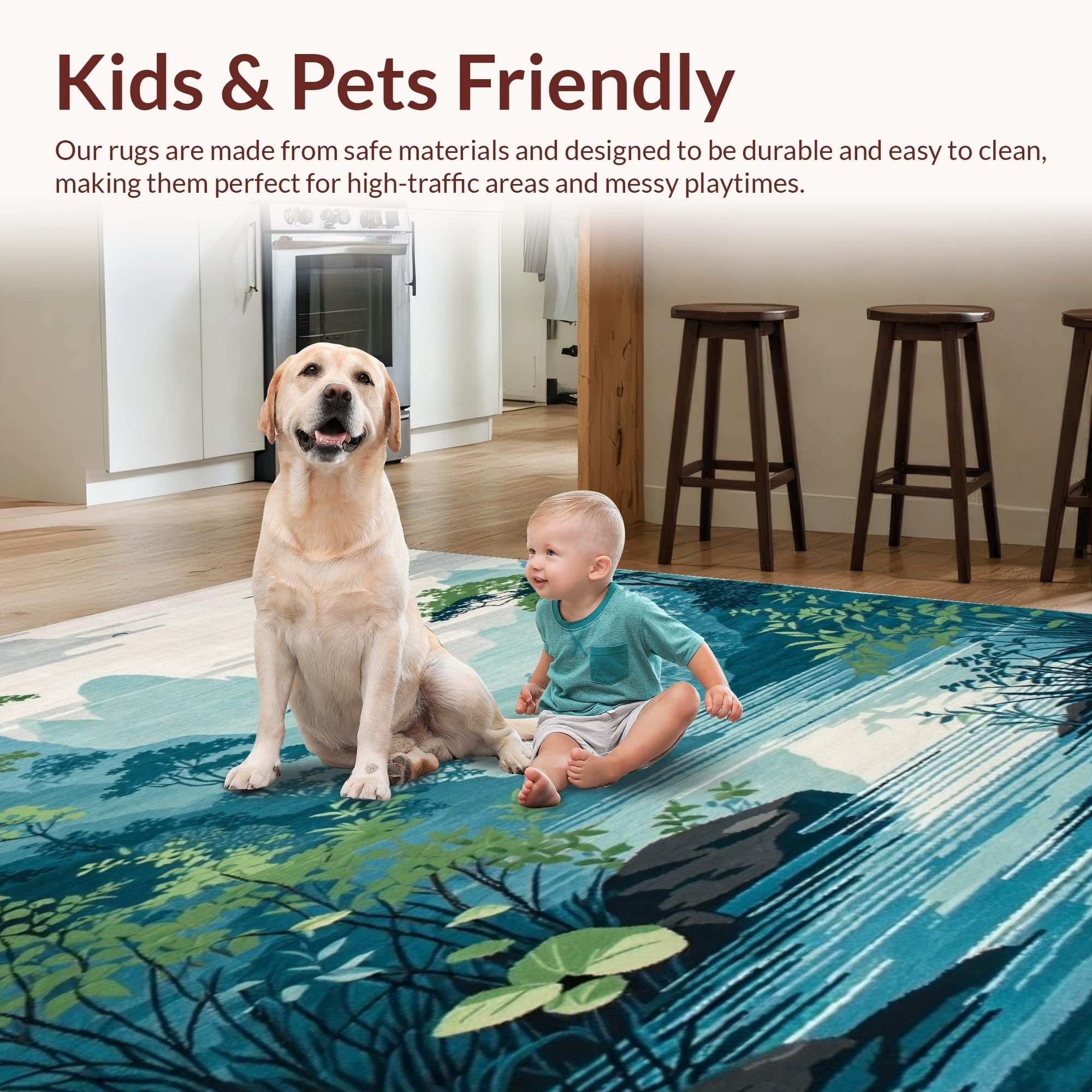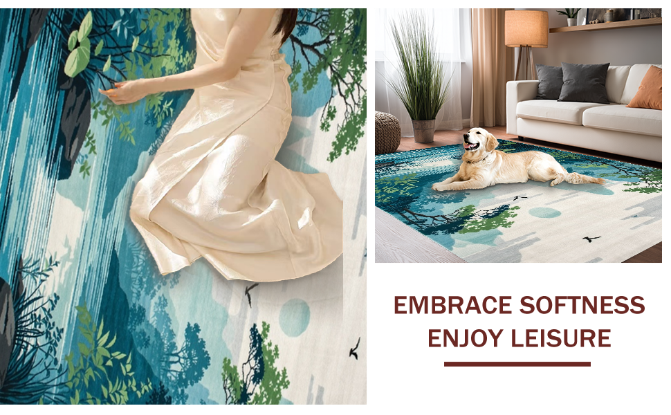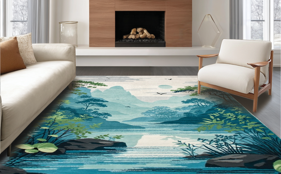 Ultra Soft Area Rug, Non Slip, Stain Resistant, Washable Area Rugs for Living Room, Bedroom, Artful Nature-Themed Cozy Atmosphere(Blue) Overview: