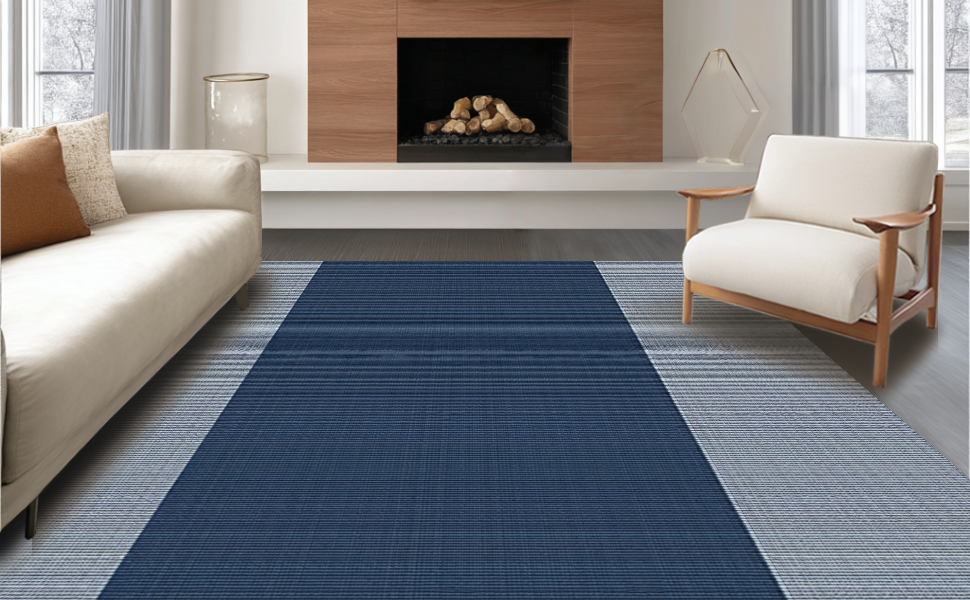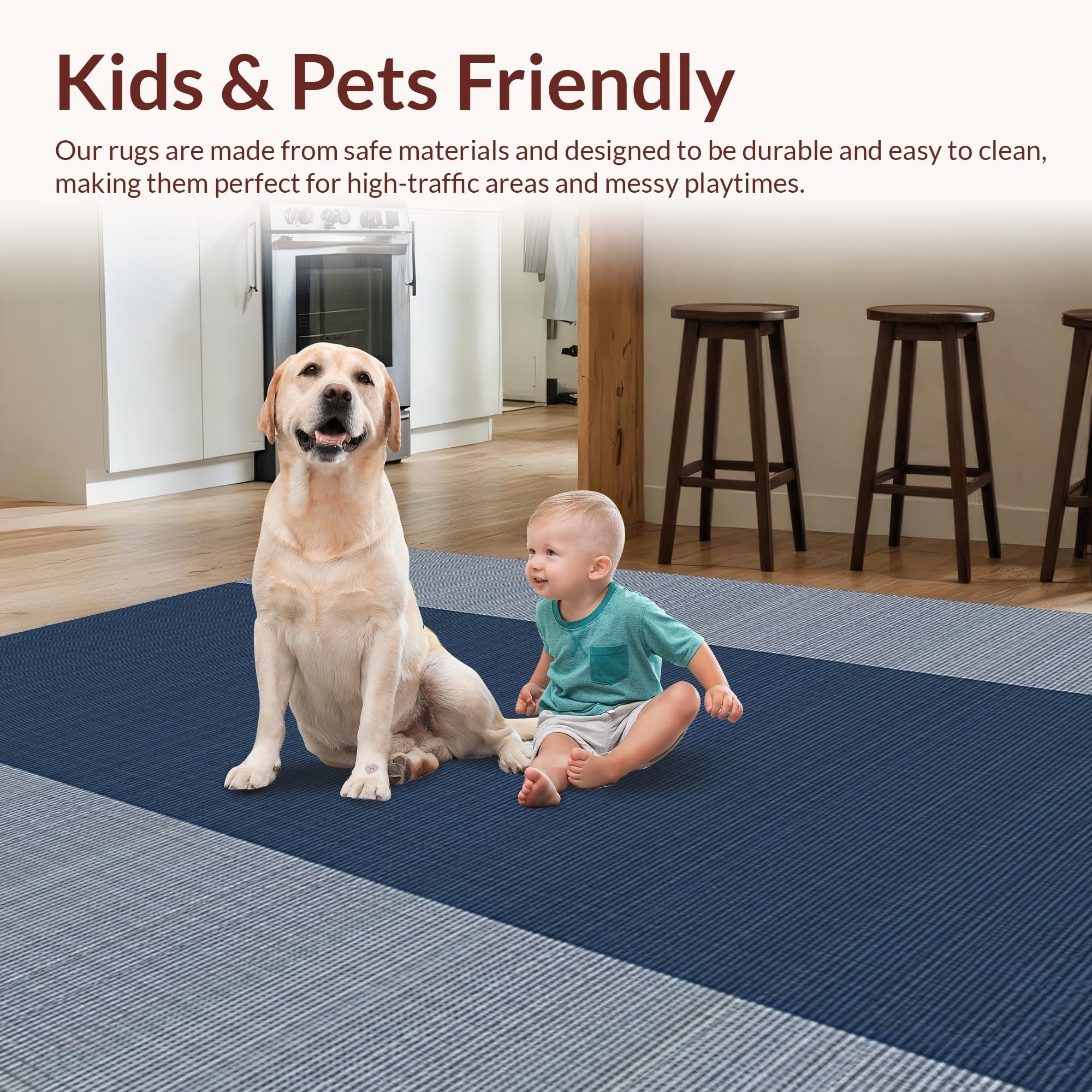 Ultra Soft Area Rug, Non Slip, Stain Resistant, Washable Area Rugs for Living Room, Bedroom, Artful Navy and White Composition(Blue) Overview: