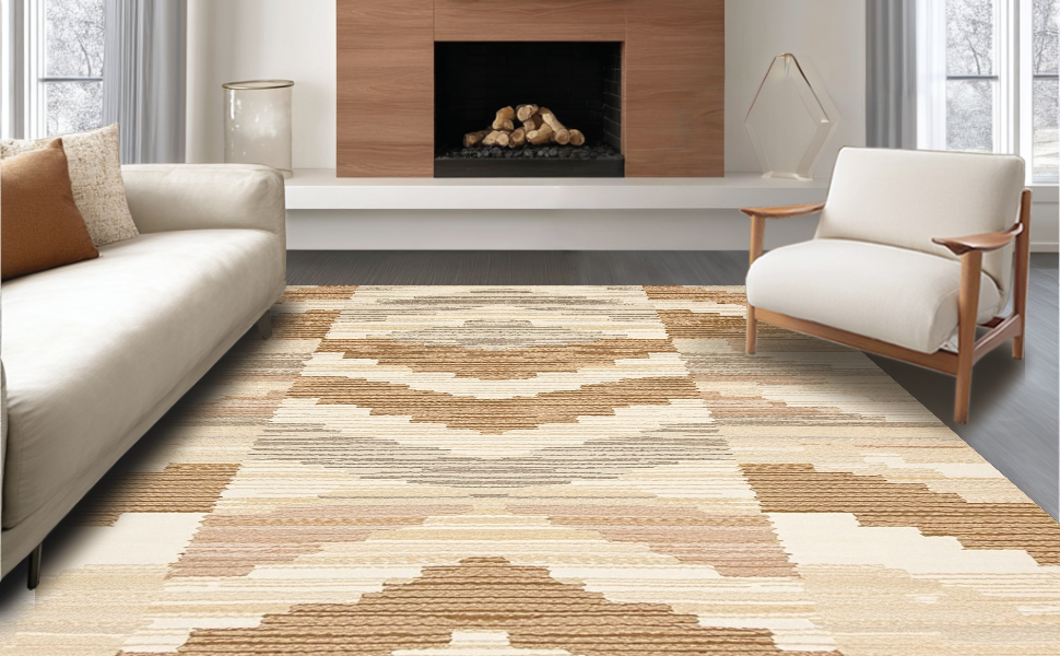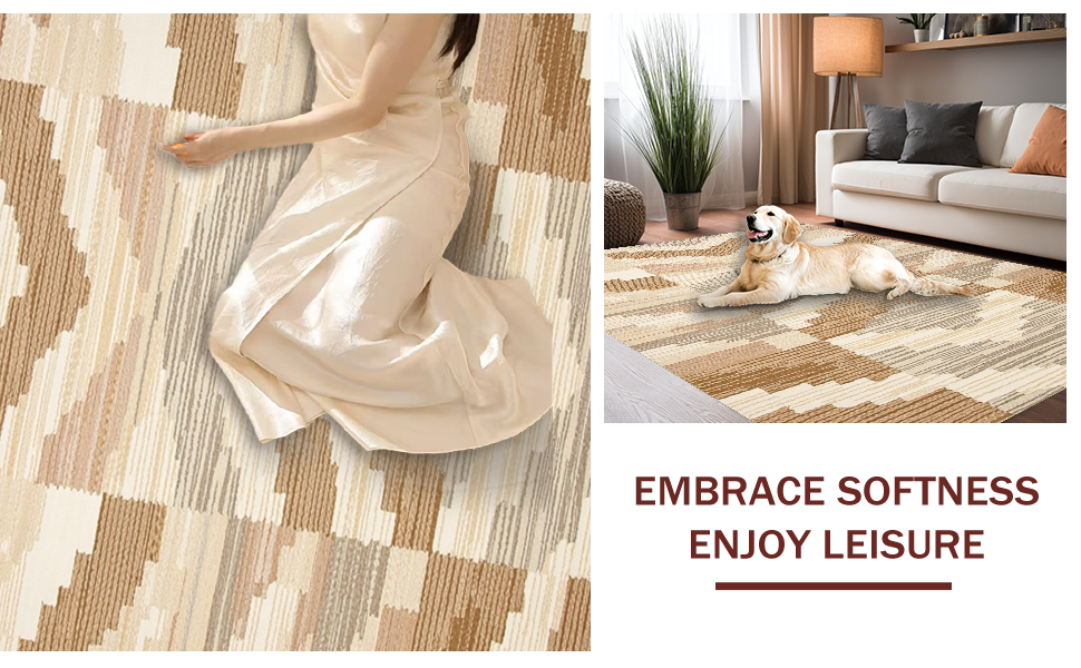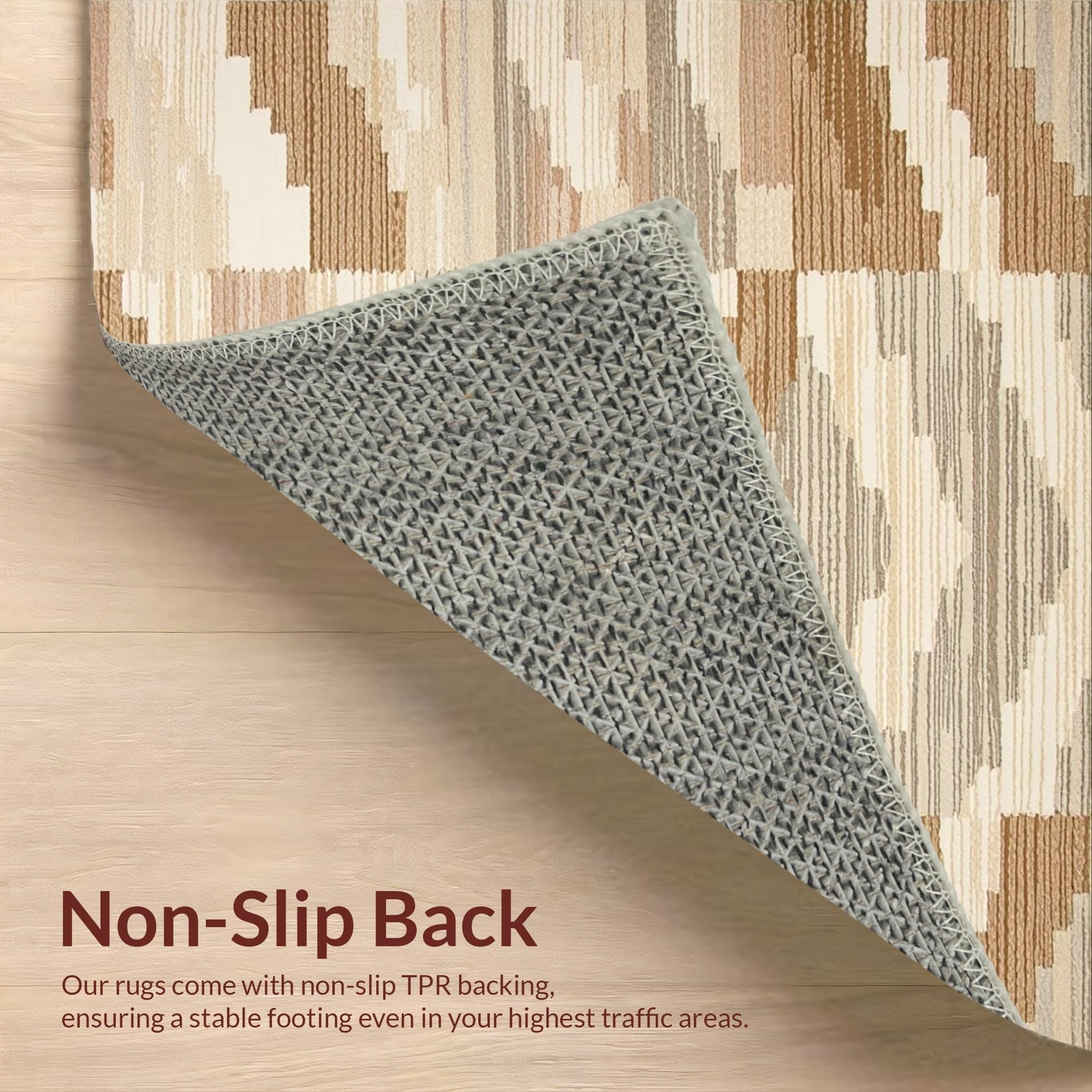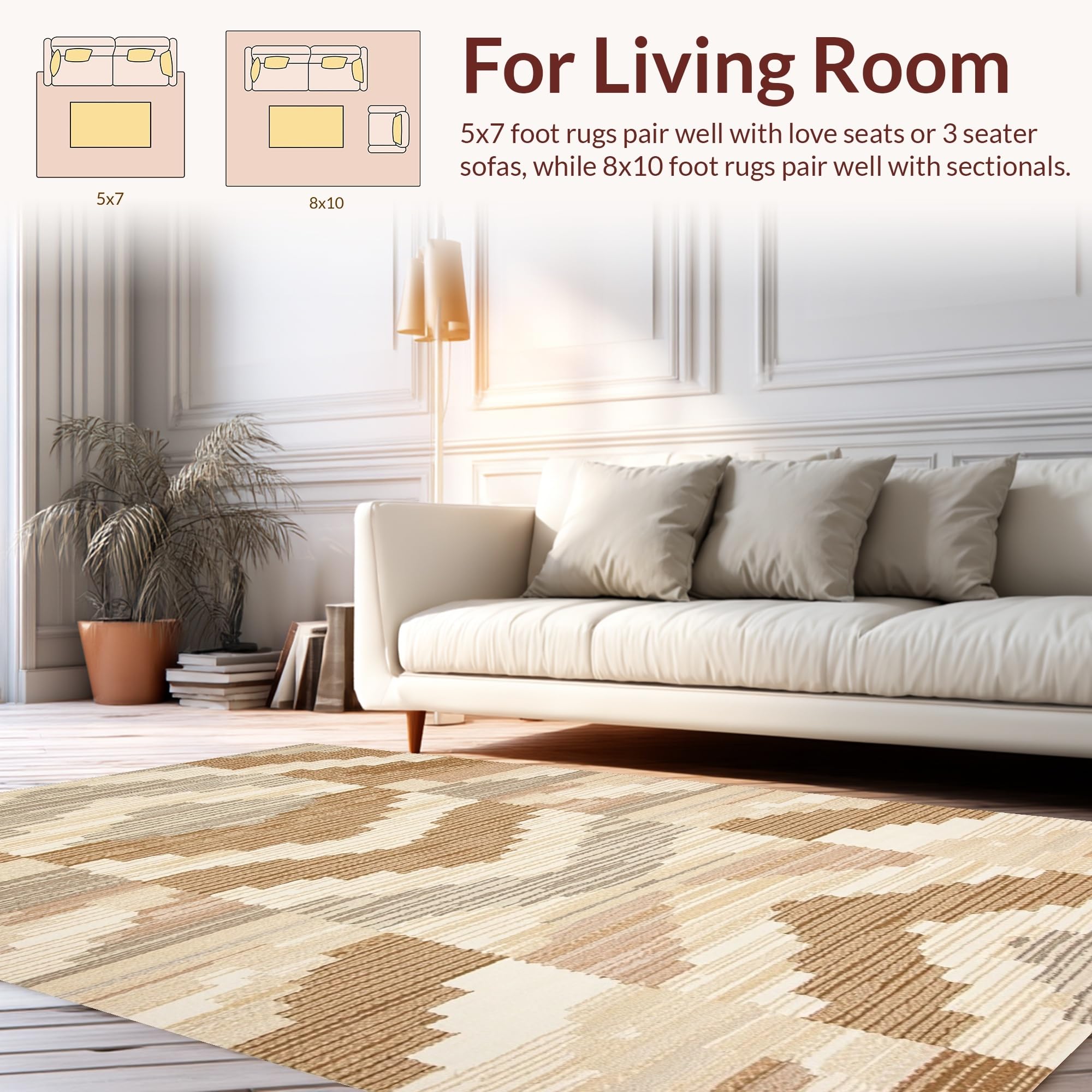Ultra Soft Area Rug, Non Slip, Stain Resistant, Washable Area Rugs for Living Room, Bedroom, Artful Neutral Abstract Composition(Beige) Overview: