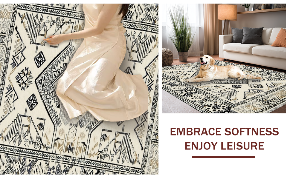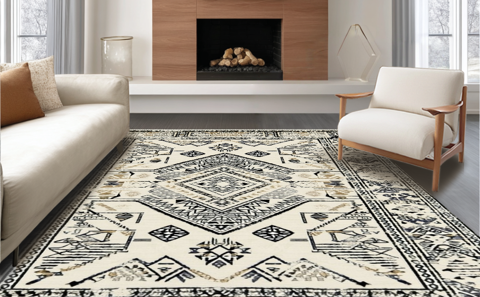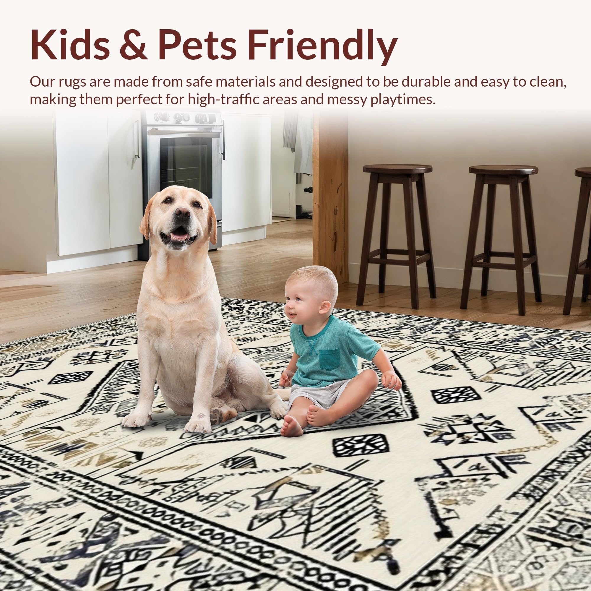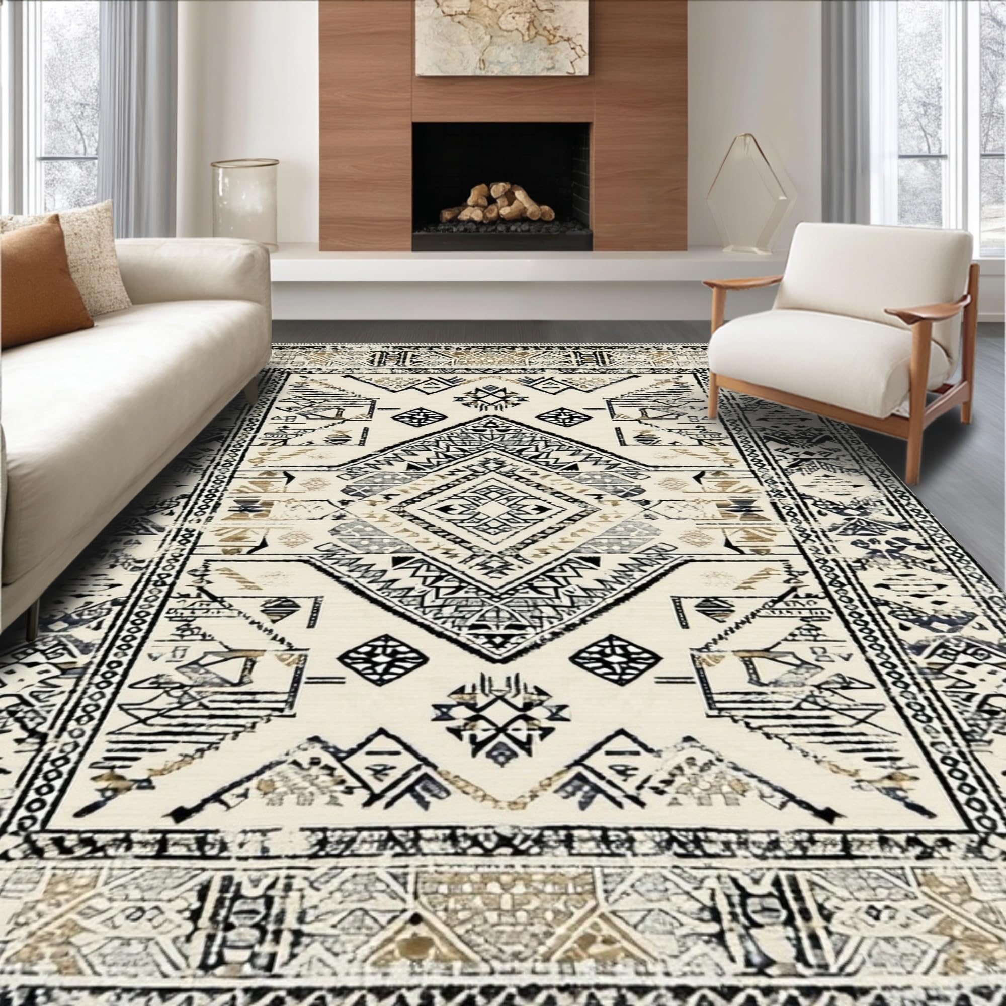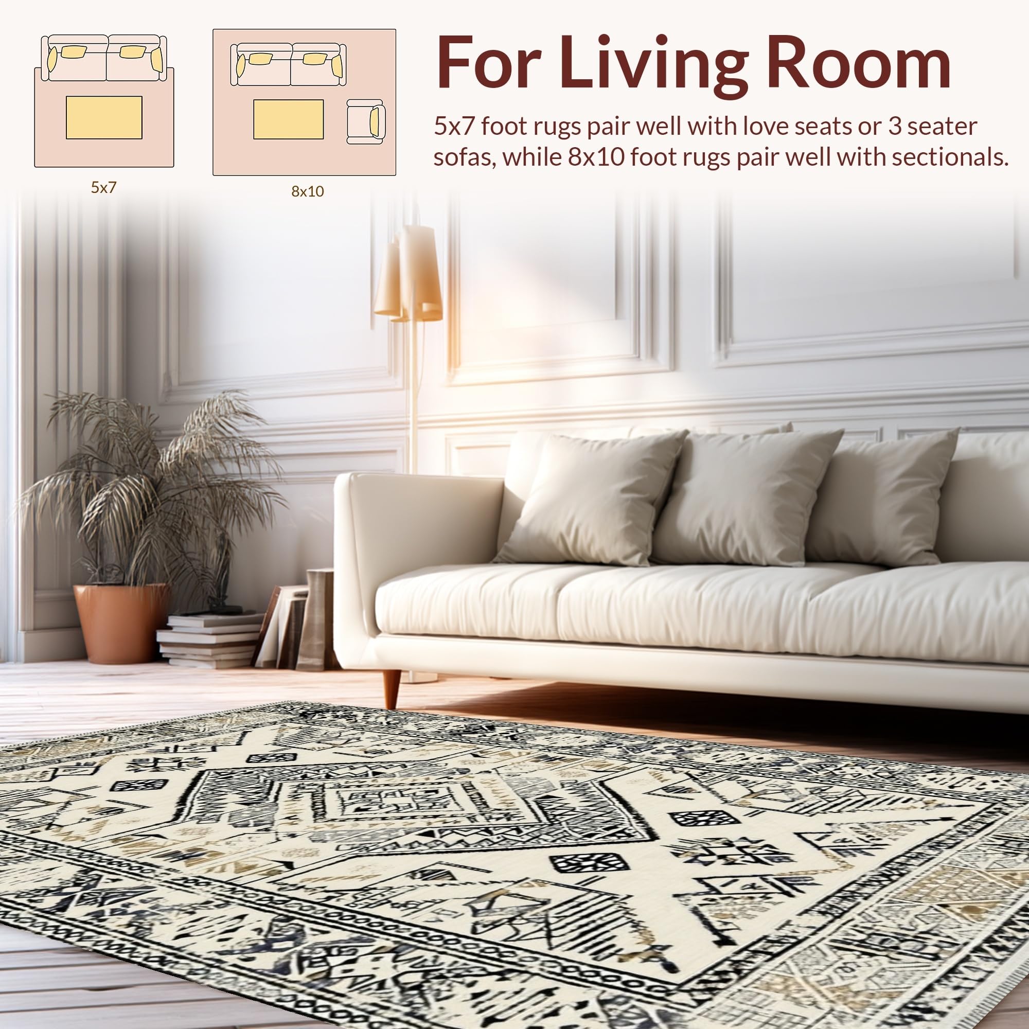 Ultra Soft Area Rug, Non Slip, Stain Resistant, Washable Area Rugs for Living Room, Bedroom, Artful Neutral Decorative Theme(Beige) Overview: