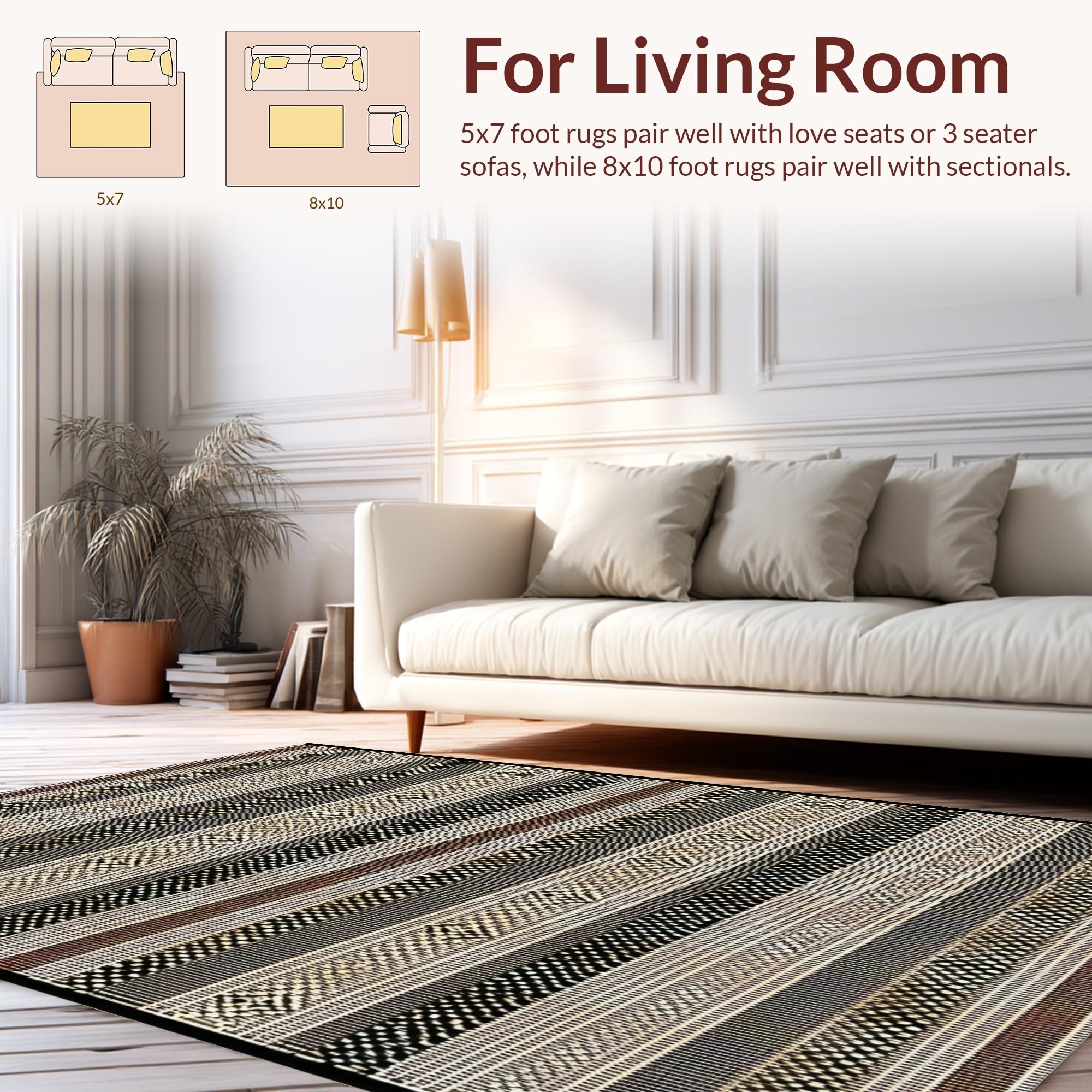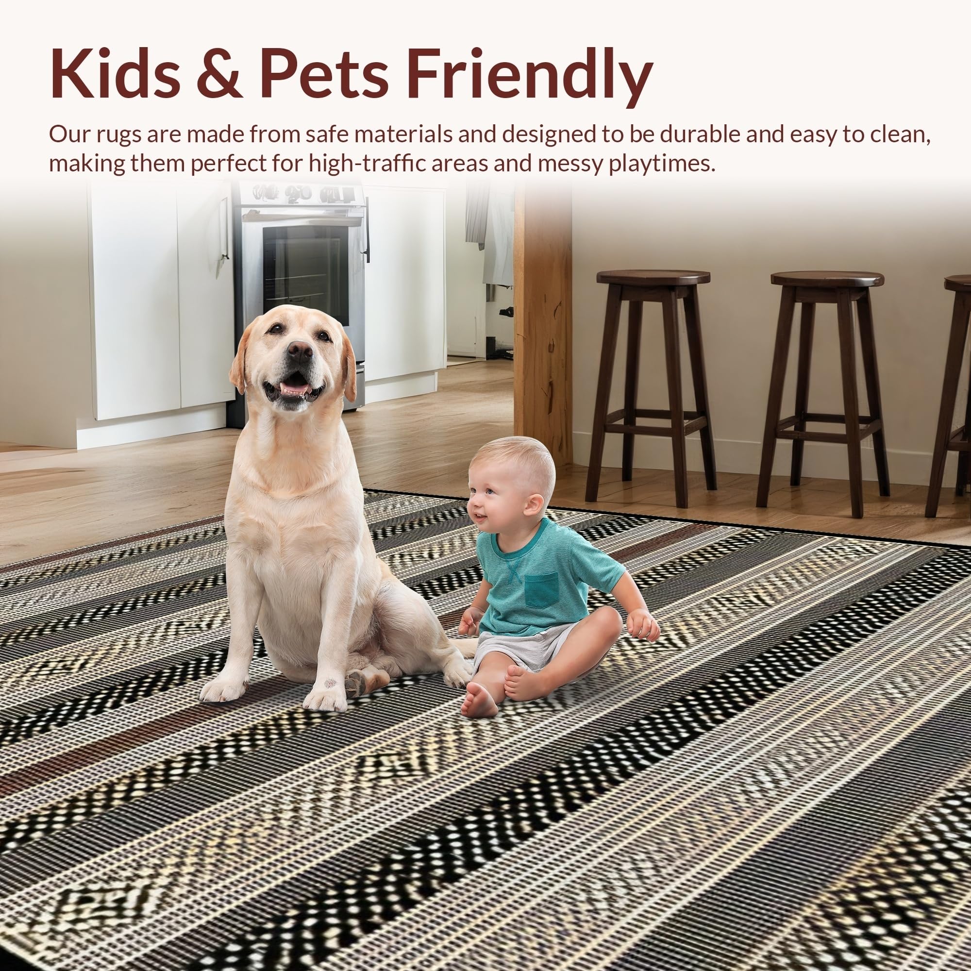 Ultra Soft Area Rug, Non Slip, Stain Resistant, Washable Area Rugs for Living Room, Bedroom, Artful Ogee Black and White Blend(Beige) Overview: