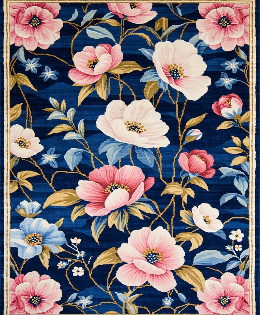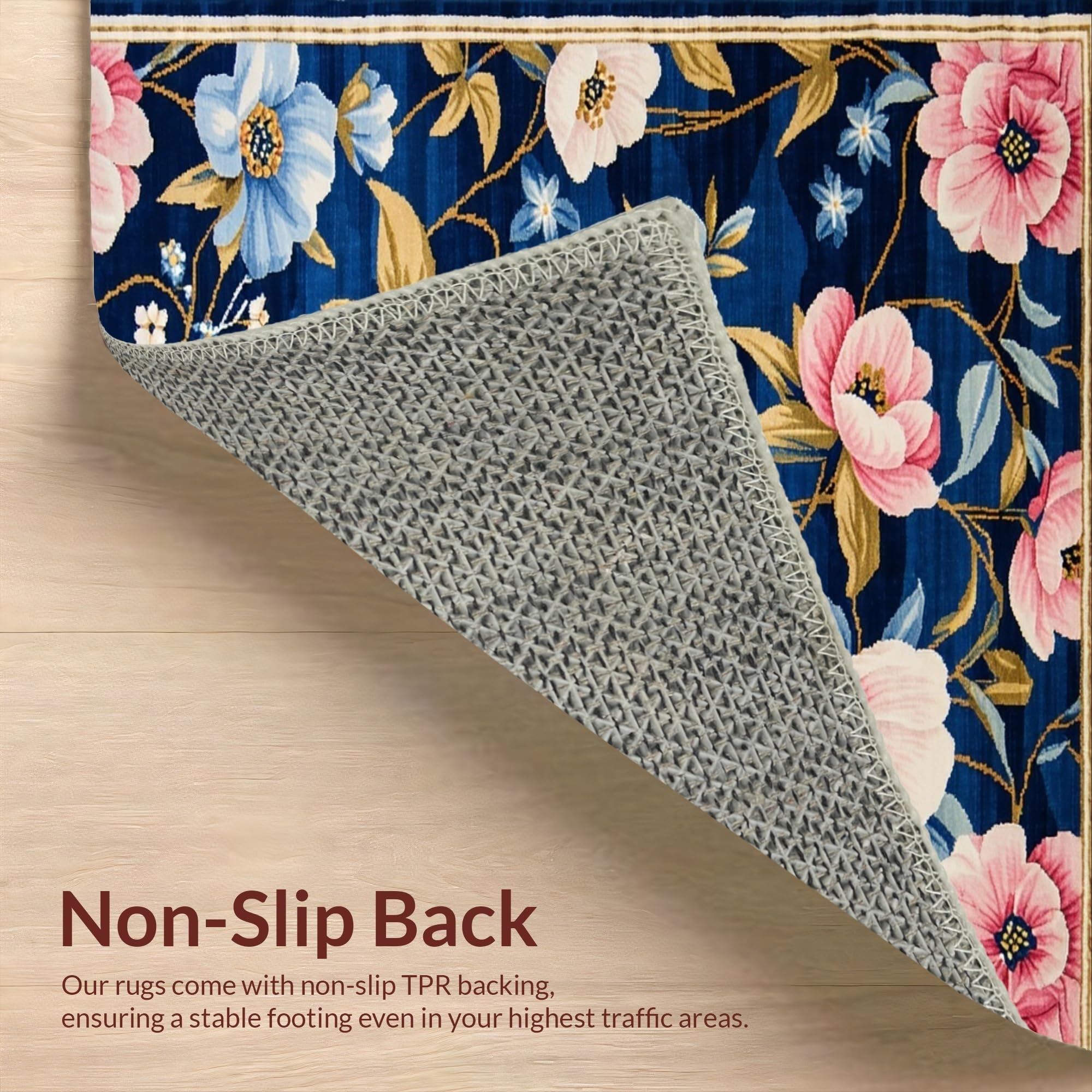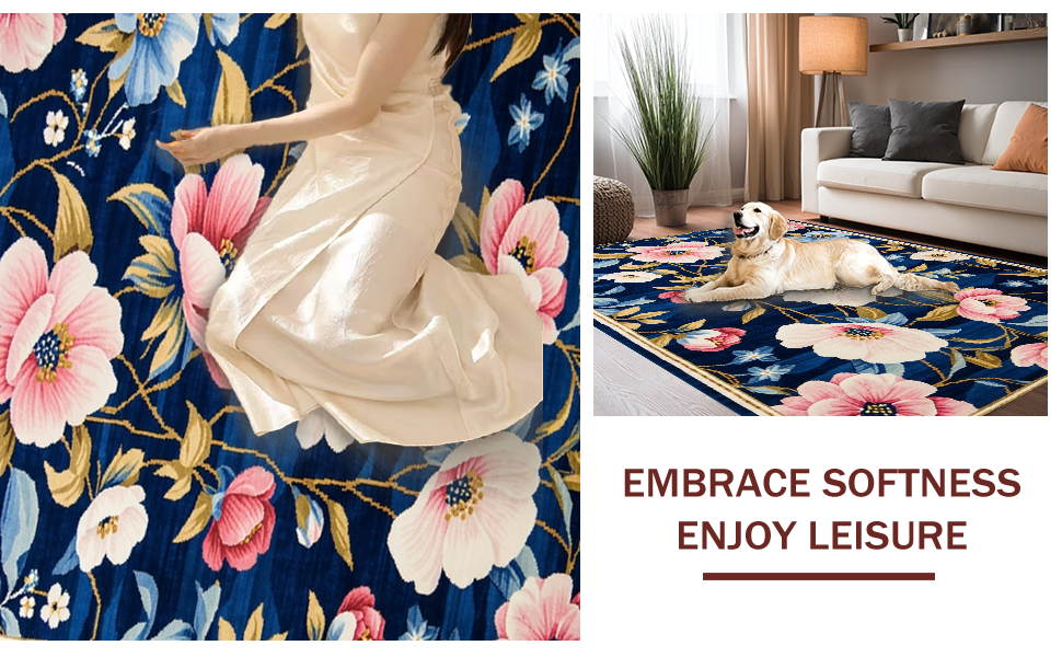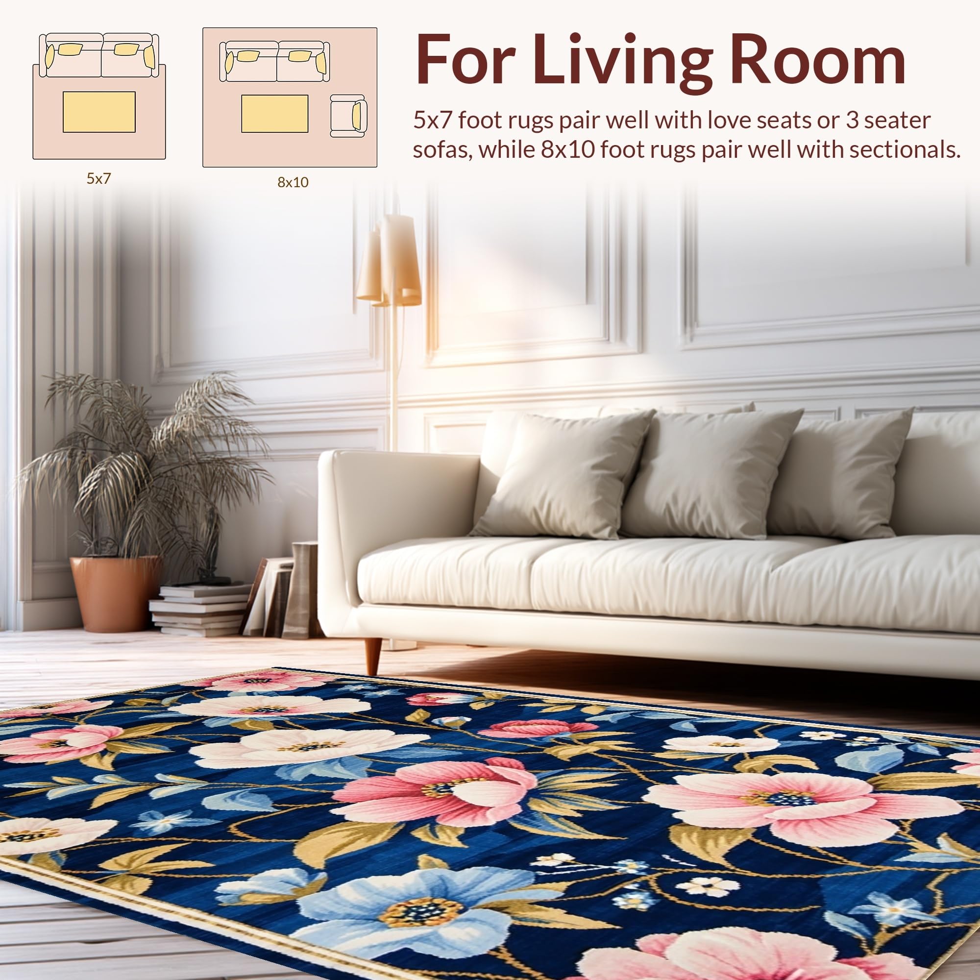 Ultra Soft Area Rug, Non Slip, Stain Resistant, Washable Area Rugs for Living Room, Bedroom, Artful Ogee Floral Aesthetic(Blue) Overview:
