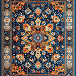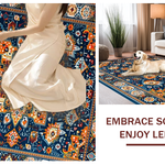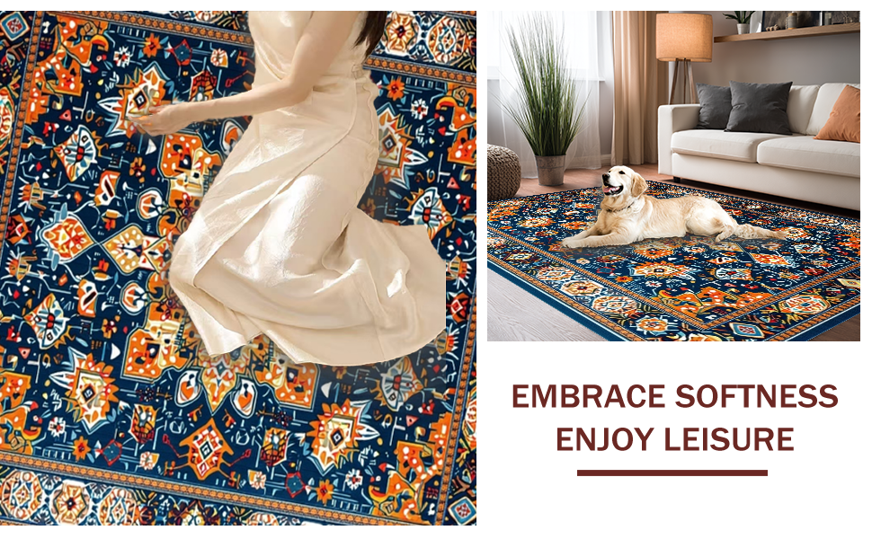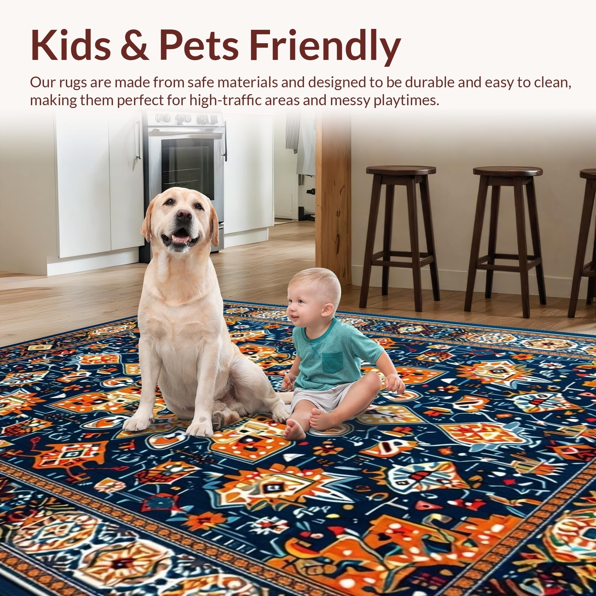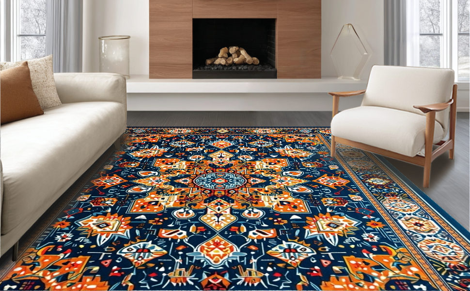 Ultra Soft Area Rug, Non Slip, Stain Resistant, Washable Area Rugs for Living Room, Bedroom, Artful Ogee Motif in Warm Hues(Blue) Overview: