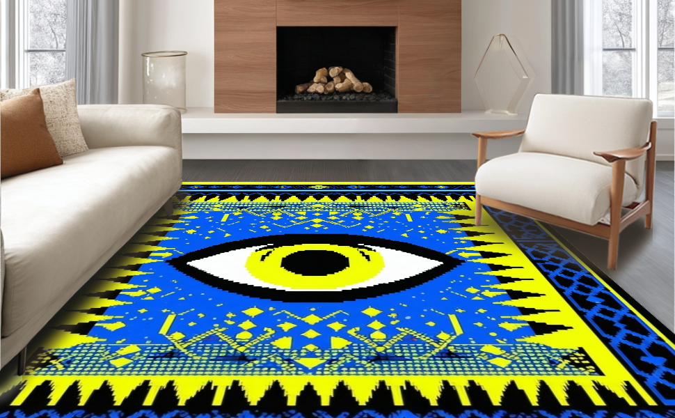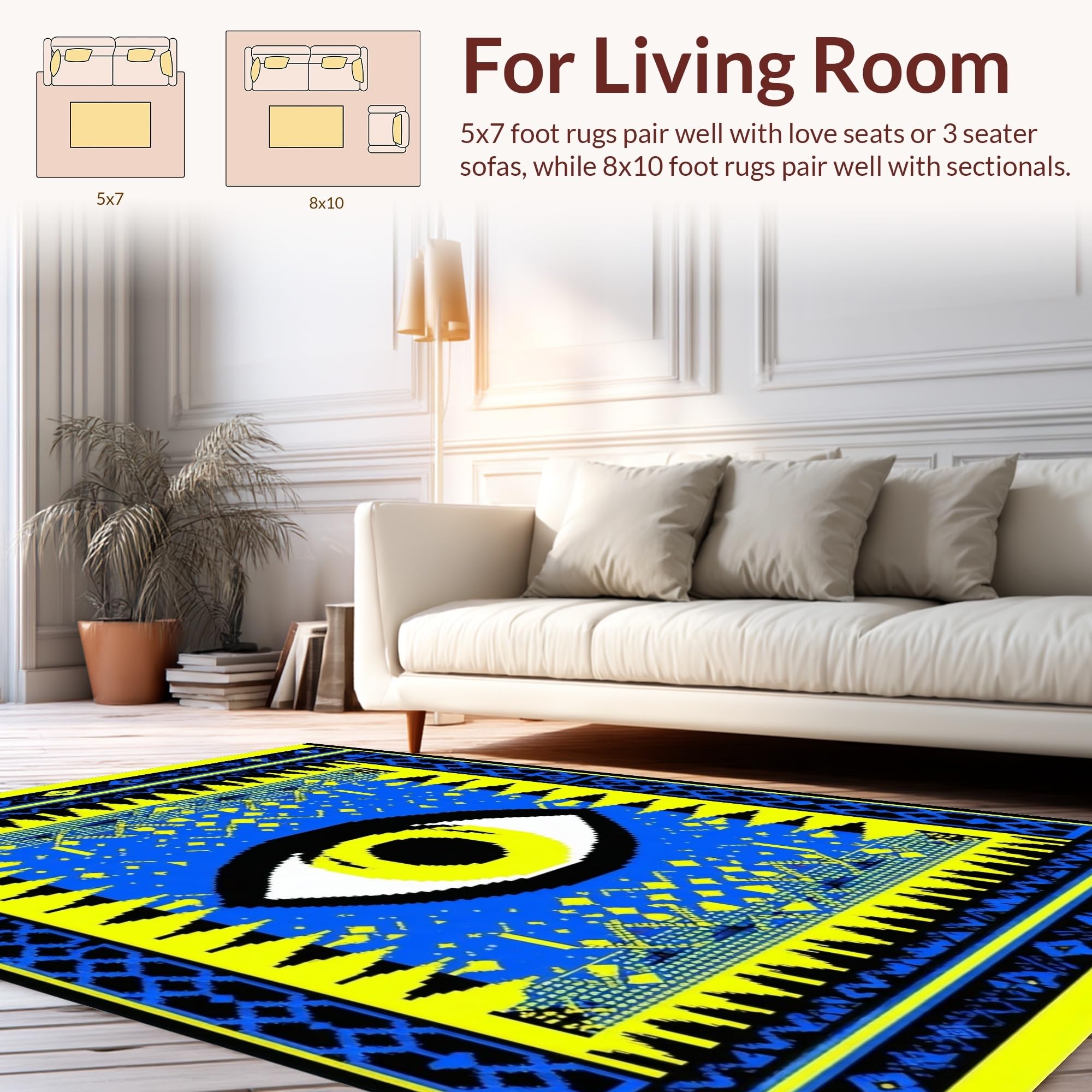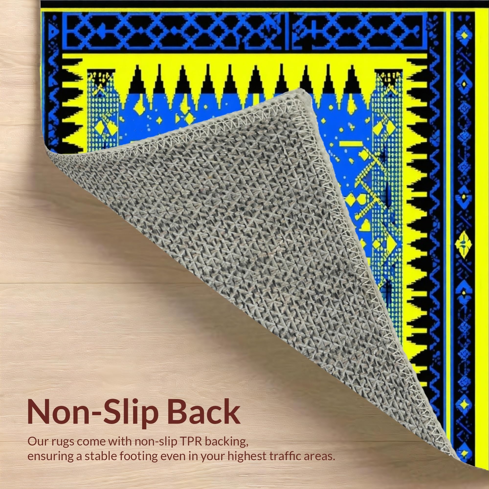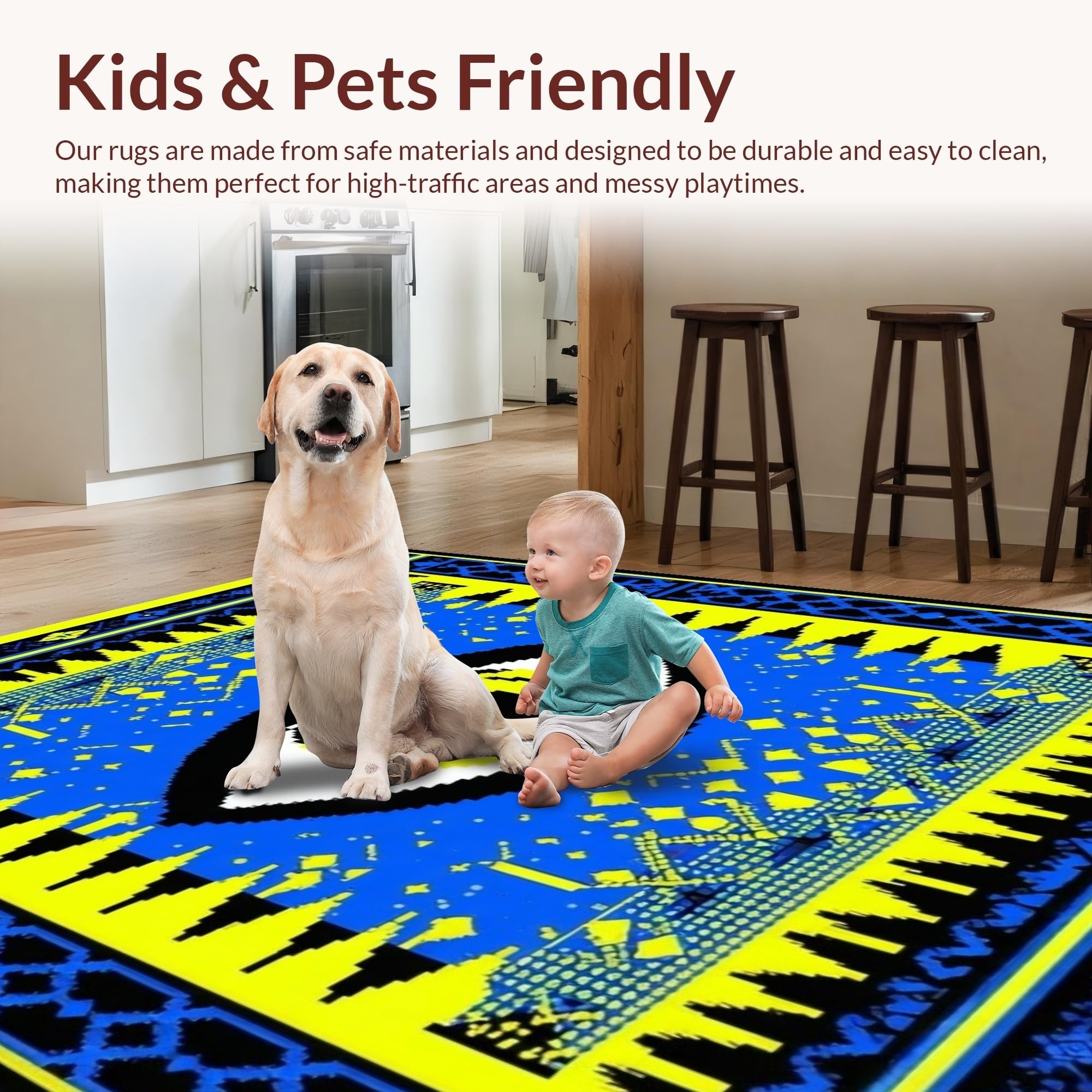 Ultra Soft Area Rug, Non Slip, Stain Resistant, Washable Area Rugs for Living Room, Bedroom, Artful Ogee Pattern with Blue Tones(Blue) Overview: