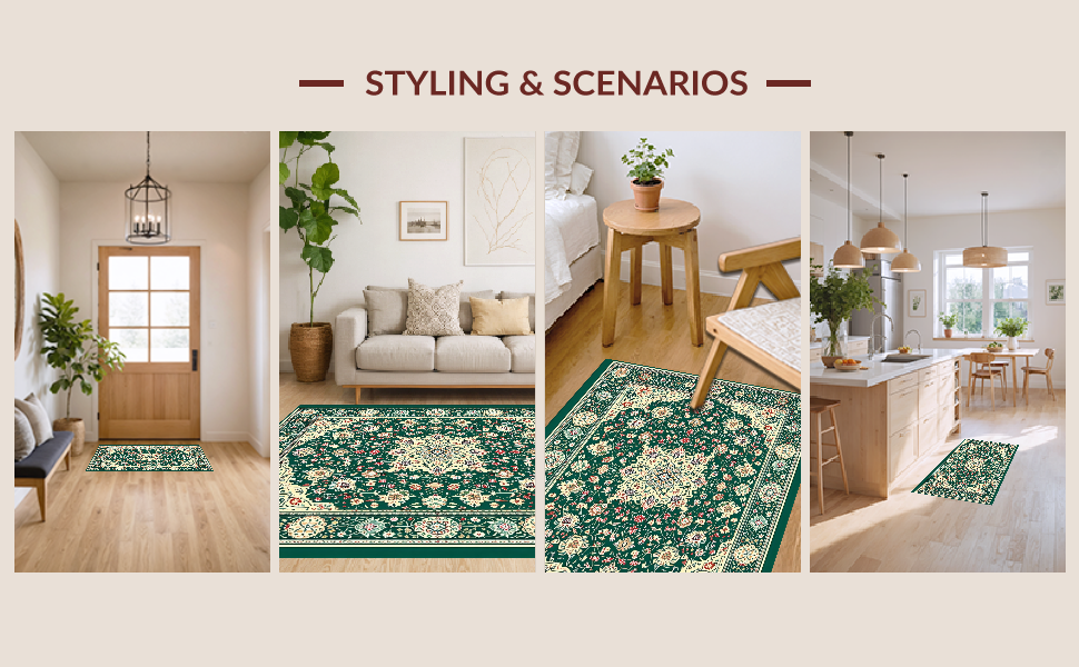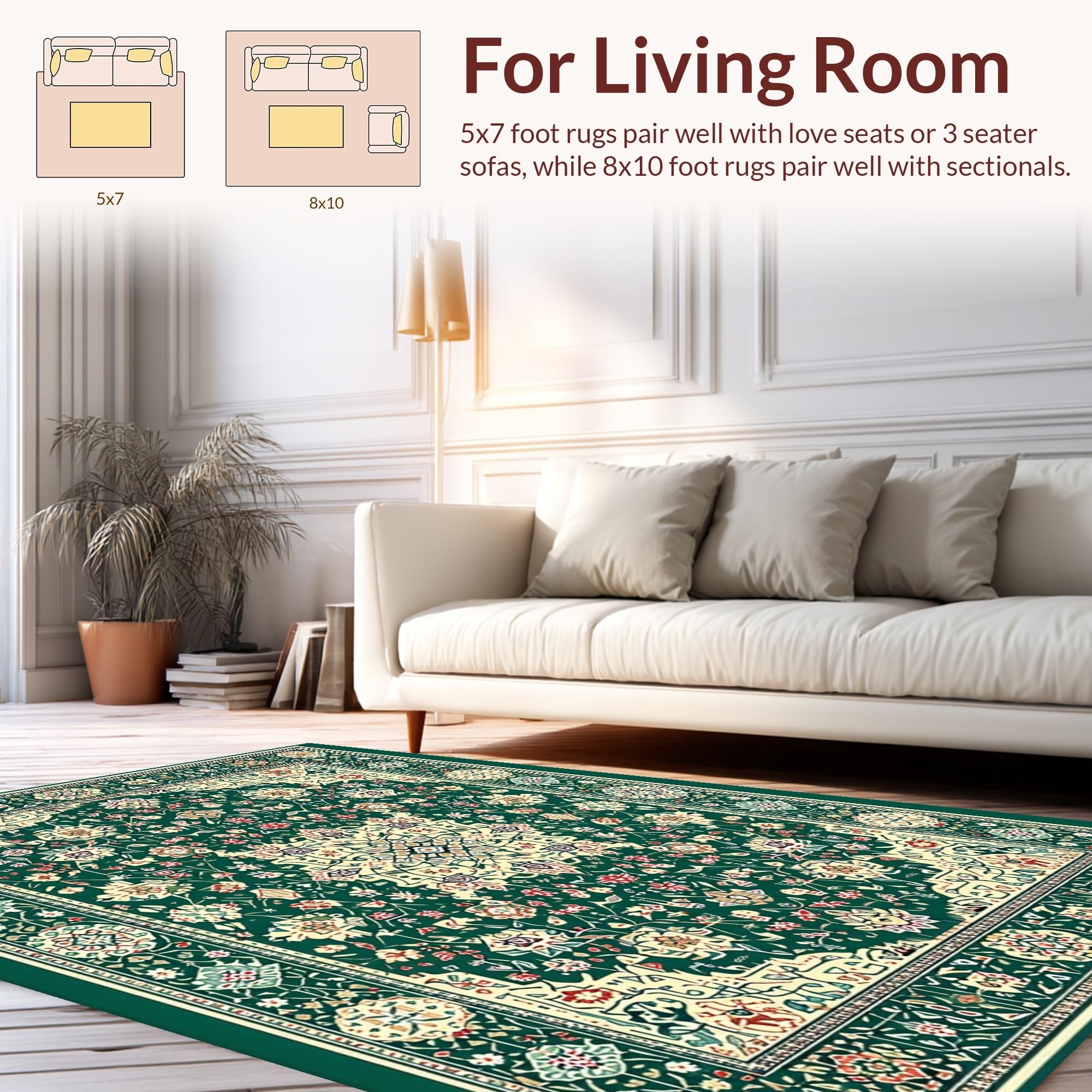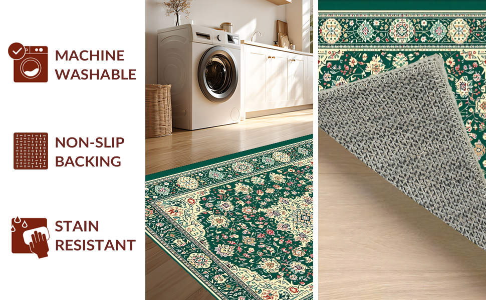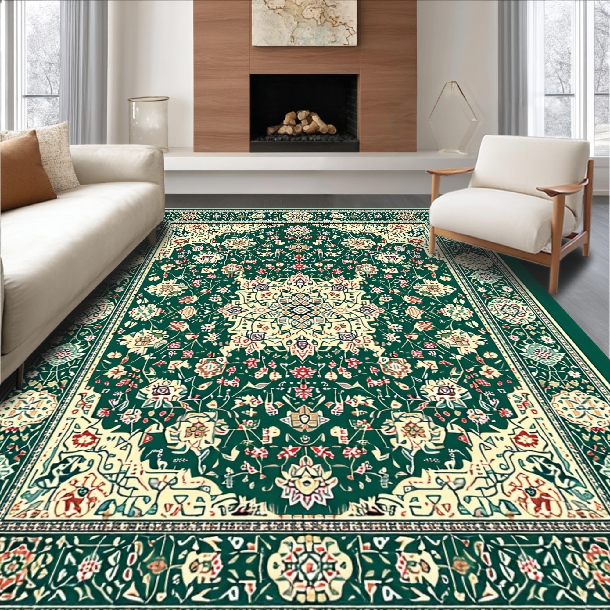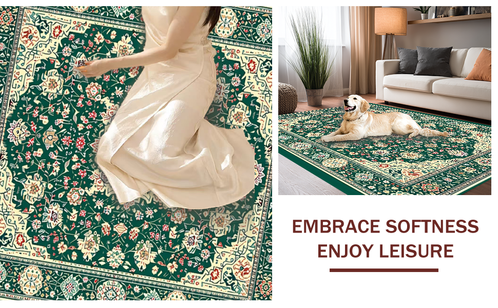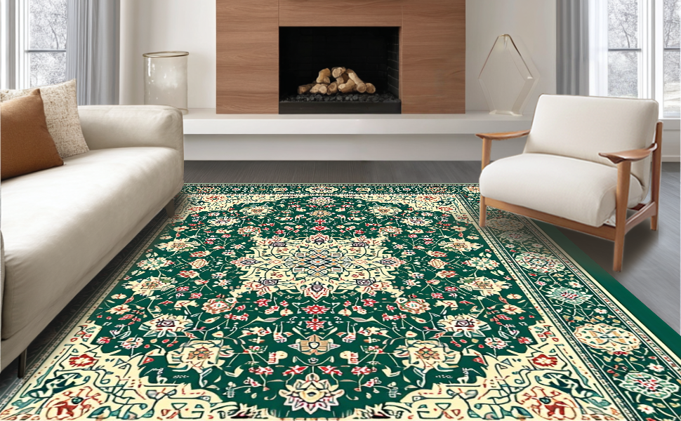 Ultra Soft Area Rug, Non Slip, Stain Resistant, Washable Area Rugs for Living Room, Bedroom, Artful Ogee Patterned Texture(Green) Overview: