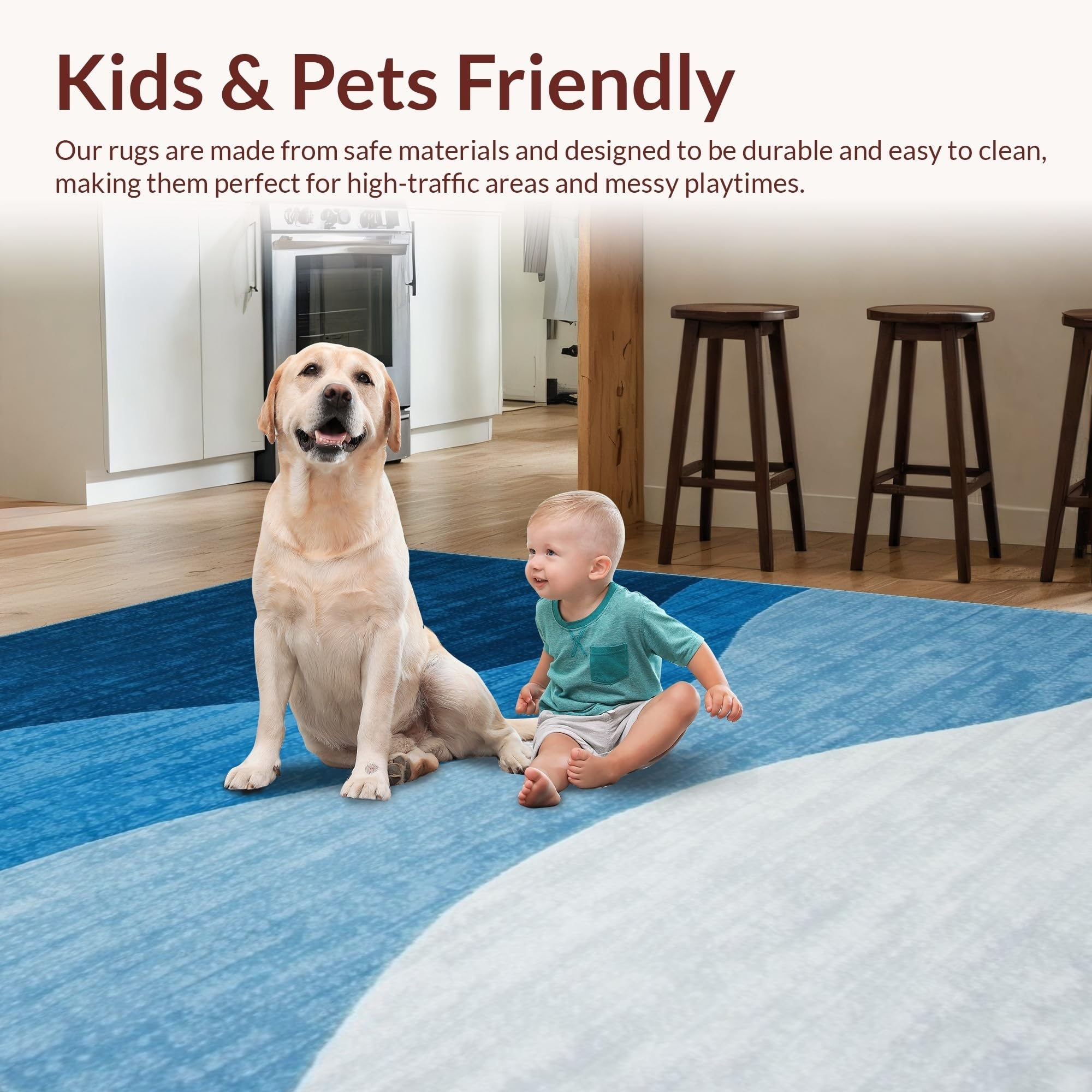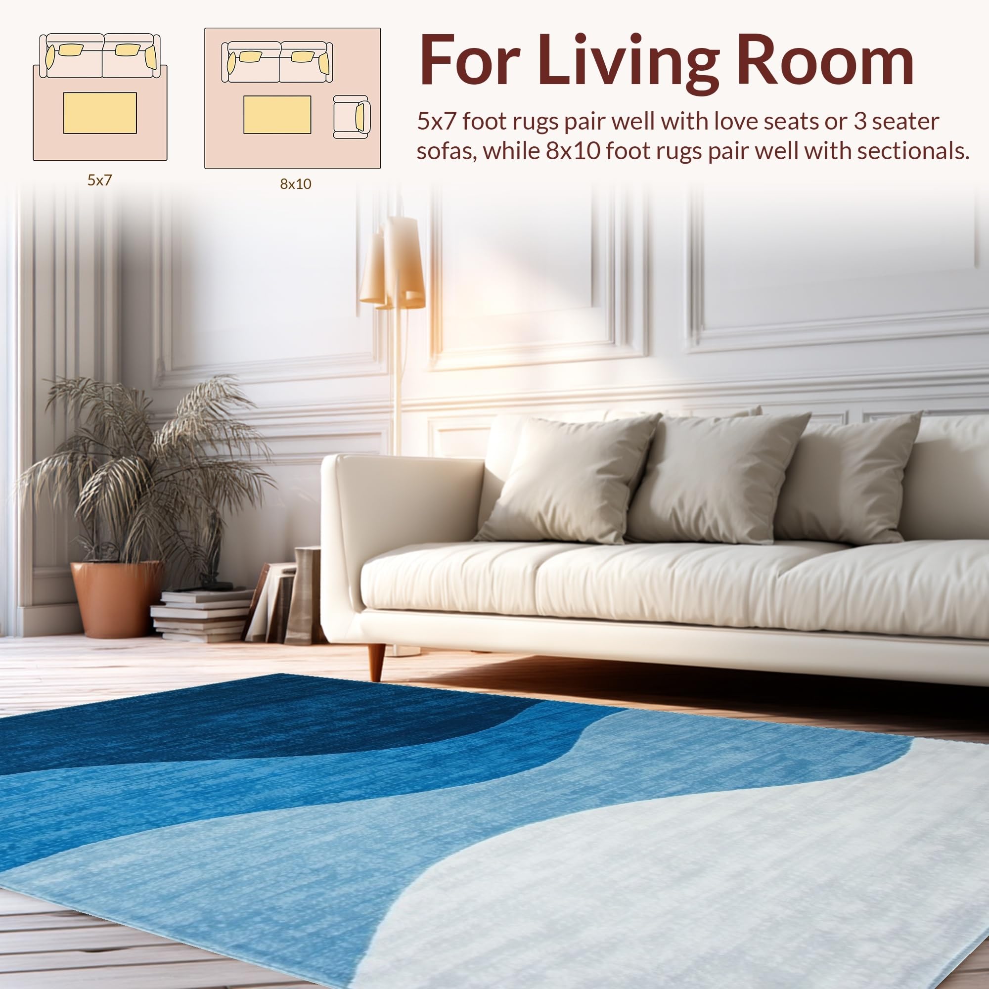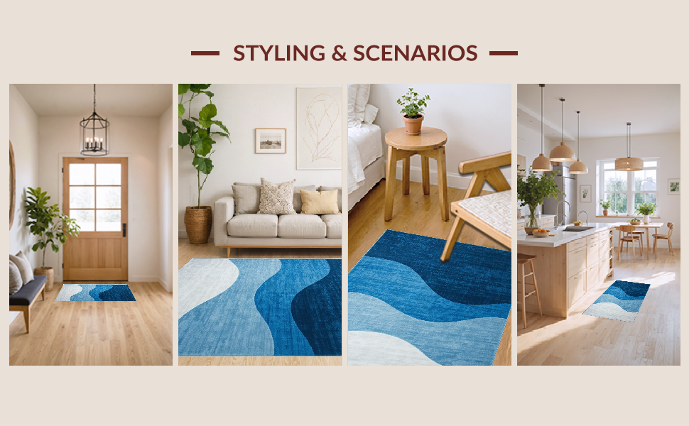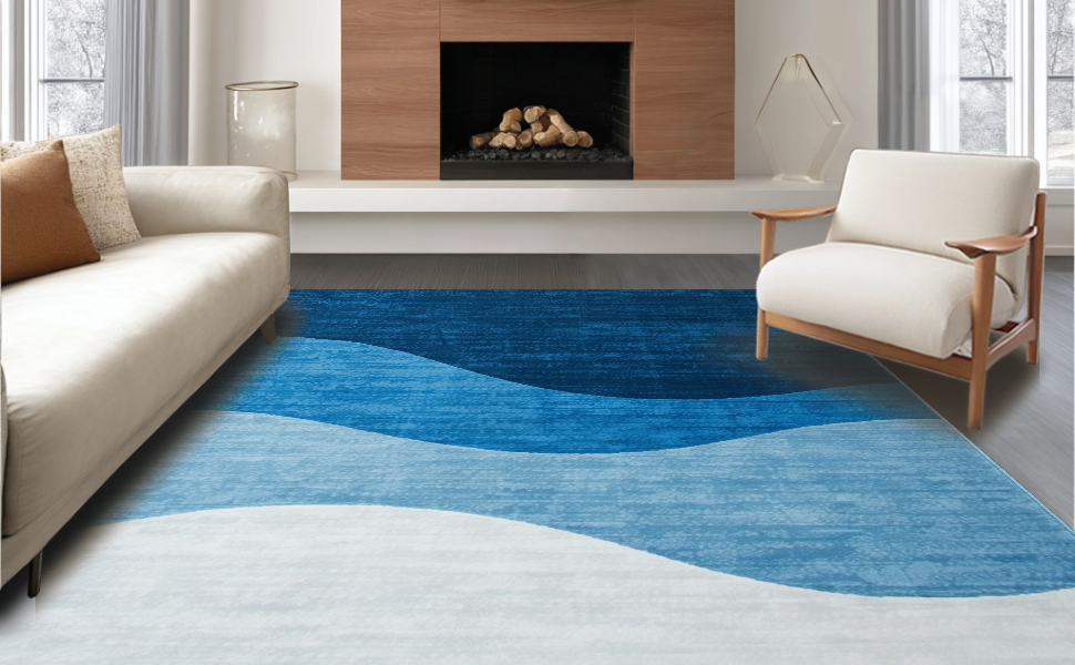 Ultra Soft Area Rug, Non Slip, Stain Resistant, Washable Area Rugs for Living Room, Bedroom, Artful Ombre Cloud Design(Blue) Overview: