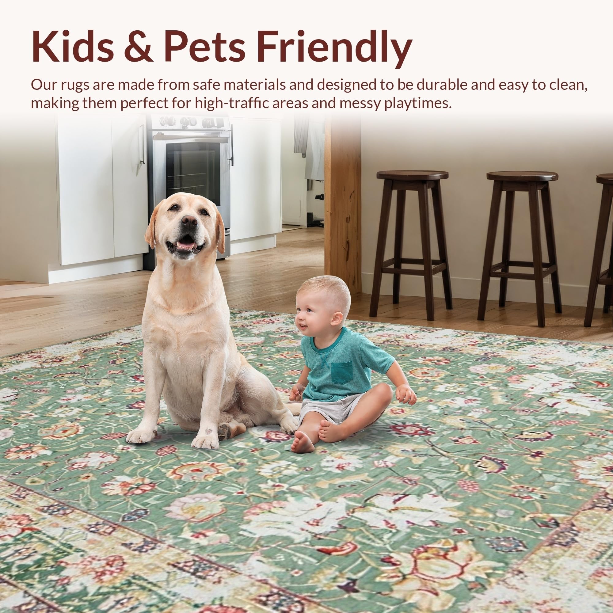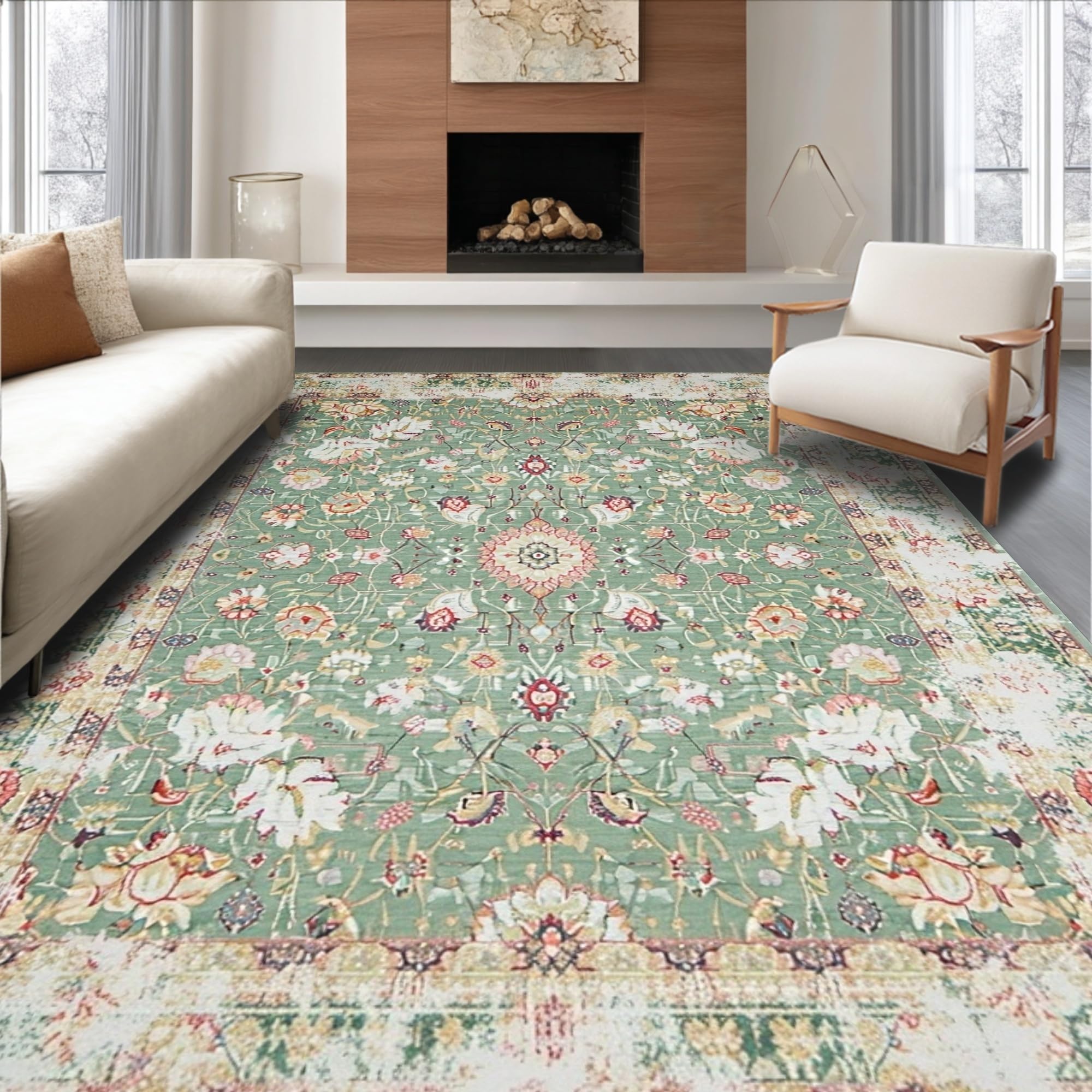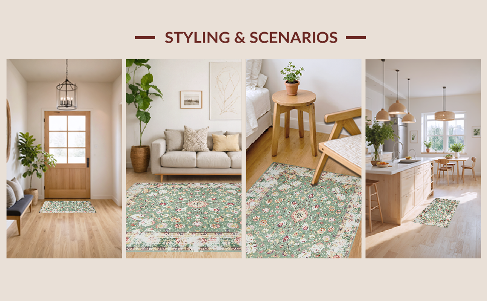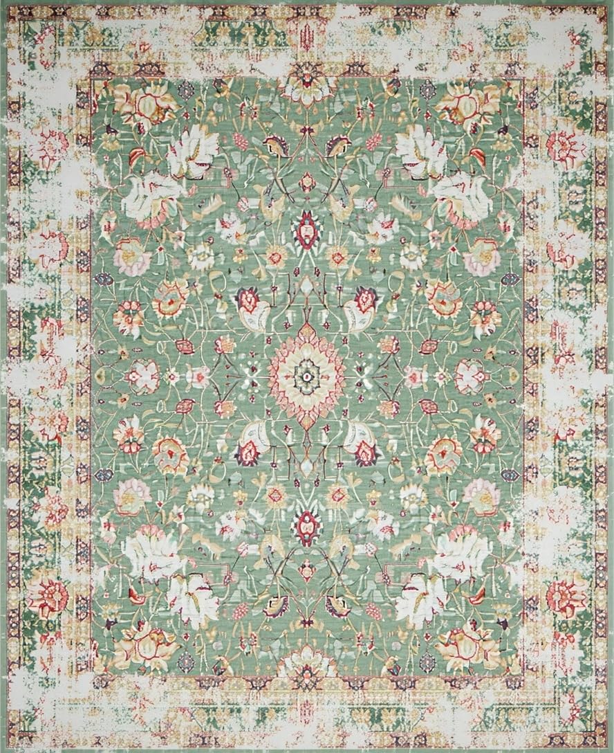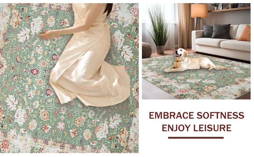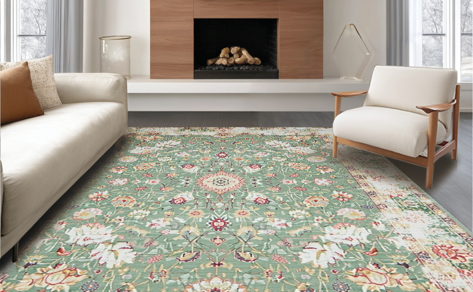 Ultra Soft Area Rug, Non Slip, Stain Resistant, Washable Area Rugs for Living Room, Bedroom, Artful Organic Shape Rustic Appeal(Green) Overview: