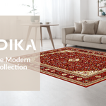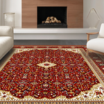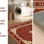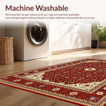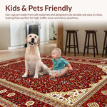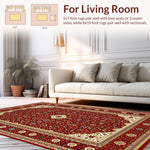 Ultra Soft Area Rug, Non Slip, Stain Resistant, Washable Area Rugs for Living Room, Bedroom, Artful Ornate Symmetrical Border(Red) Overview: