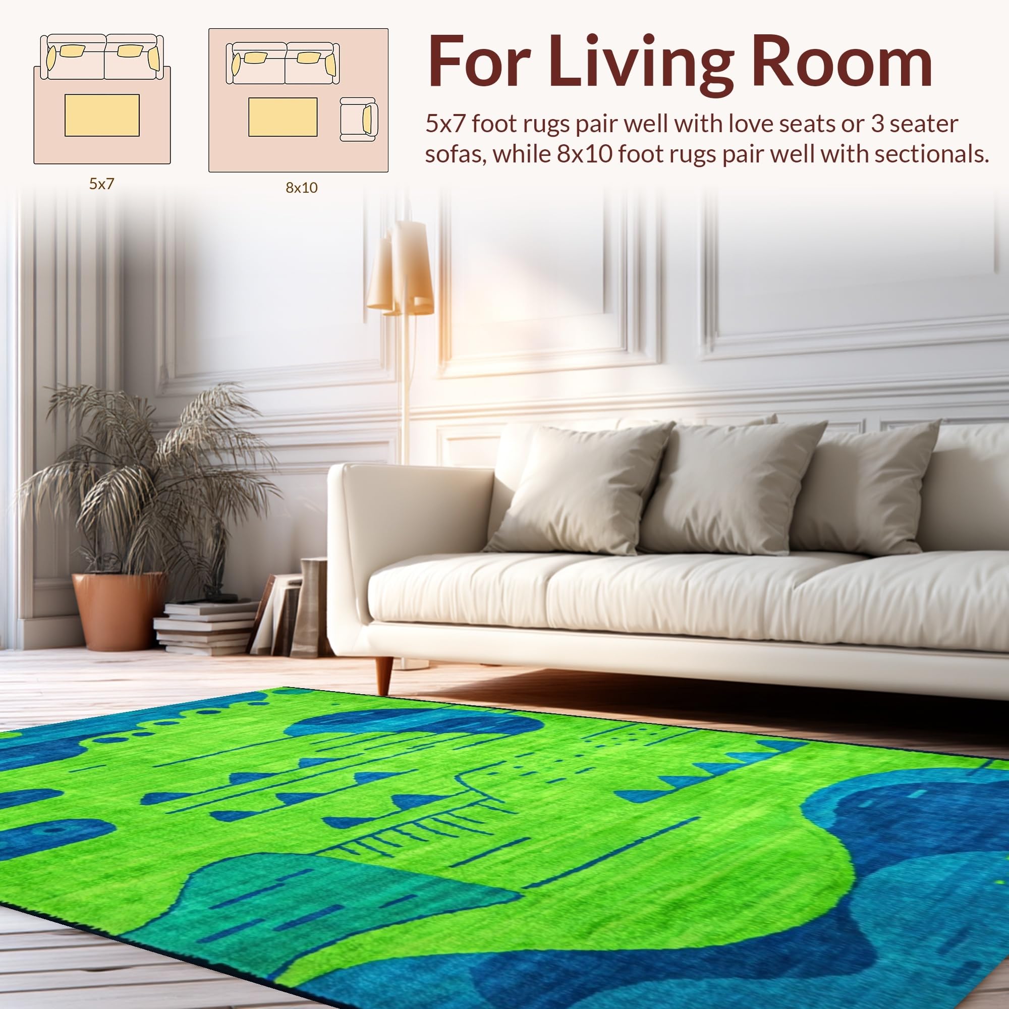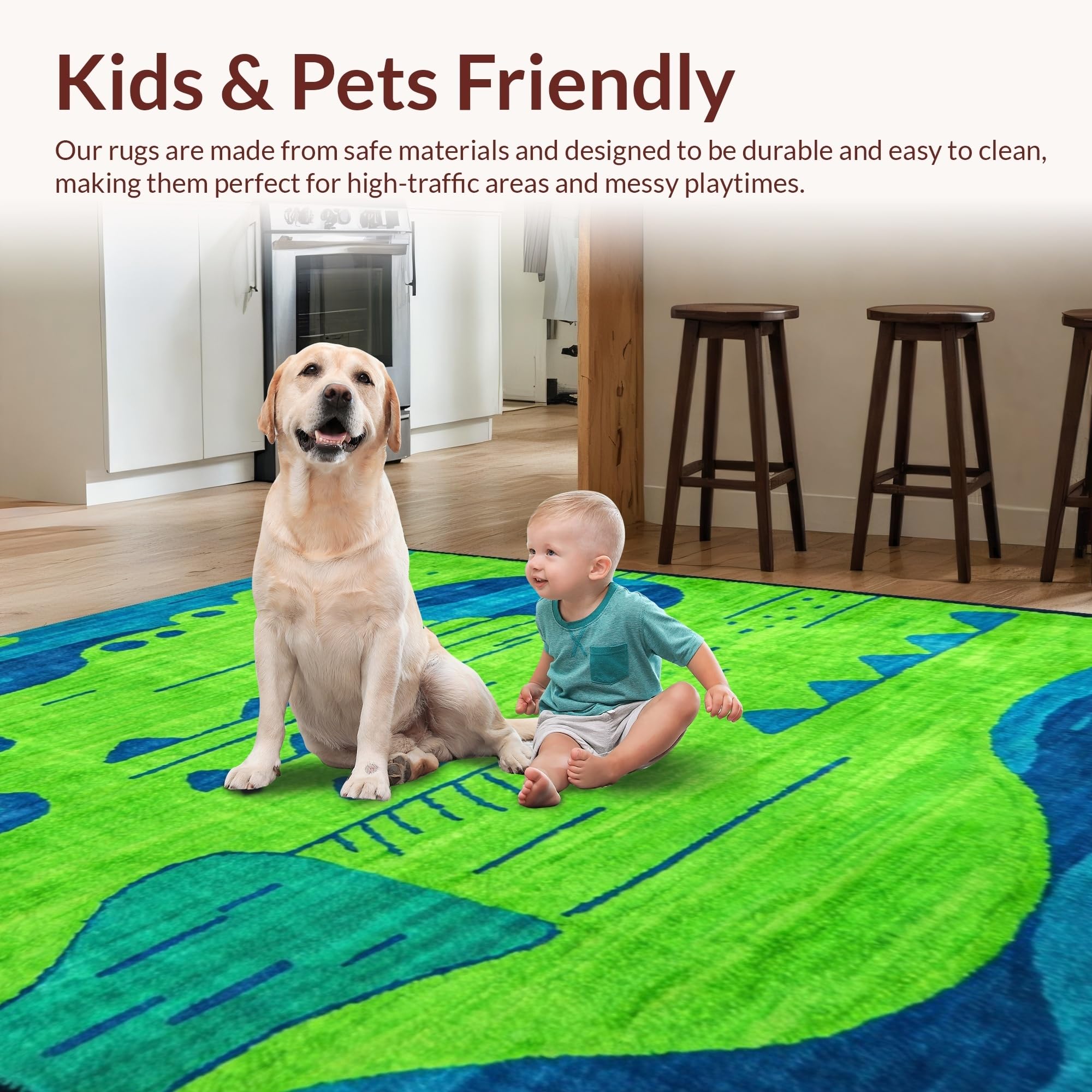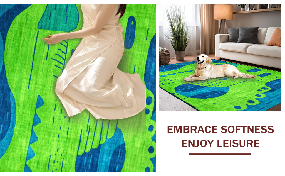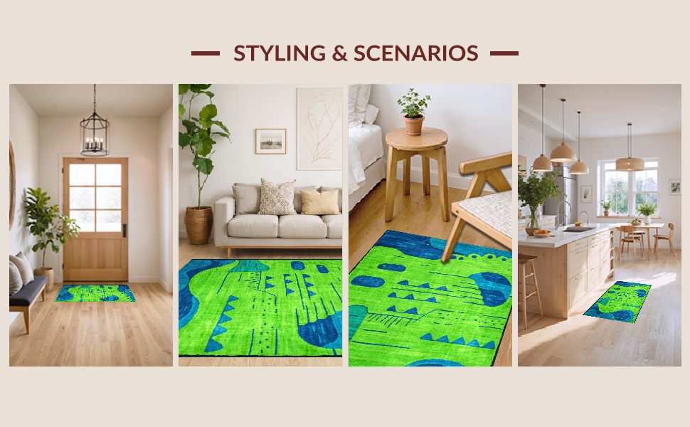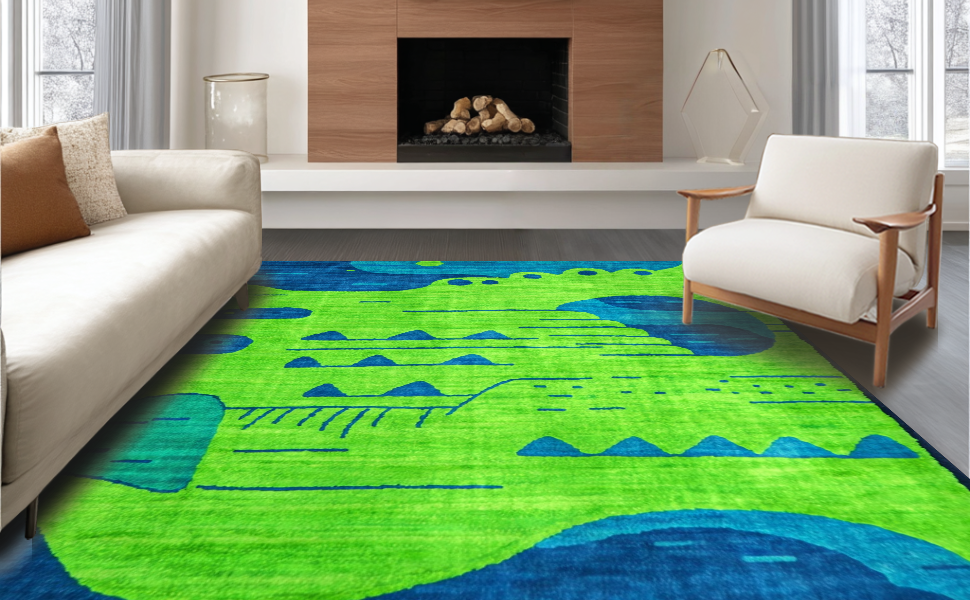 Ultra Soft Area Rug, Non Slip, Stain Resistant, Washable Area Rugs for Living Room, Bedroom, Artful Playful Critter Arrangement(Green) Overview: