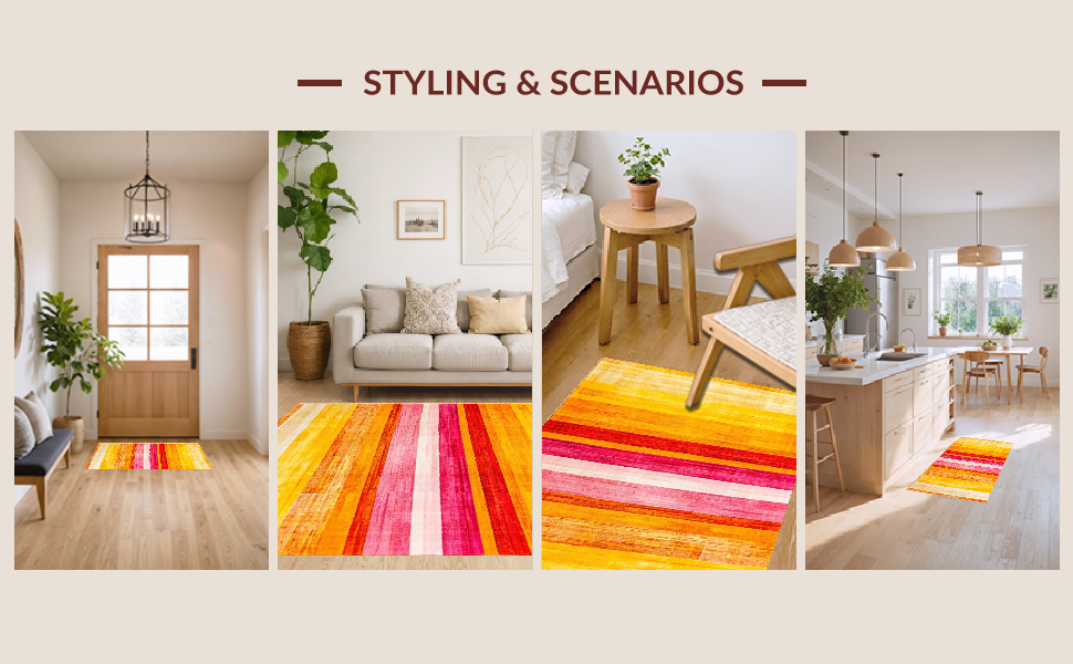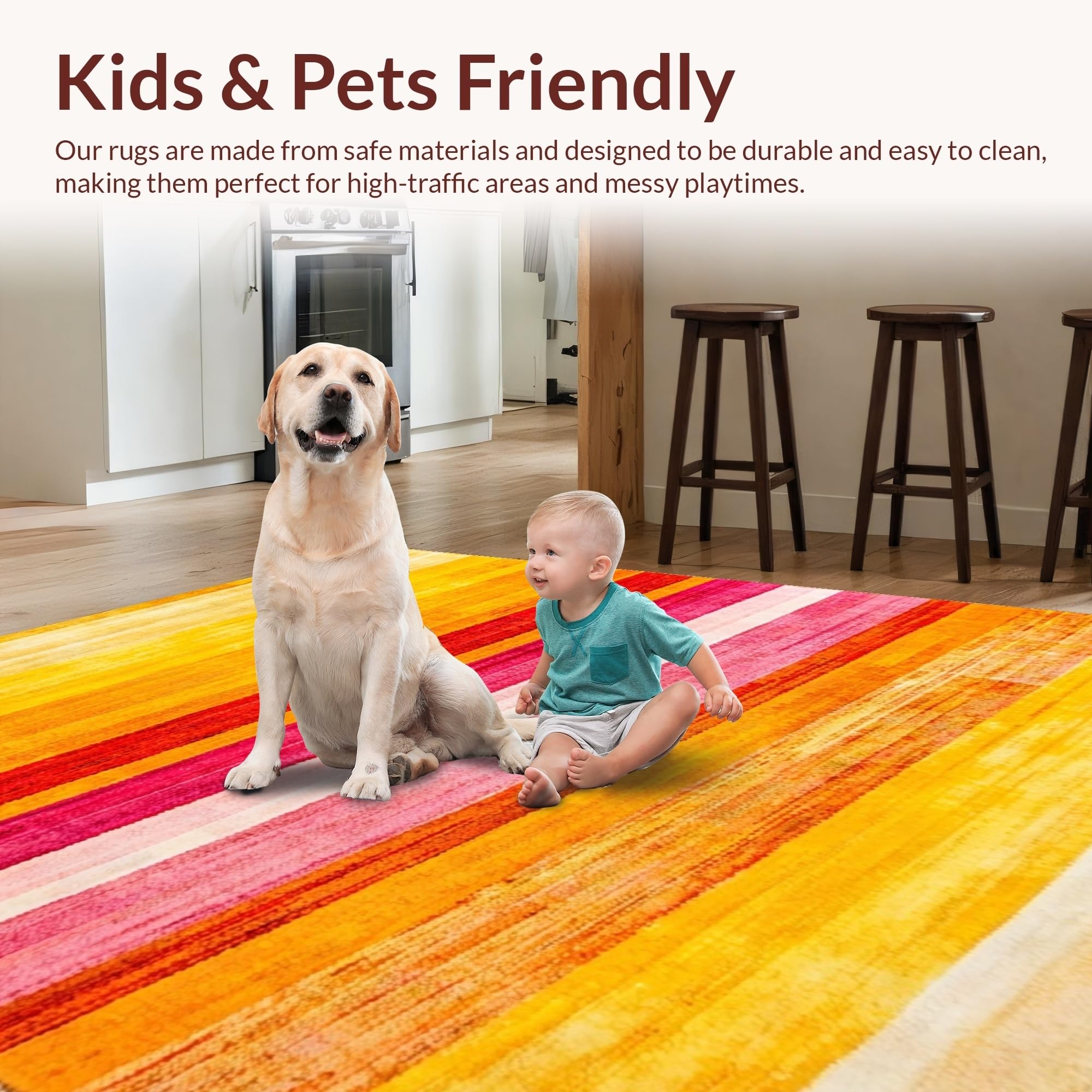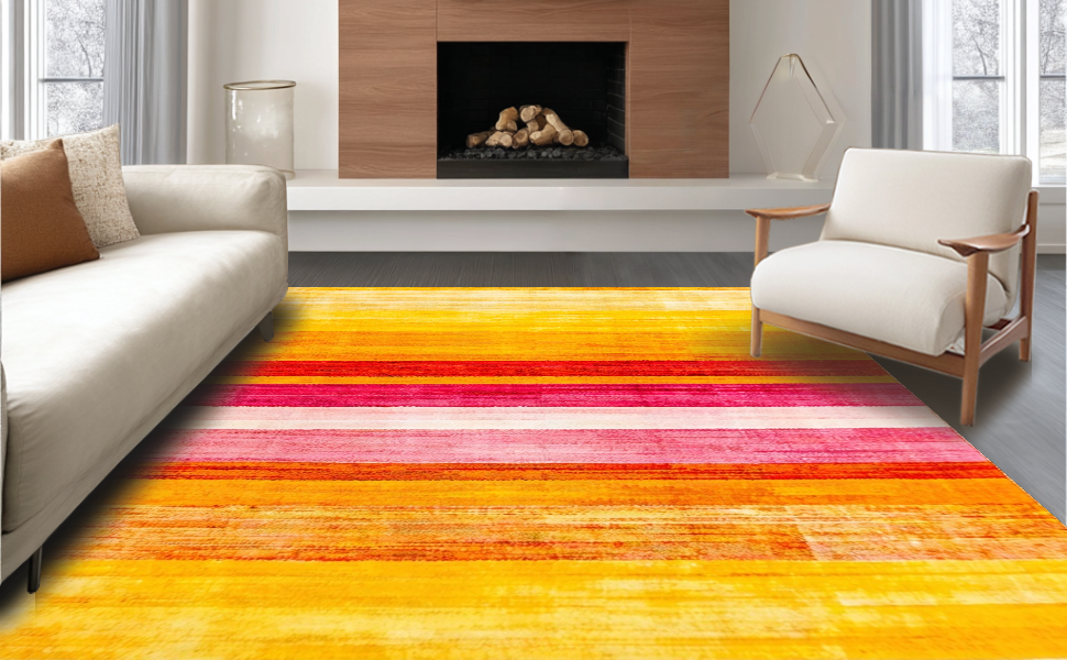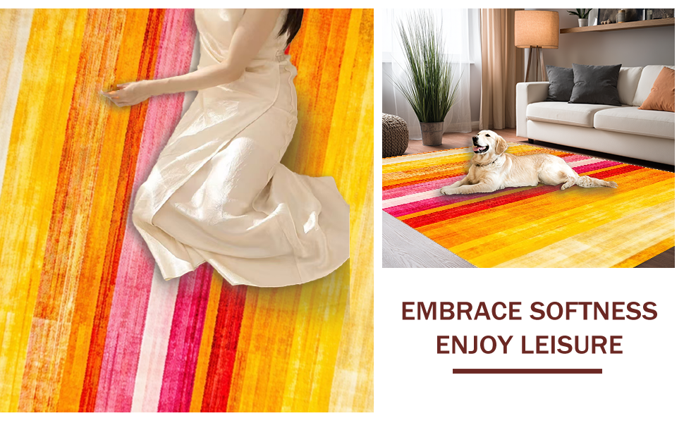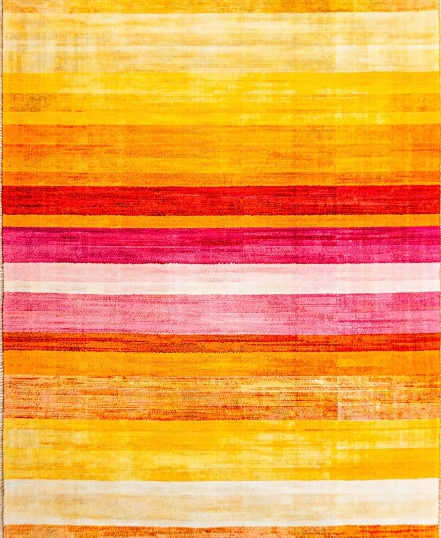 Ultra Soft Area Rug, Non Slip, Stain Resistant, Washable Area Rugs for Living Room, Bedroom, Artful Playful Rainbow Aesthetic(Yellow) Overview: