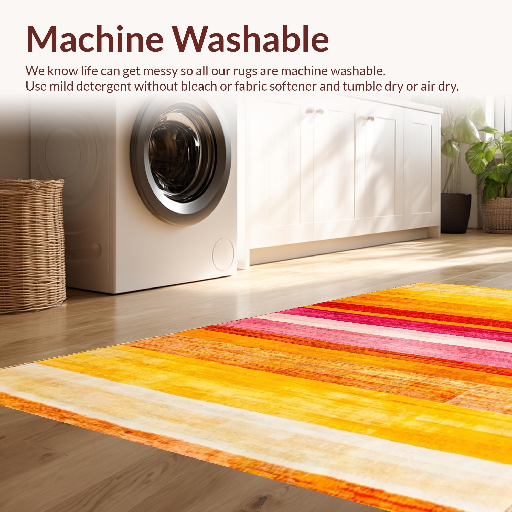 - Machine Washable: Our rugs can be easily thrown in the wash machine.