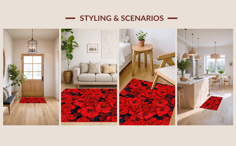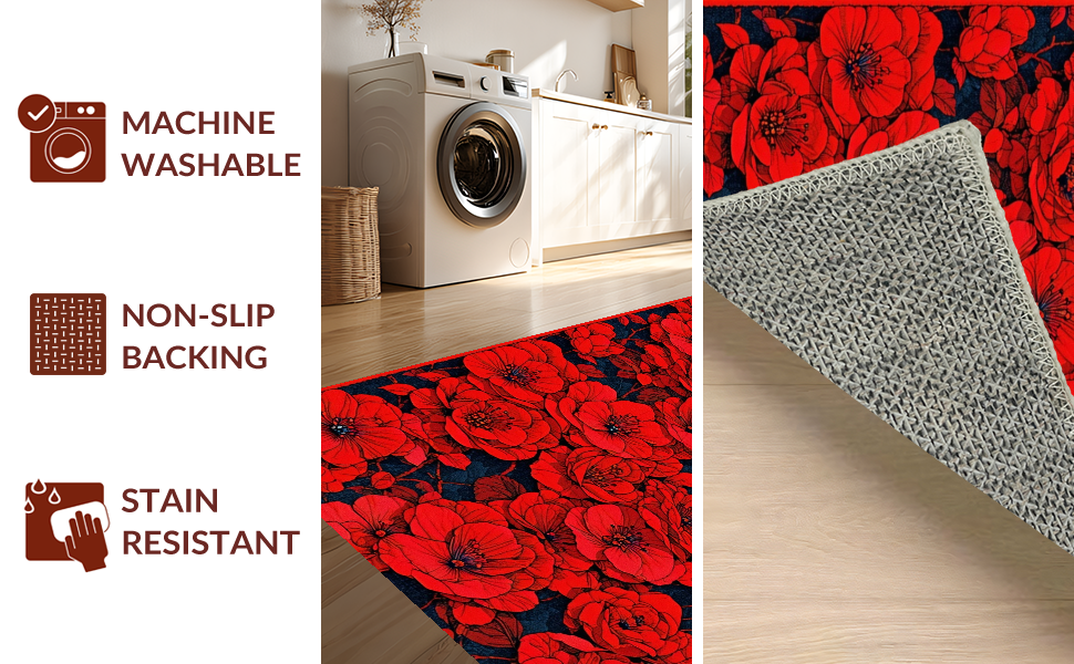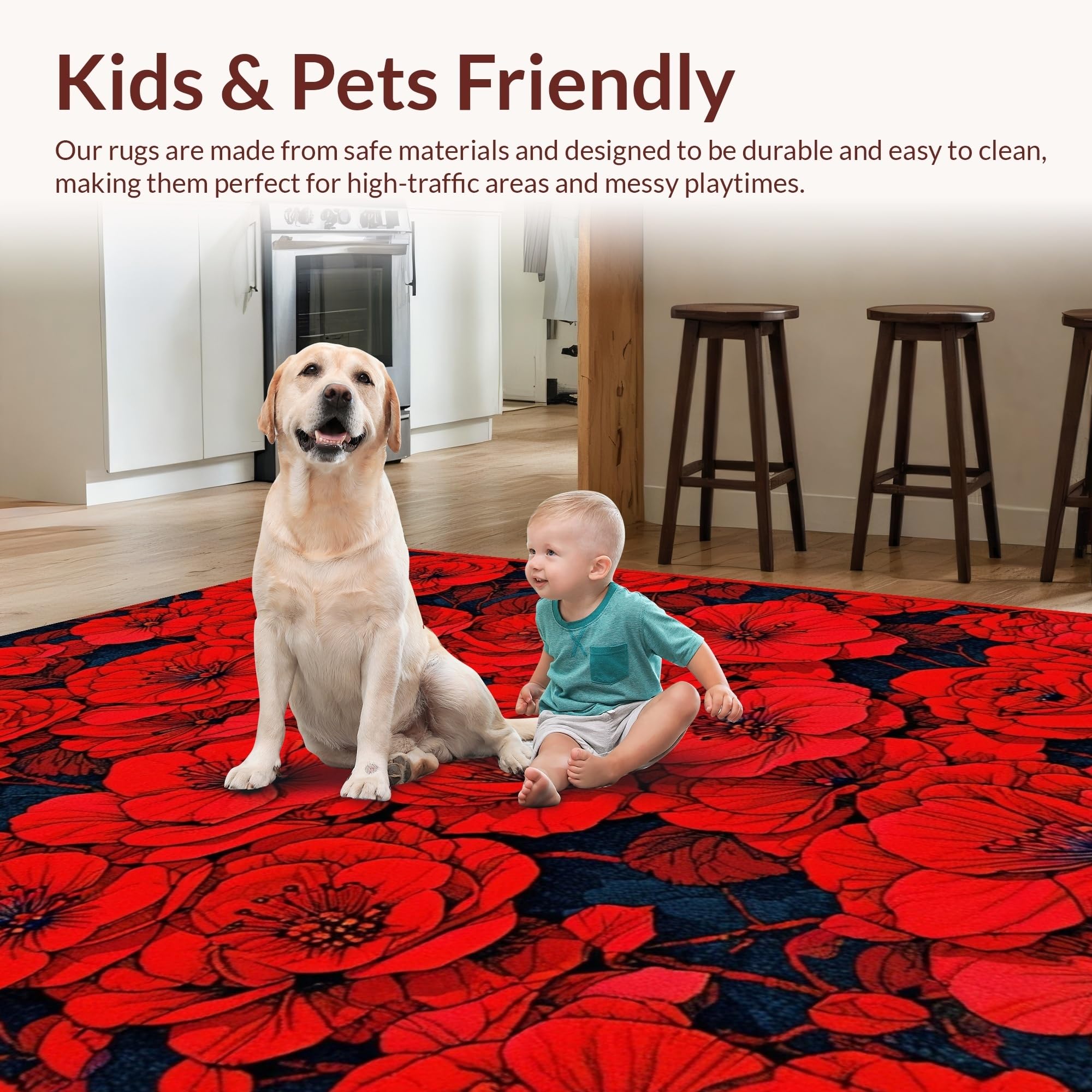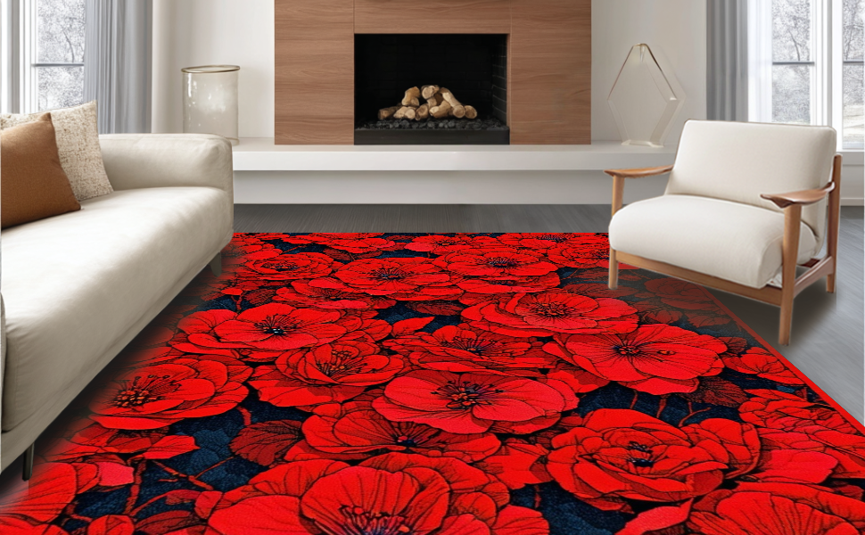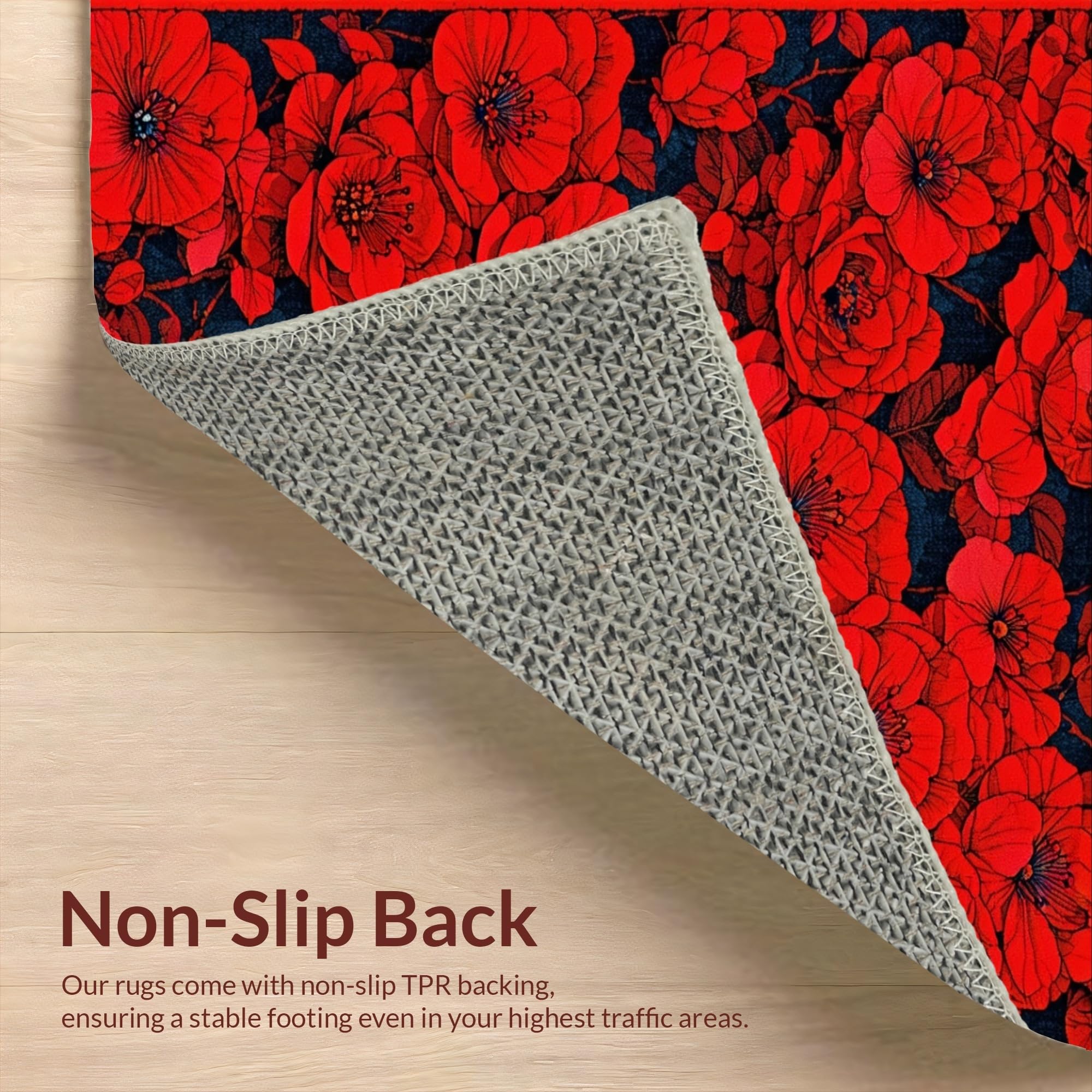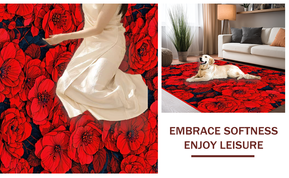 Ultra Soft Area Rug, Non Slip, Stain Resistant, Washable Area Rugs for Living Room, Bedroom, Artful Red Petal Arrangement(Red) Overview: