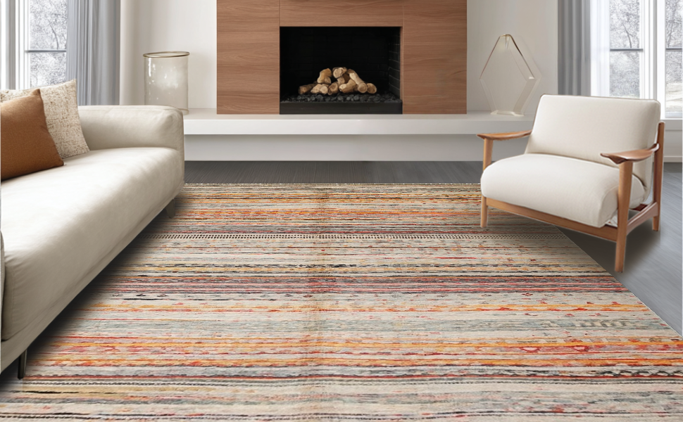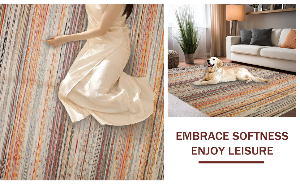 Ultra Soft Area Rug, Non Slip, Stain Resistant, Washable Area Rugs for Living Room, Bedroom, Artful Reversible Patchwork Style(Orange) Overview: