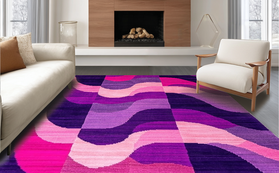 Ultra Soft Area Rug, Non Slip, Stain Resistant, Washable Area Rugs for Living Room, Bedroom, Artful Rustic Braided Textures(Purple) Overview: