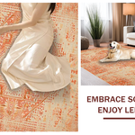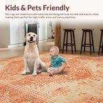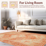 Ultra Soft Area Rug, Non Slip, Stain Resistant, Washable Area Rugs for Living Room, Bedroom, Artful Rustic Central Medallion Motif(Orange) Overview: