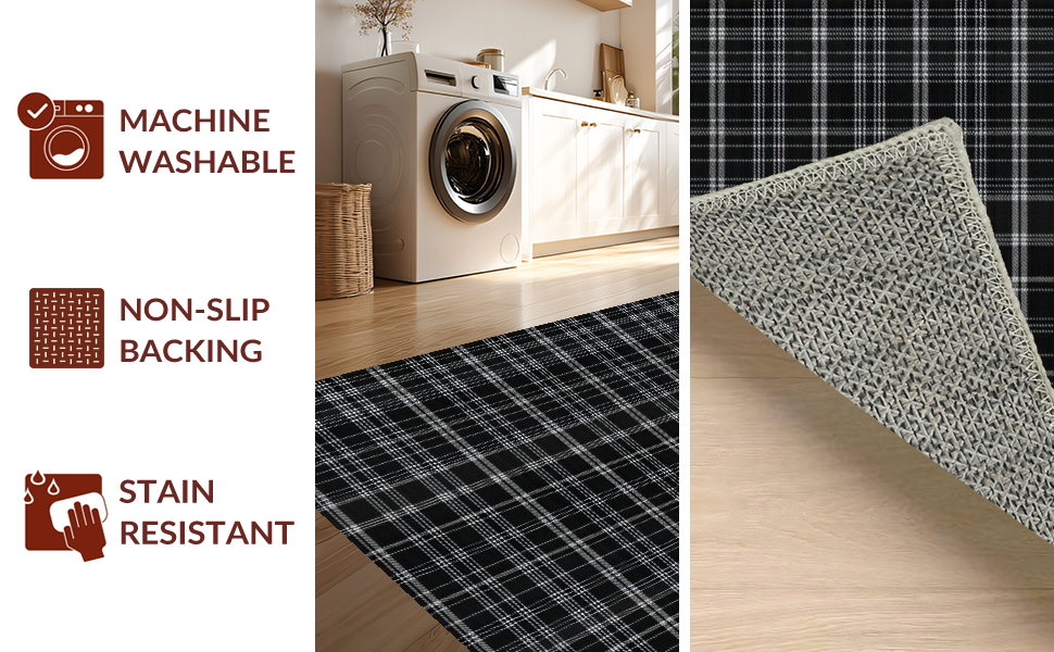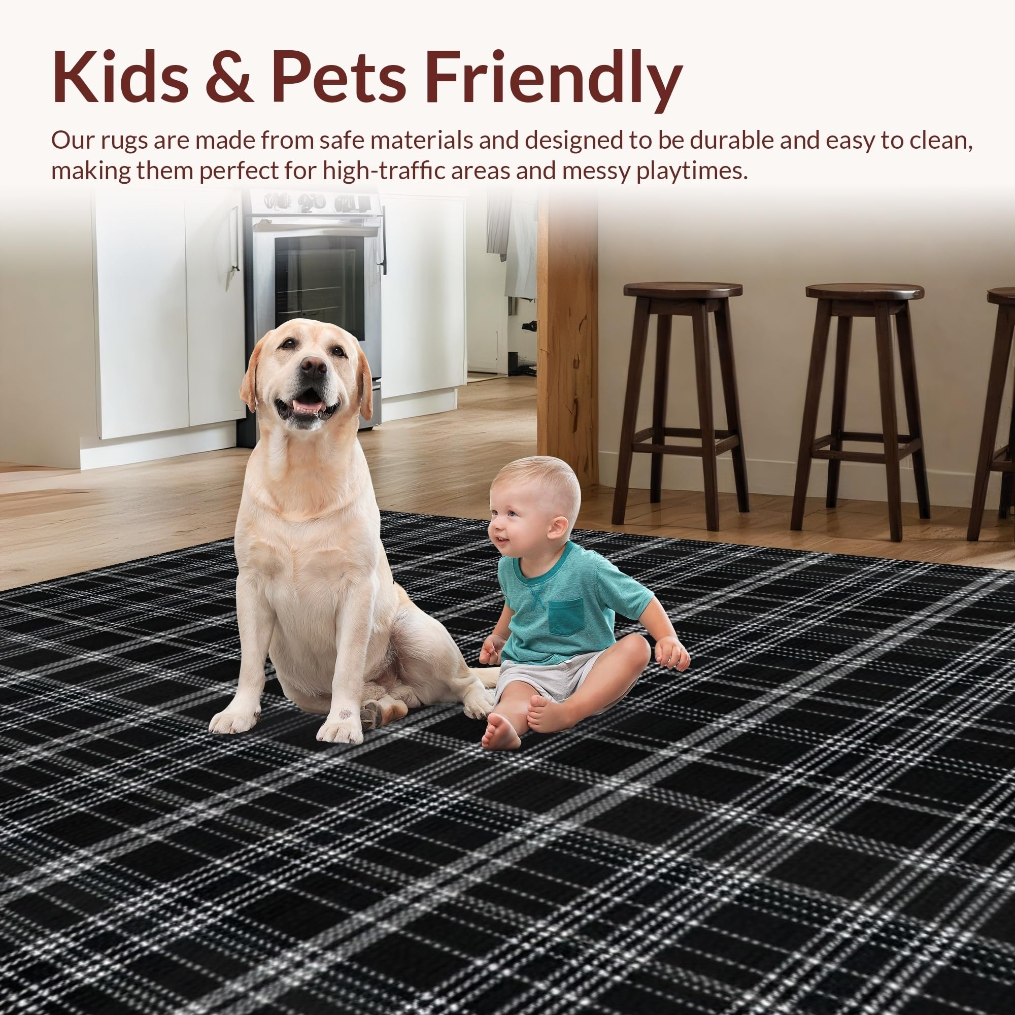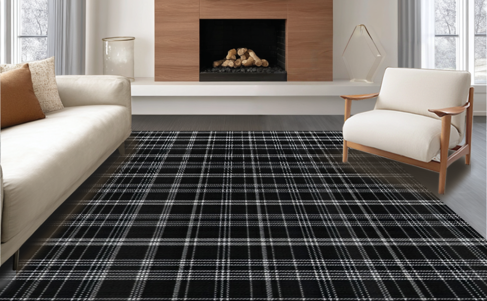 Ultra Soft Area Rug, Non Slip, Stain Resistant, Washable Area Rugs for Living Room, Bedroom, Artful Rustic Checkerboard Appeal(Black) Overview: