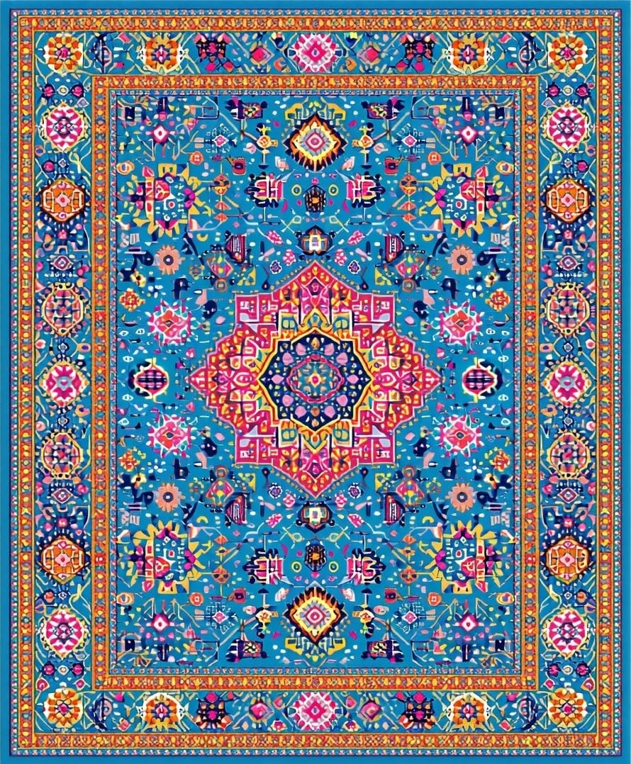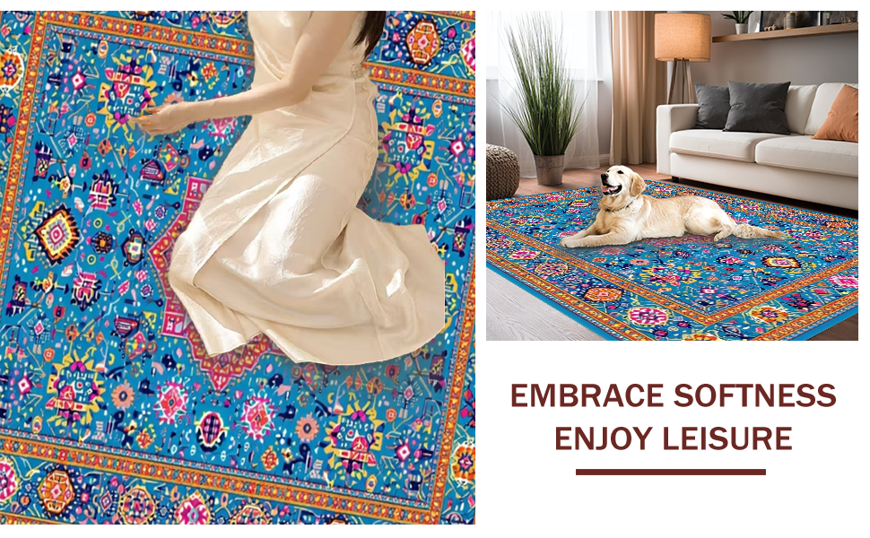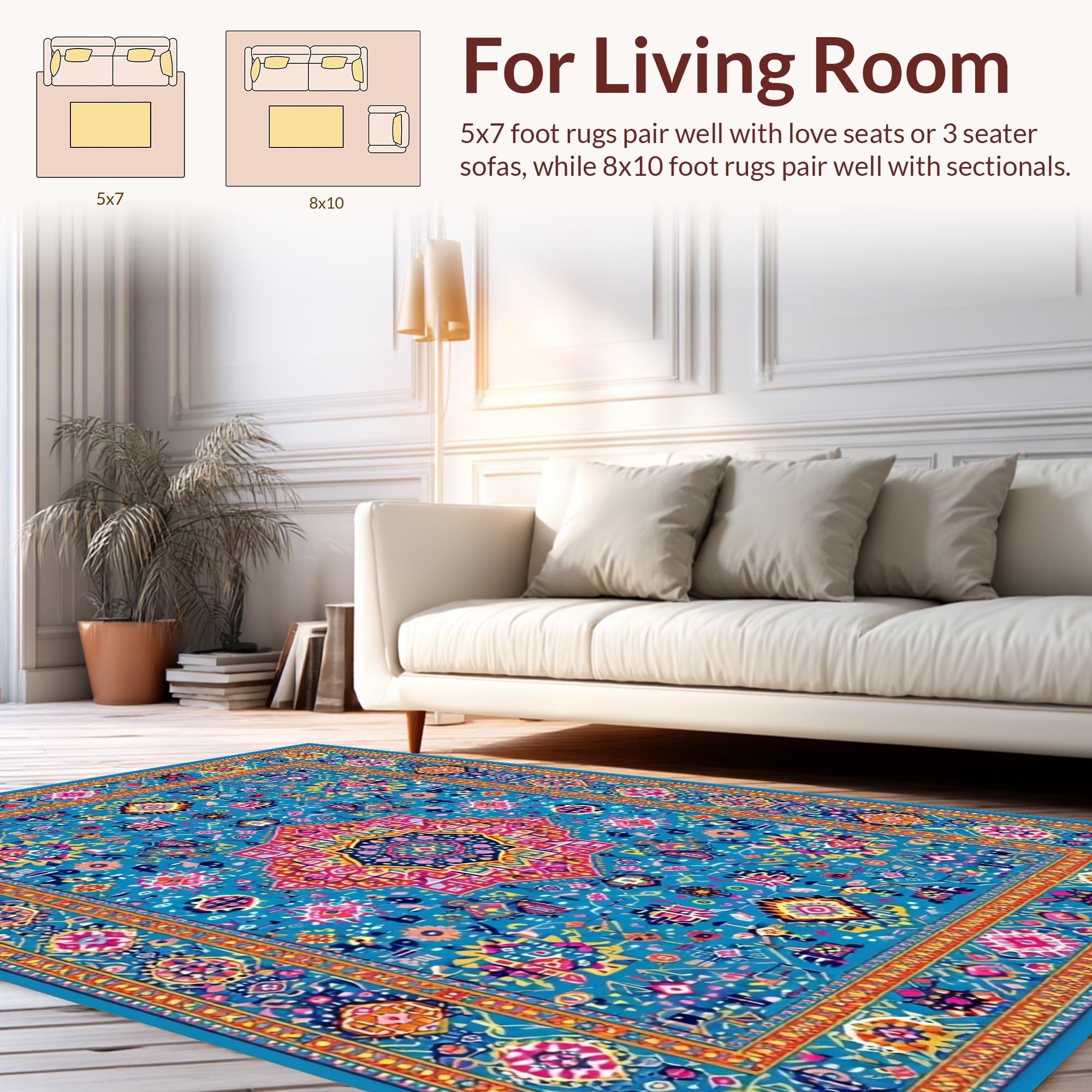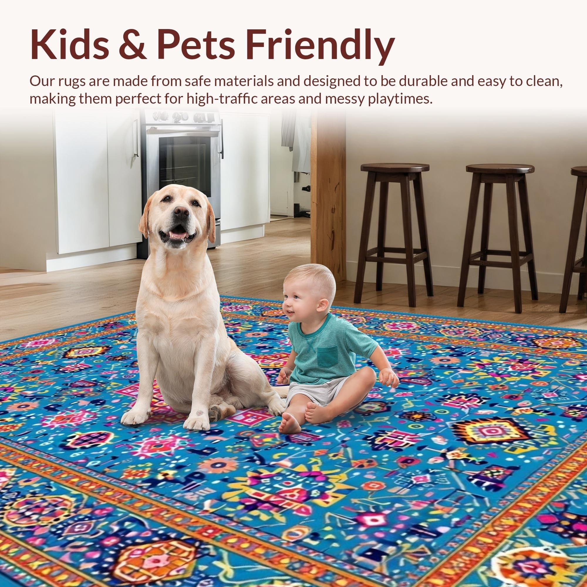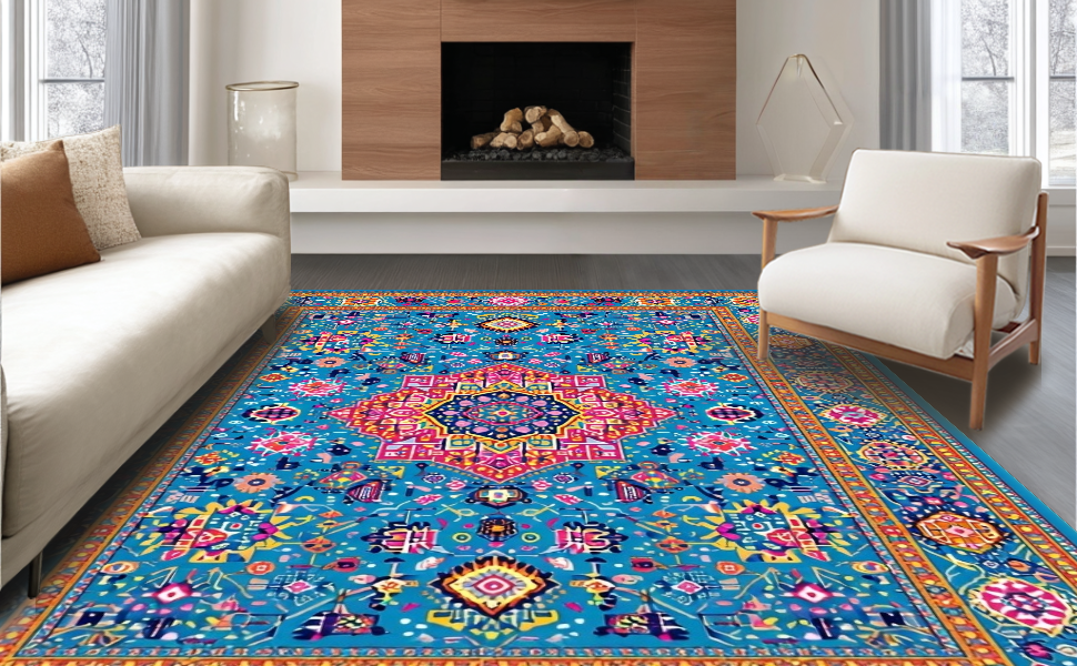 Ultra Soft Area Rug, Non Slip, Stain Resistant, Washable Area Rugs for Living Room, Bedroom, Artful Rustic Color Burst Design(Blue) Overview: