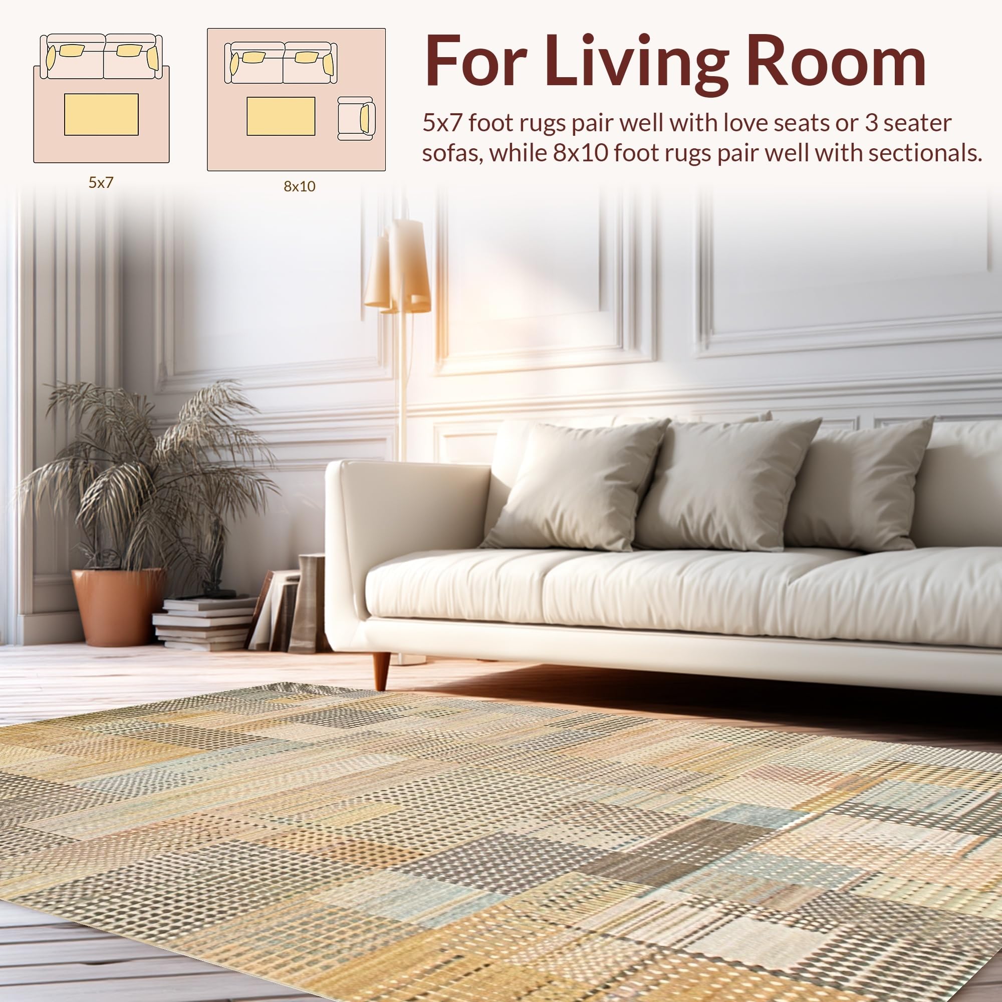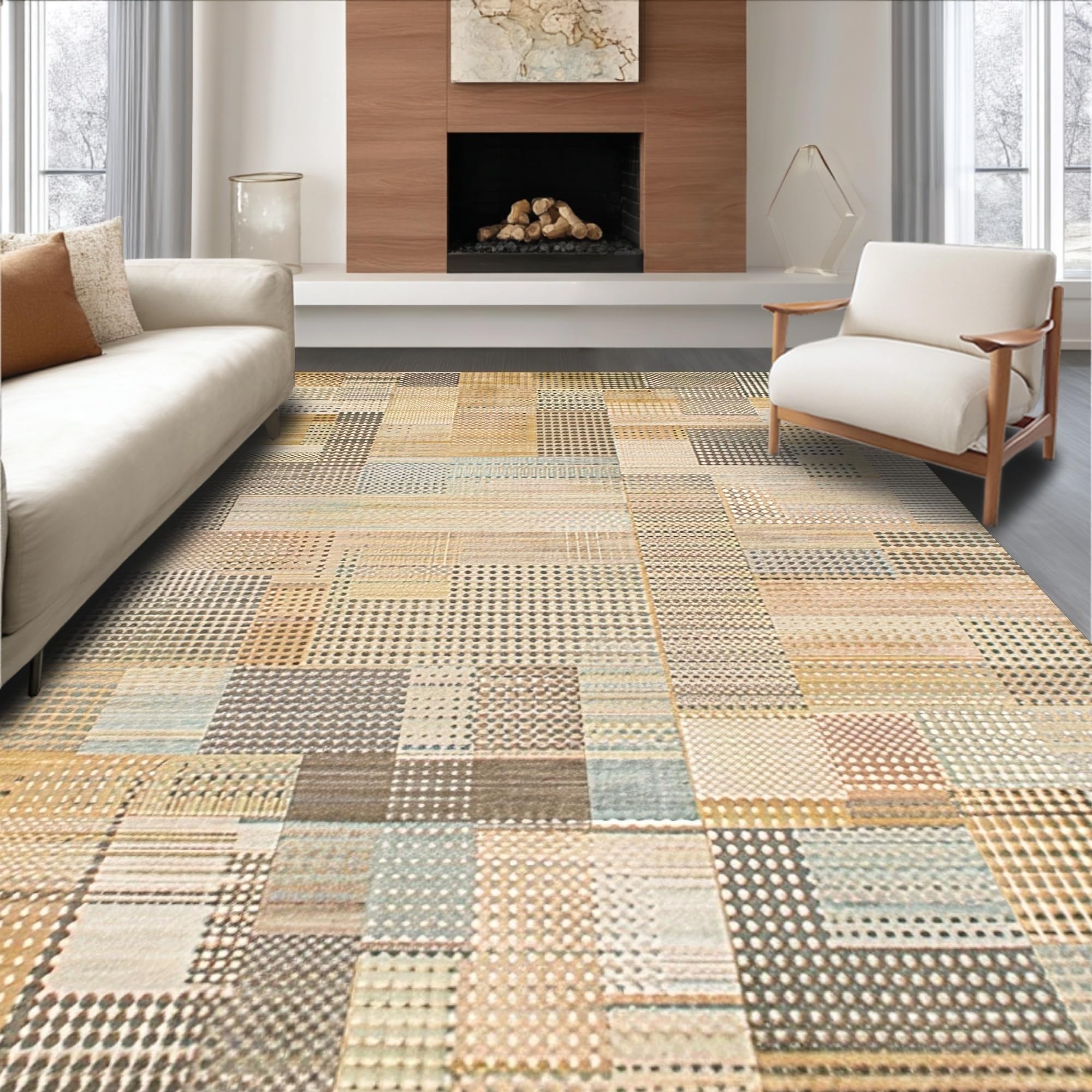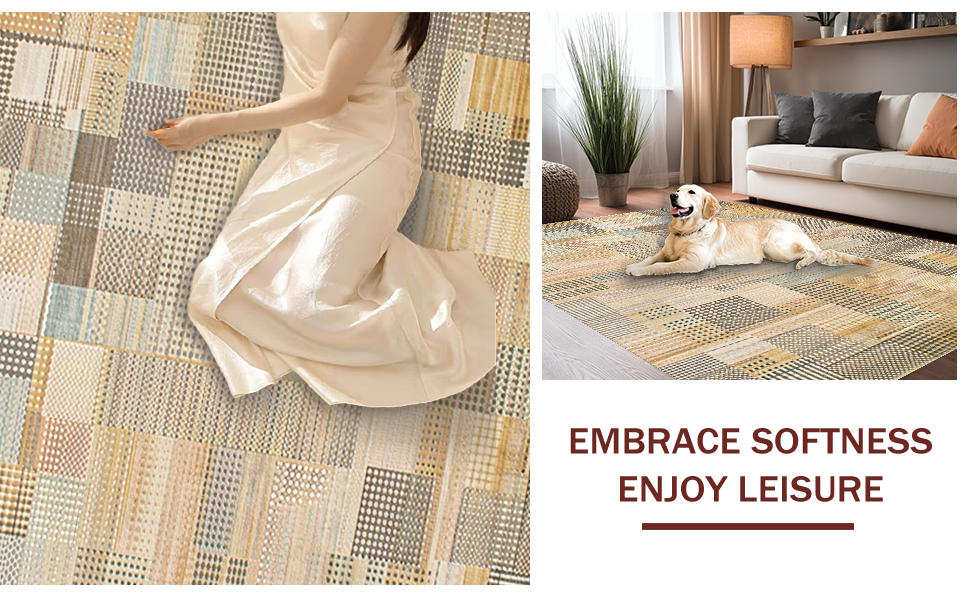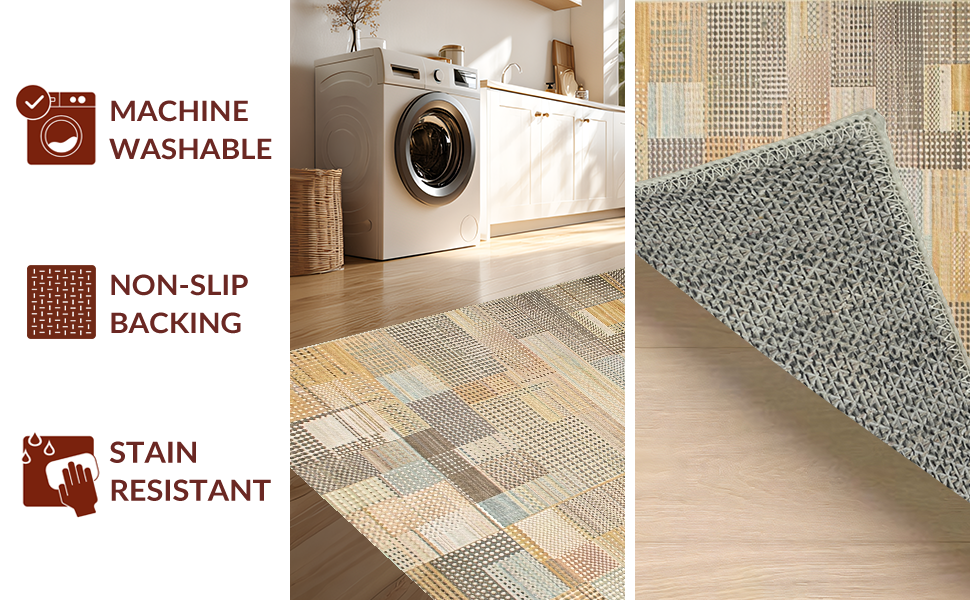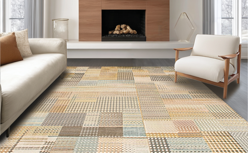 Ultra Soft Area Rug, Non Slip, Stain Resistant, Washable Area Rugs for Living Room, Bedroom, Artful Rustic Geometric Appeal(Beige) Overview: