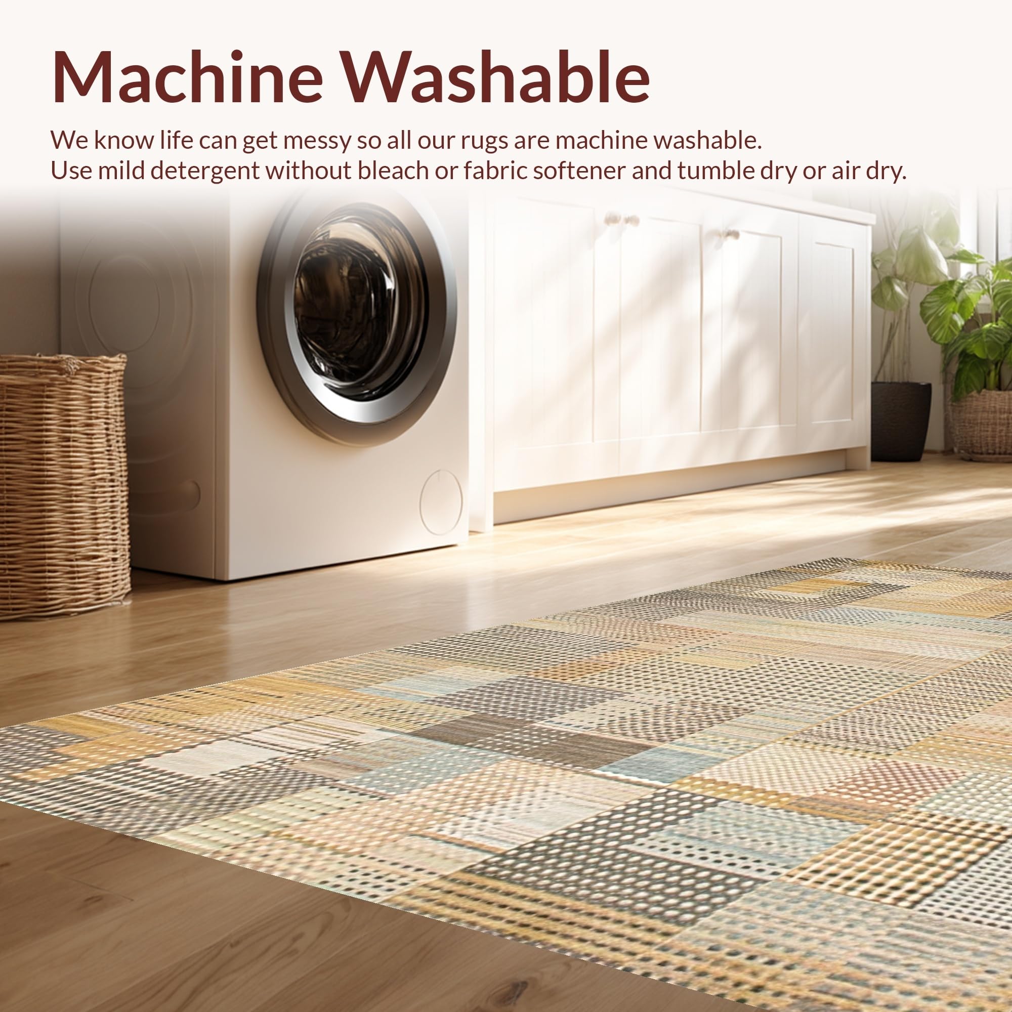 - Machine Washable: Our rugs can be easily thrown in the wash machine.