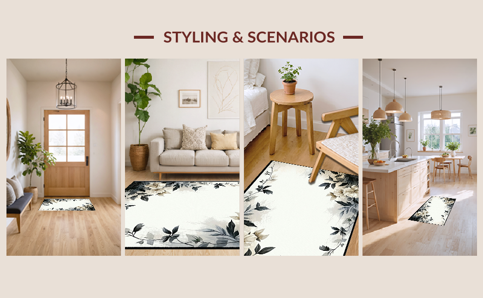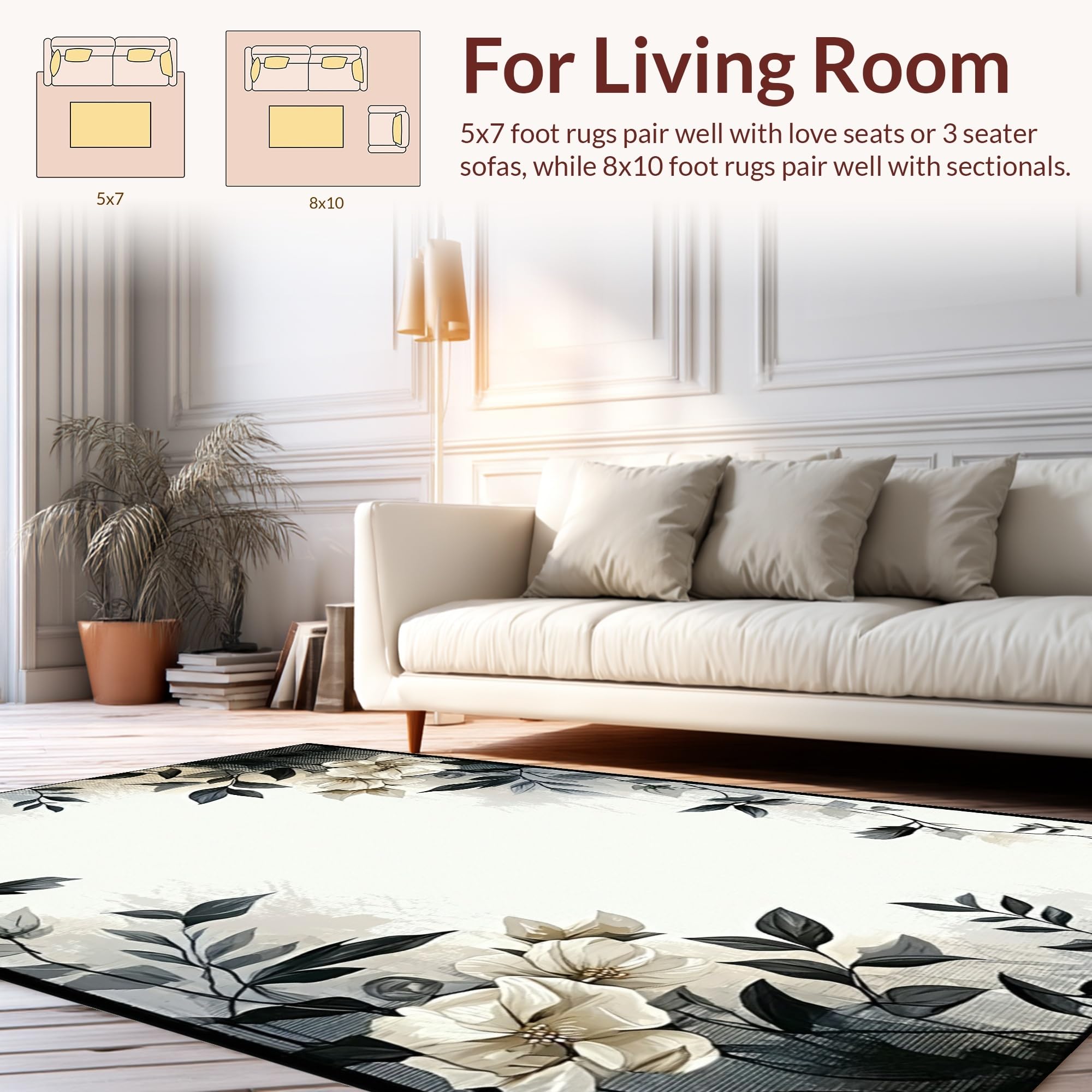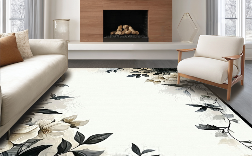 Ultra Soft Area Rug, Non Slip, Stain Resistant, Washable Area Rugs for Living Room, Bedroom, Artful Rustic Leaf Print(Beige) Overview: