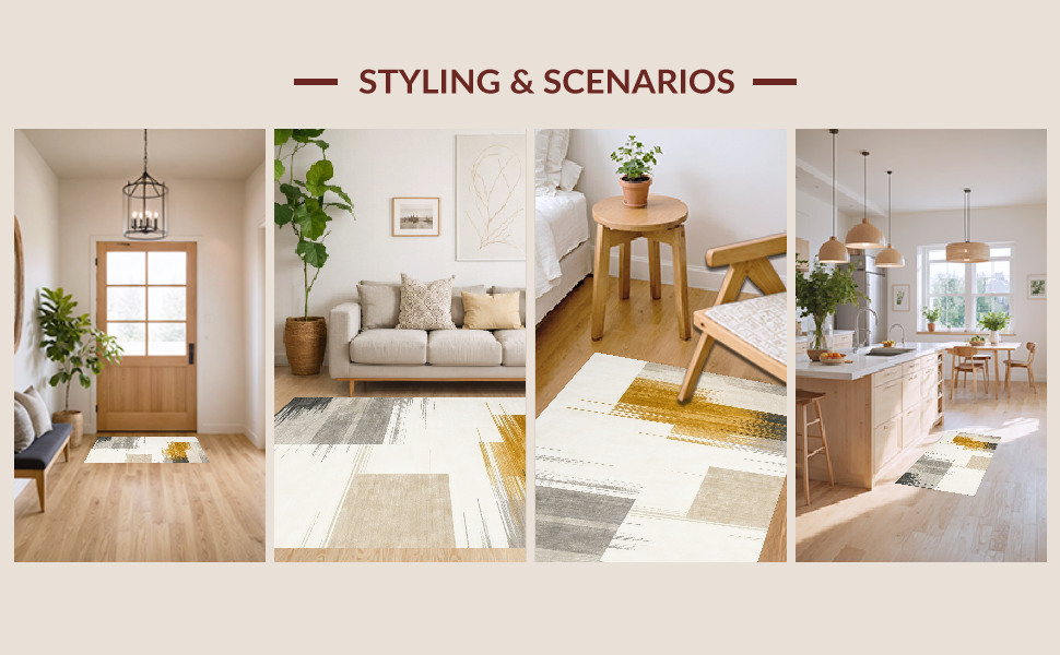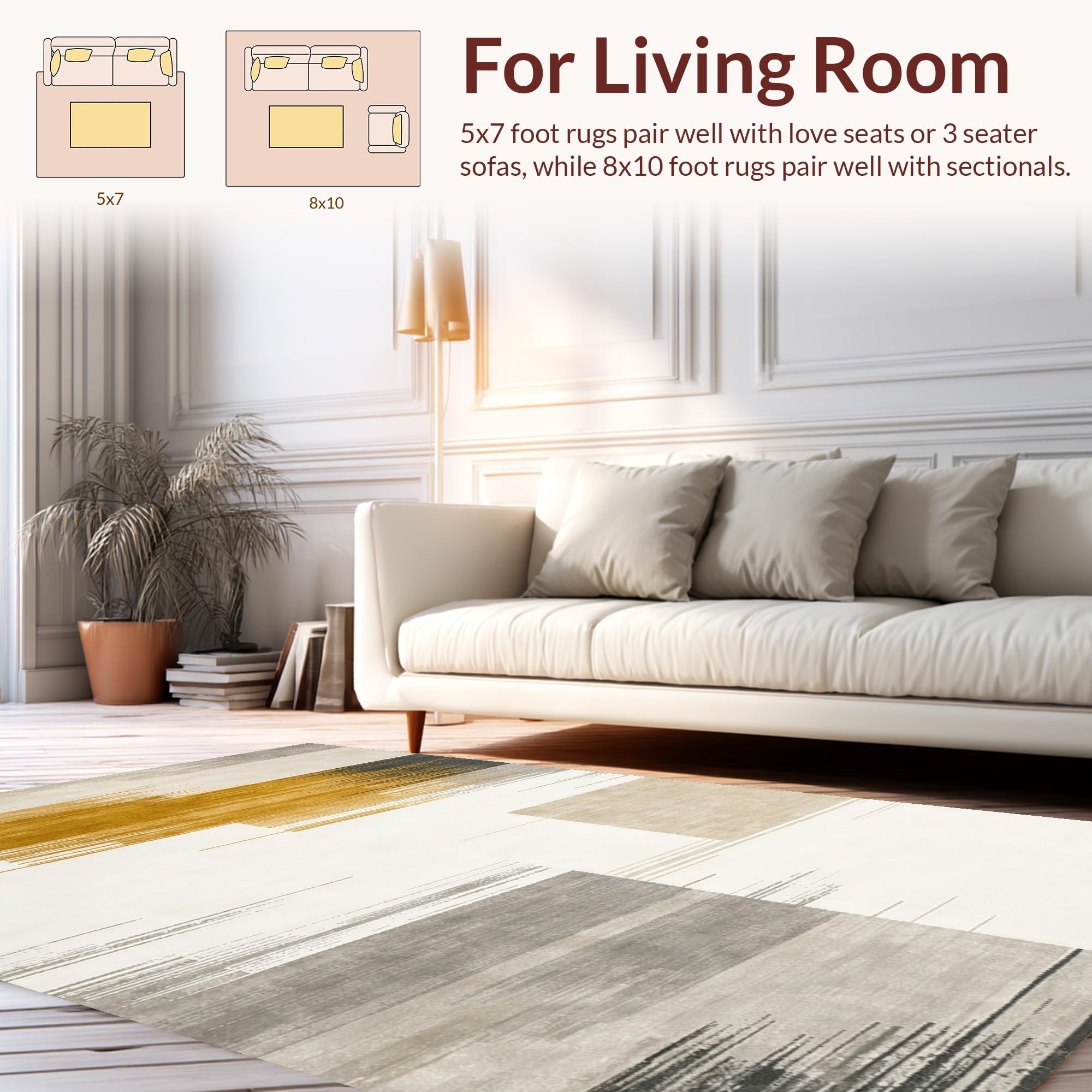 Ultra Soft Area Rug, Non Slip, Stain Resistant, Washable Area Rugs for Living Room, Bedroom, Artful Rustic Medallion Theme(Beige) Overview: