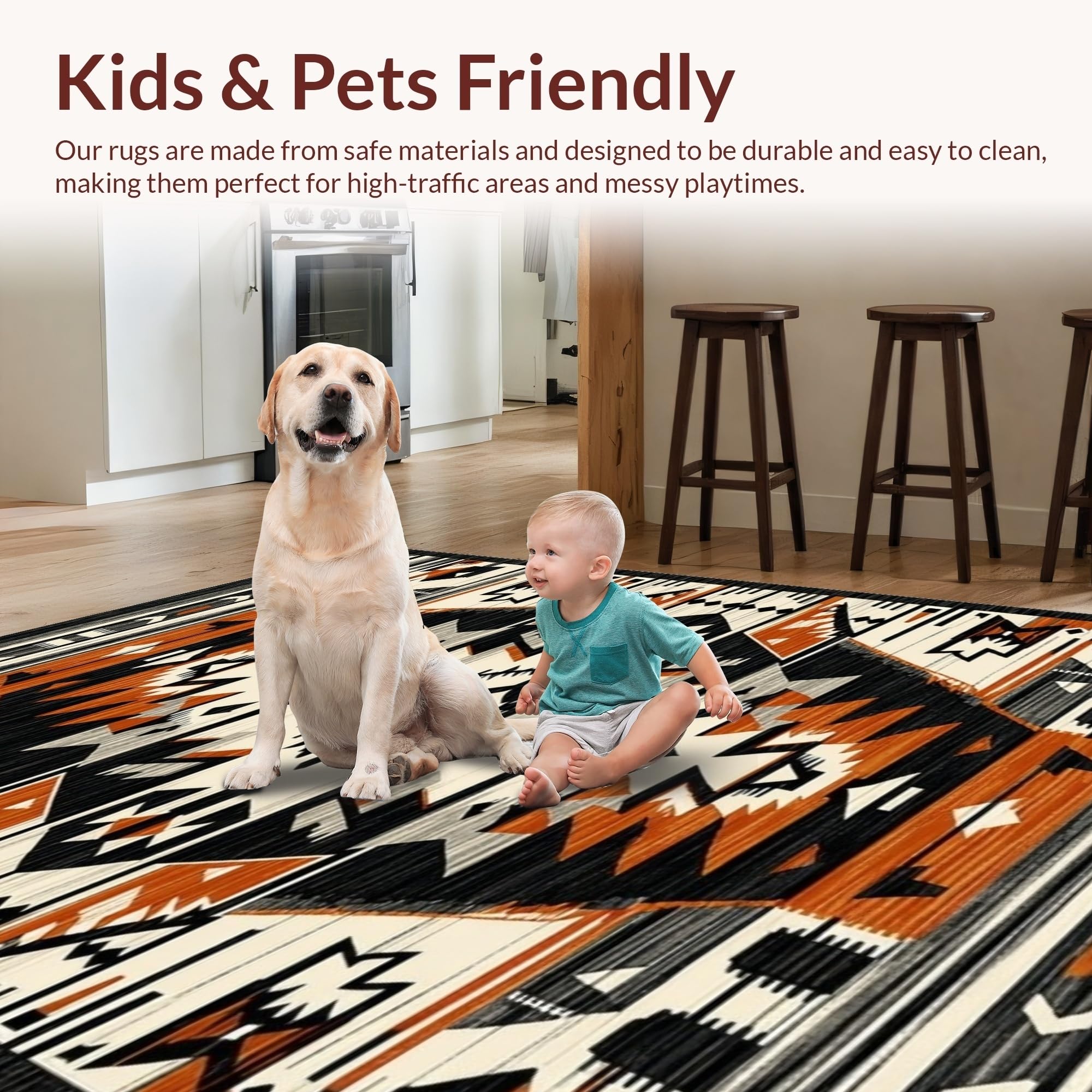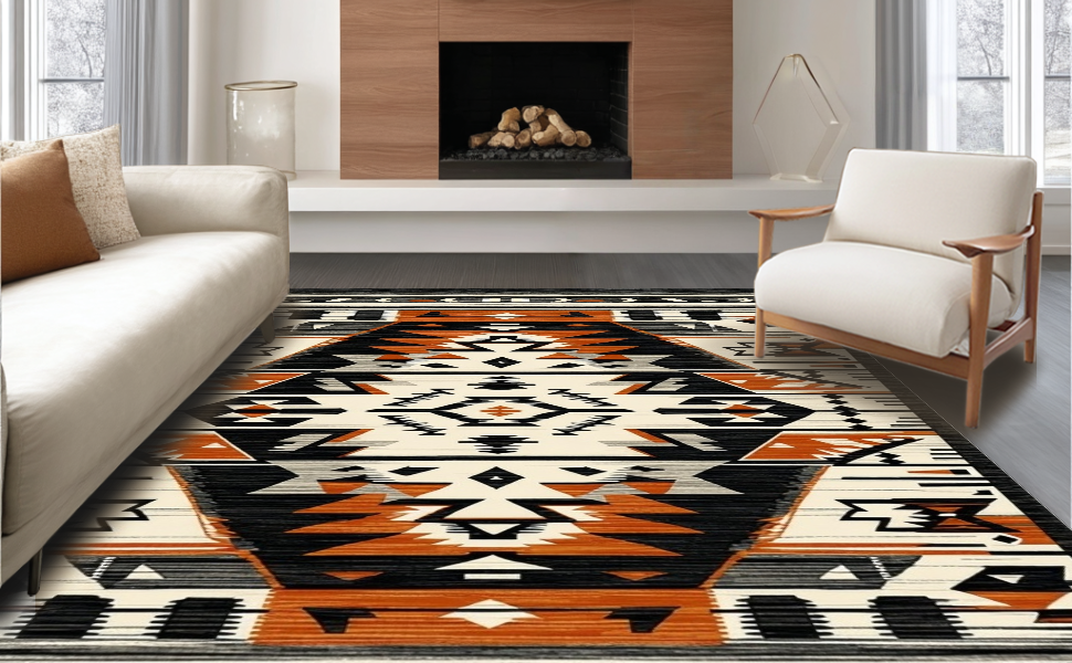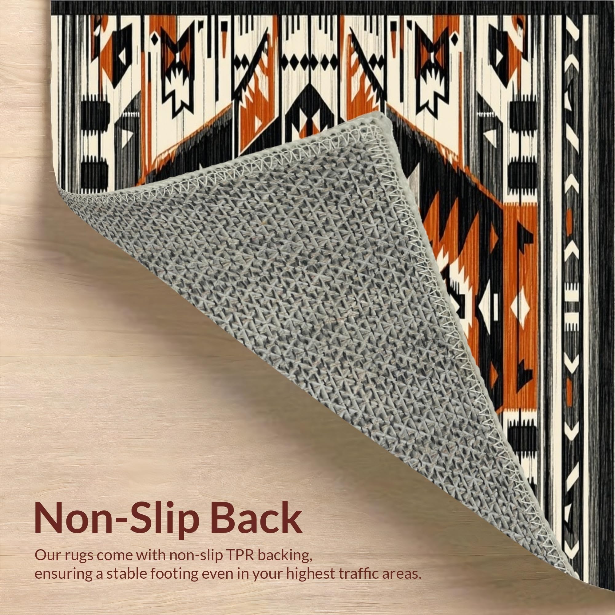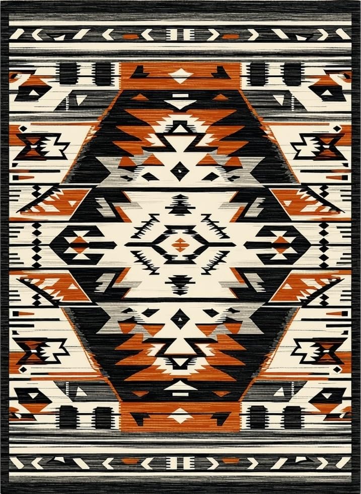 Ultra Soft Area Rug, Non Slip, Stain Resistant, Washable Area Rugs for Living Room, Bedroom, Artful Rustic Ogee Pattern(Black) Overview: