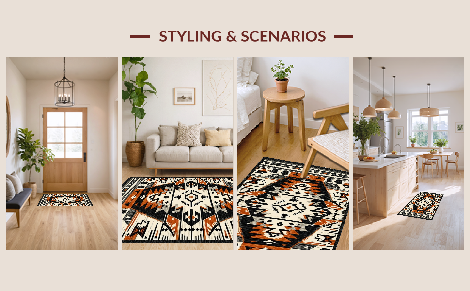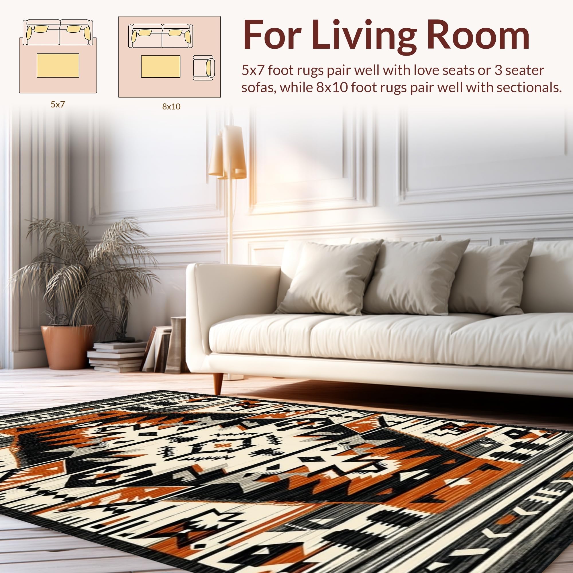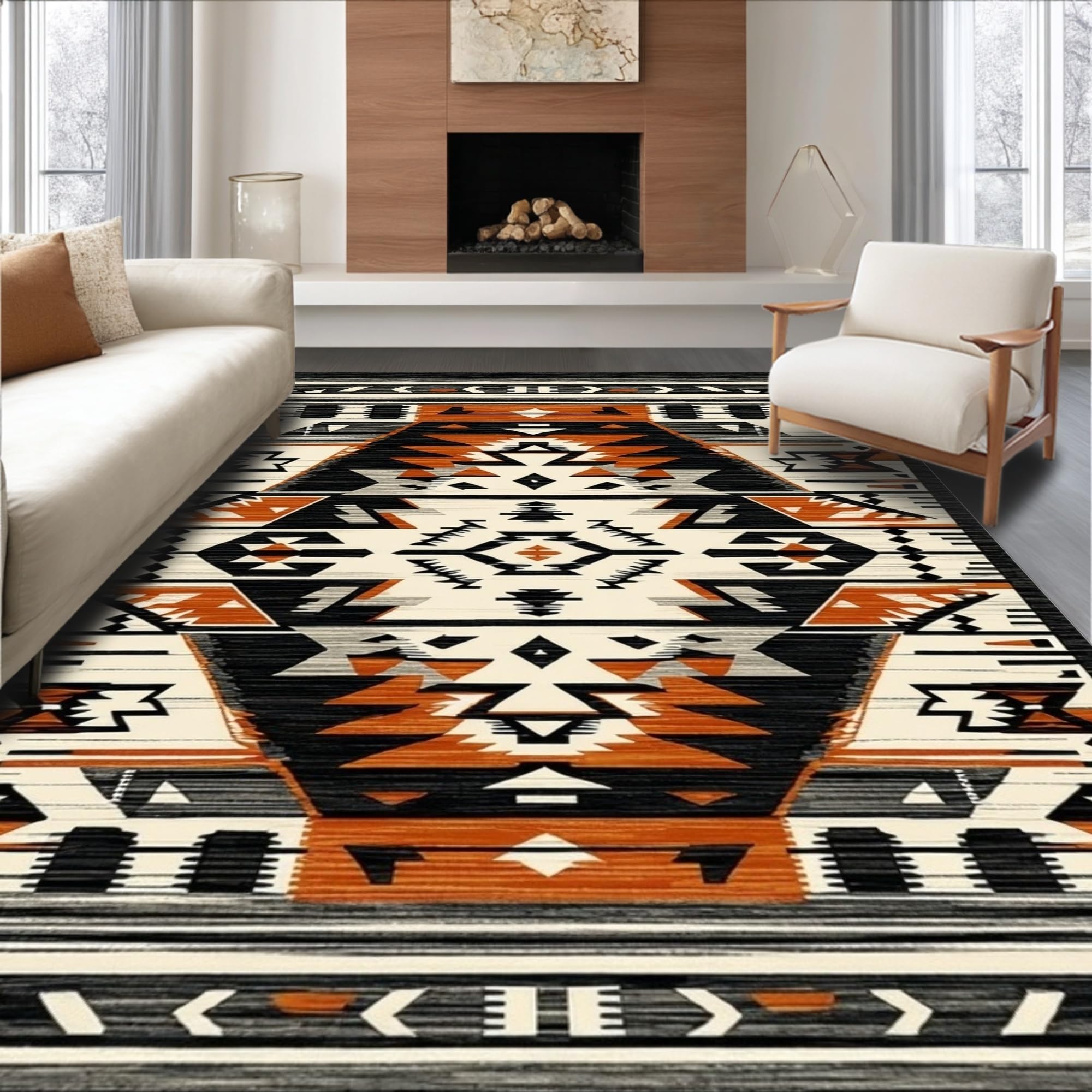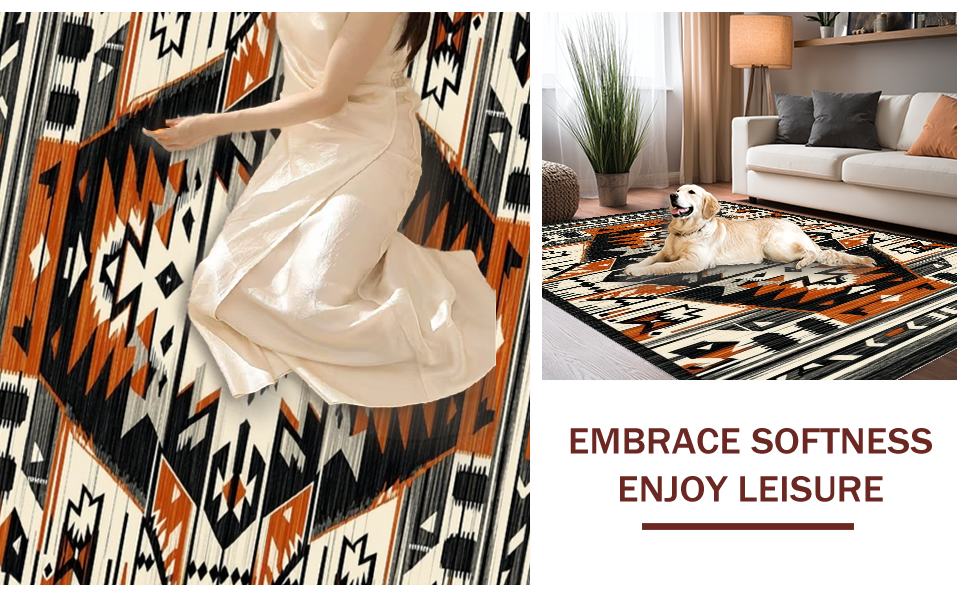 Ultra Soft Area Rug, Non Slip, Stain Resistant, Washable Area Rugs for Living Room, Bedroom, Artful Rustic Ogee Pattern(Black) Overview: