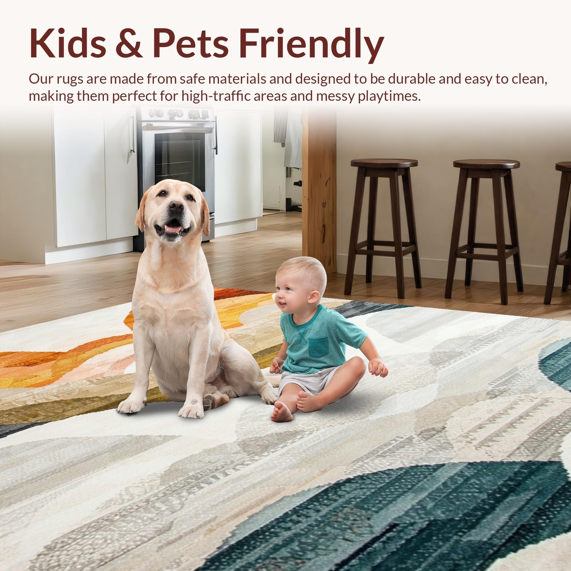 Ultra Soft Area Rug, Non Slip, Stain Resistant, Washable Area Rugs for Living Room, Bedroom, Artful Rustic Rainbow Pattern(Beige) Overview: