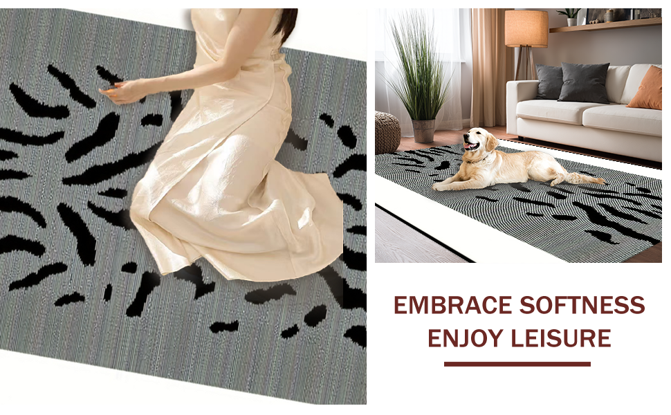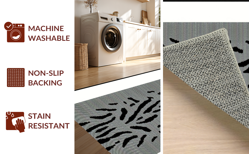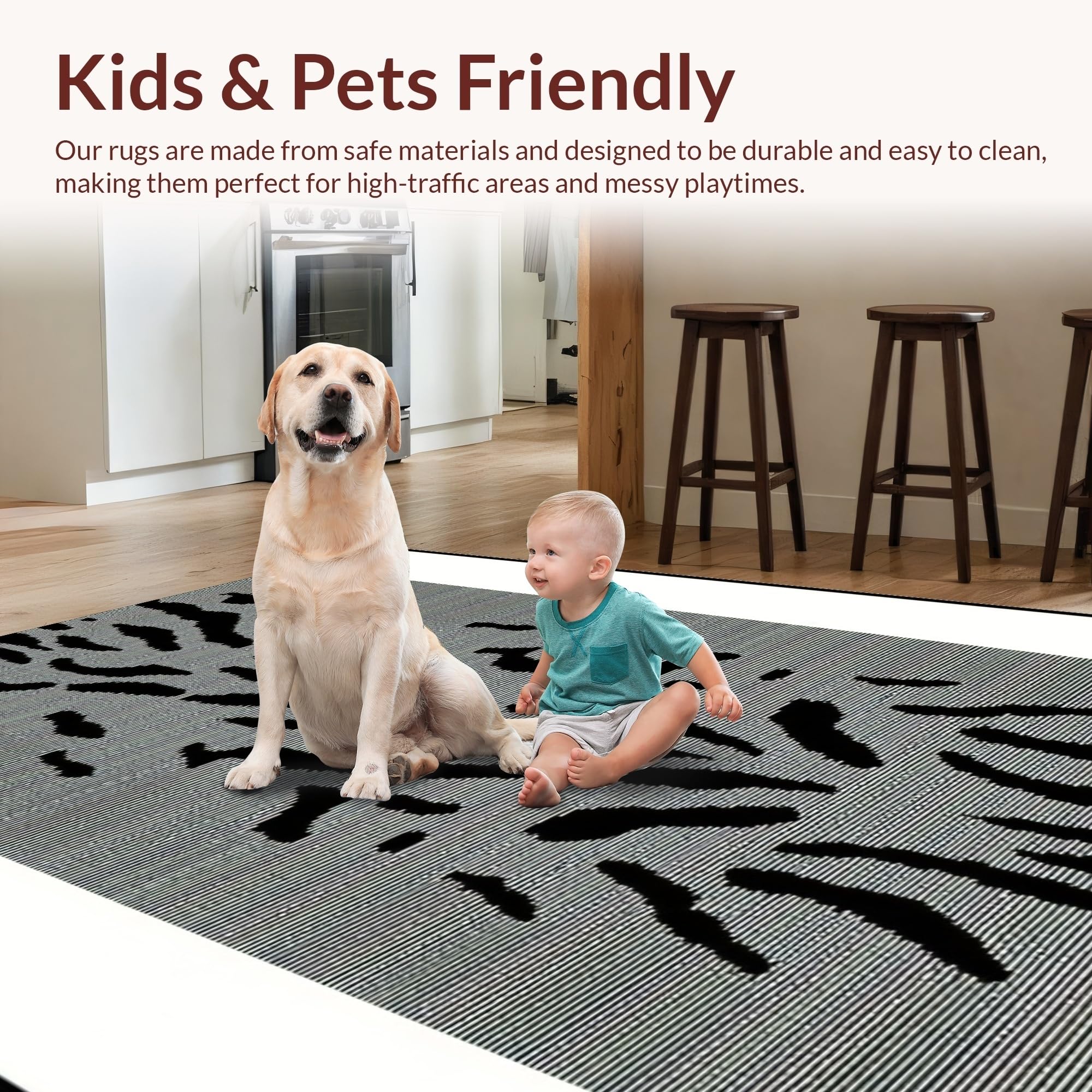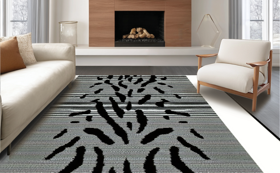 Ultra Soft Area Rug, Non Slip, Stain Resistant, Washable Area Rugs for Living Room, Bedroom, Artful Safari Style Design(Black) Overview: