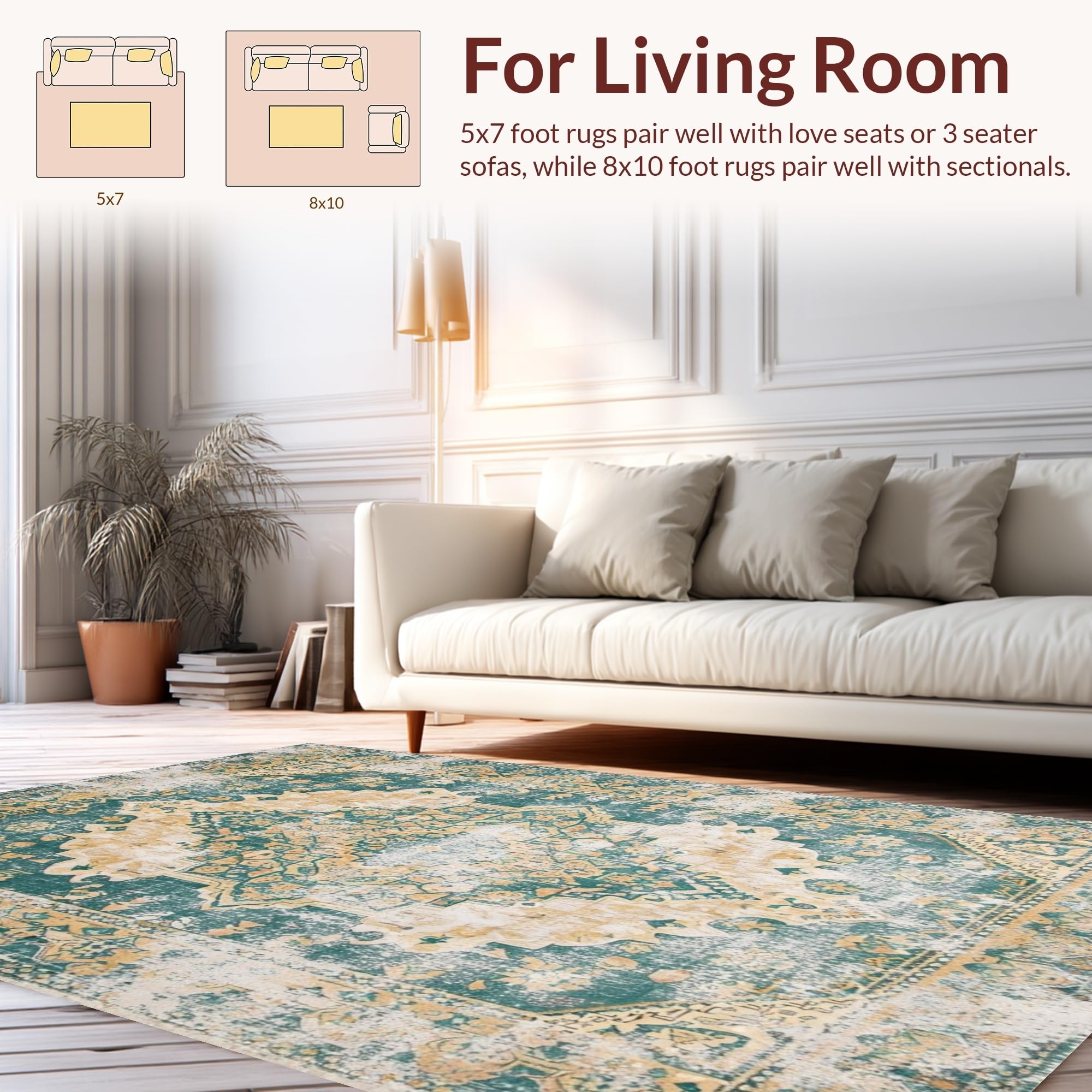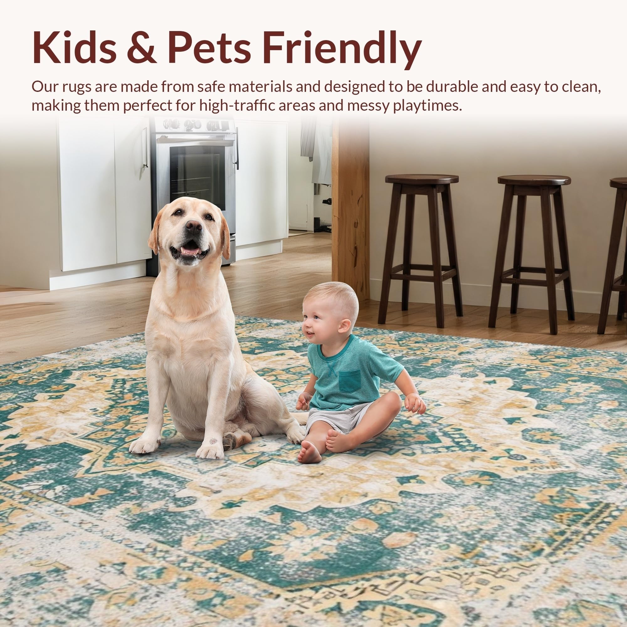 Ultra Soft Area Rug, Non Slip, Stain Resistant, Washable Area Rugs for Living Room, Bedroom, Artful Sage Tinted Trellis Layout(Green) Overview: