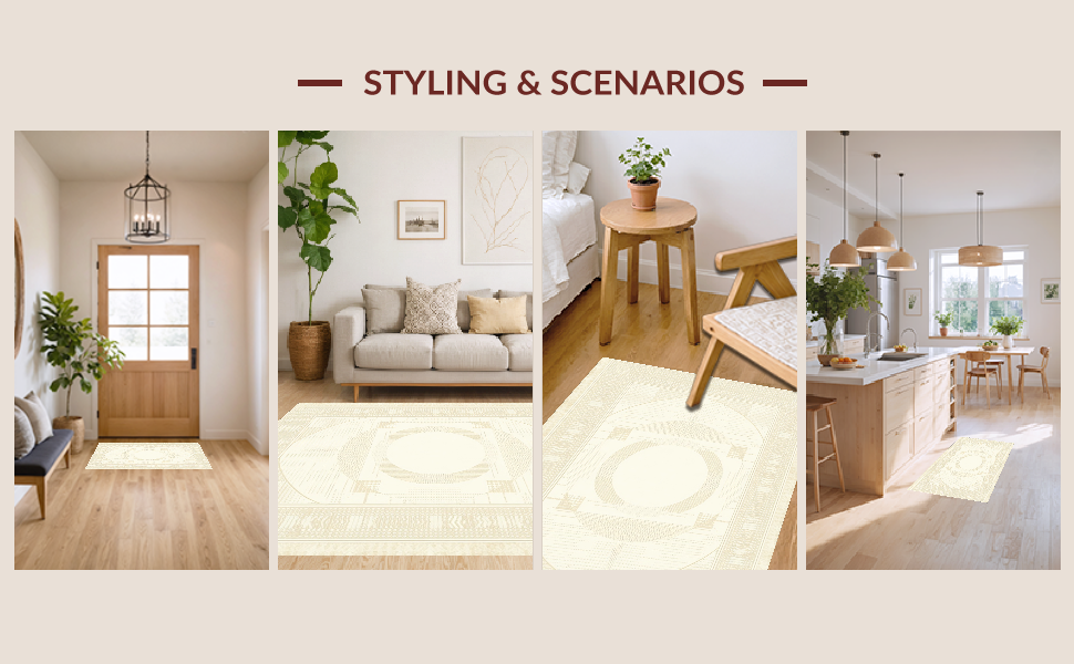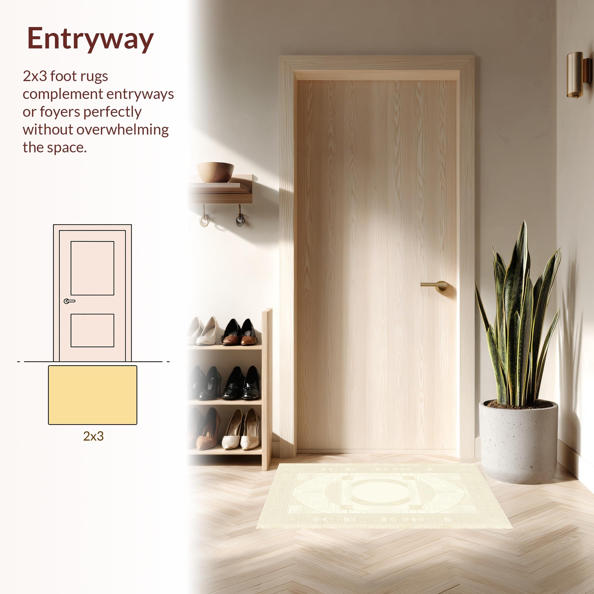 Ultra Soft Area Rug, Non Slip, Stain Resistant, Washable Area Rugs for Living Room, Bedroom, Artful Simplistic Creamy Harmony(Beige) Overview: