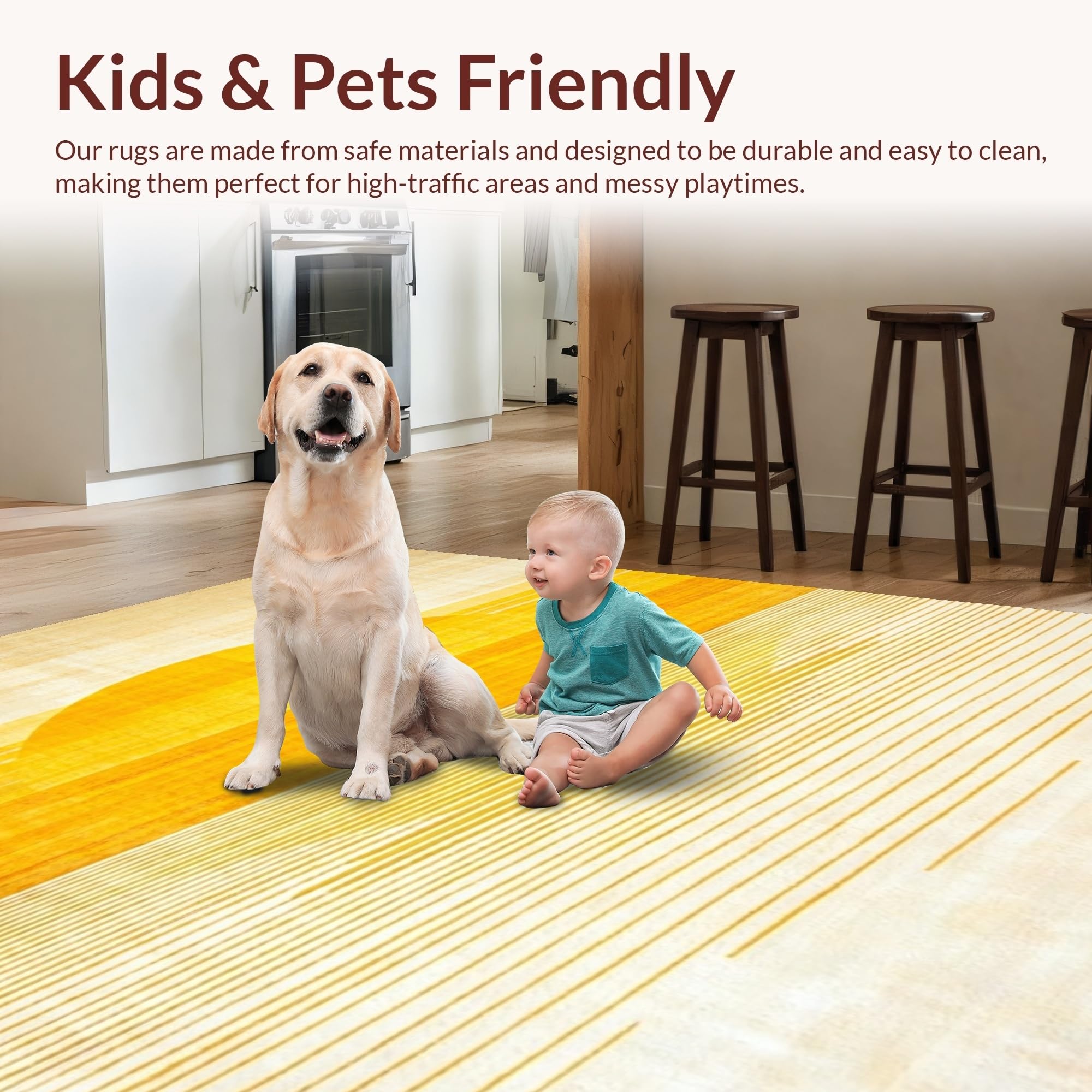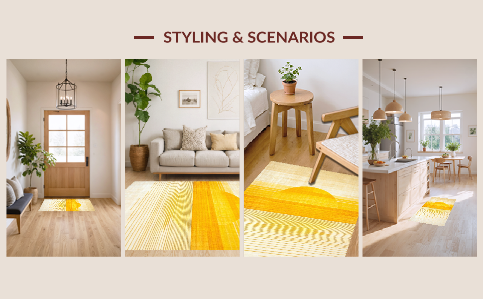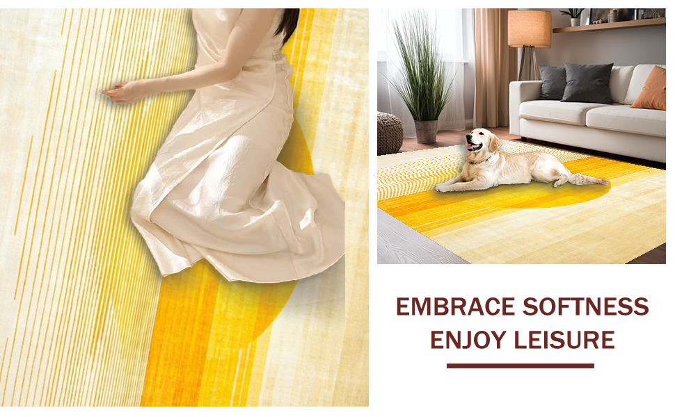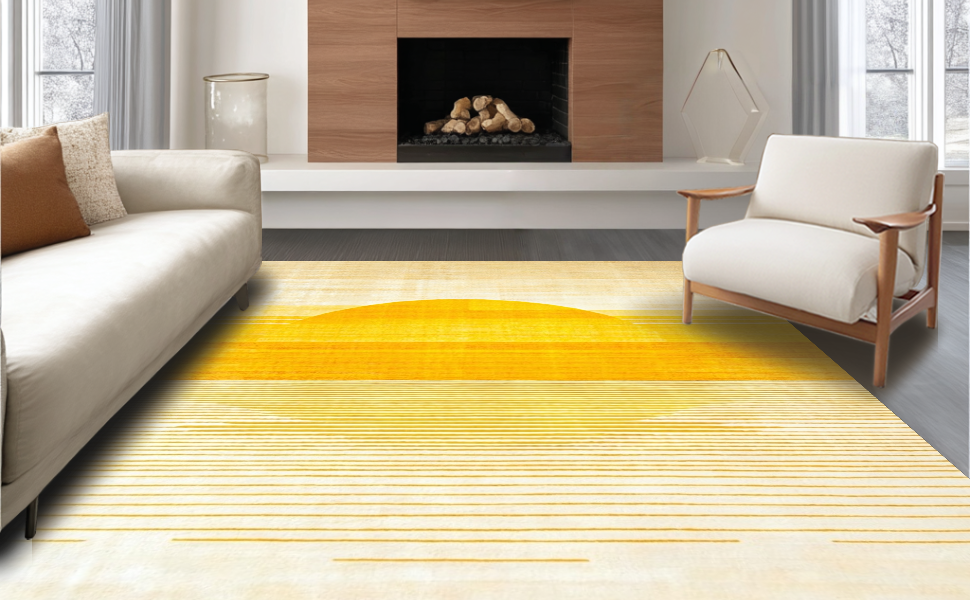 Ultra Soft Area Rug, Non Slip, Stain Resistant, Washable Area Rugs for Living Room, Bedroom, Artful Soft Gradient Radiance(Yellow) Overview: