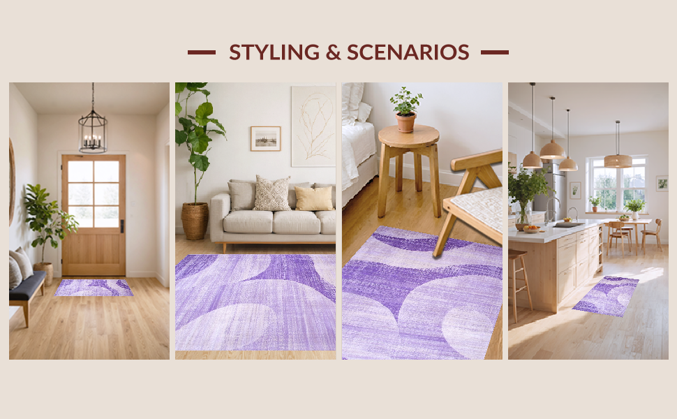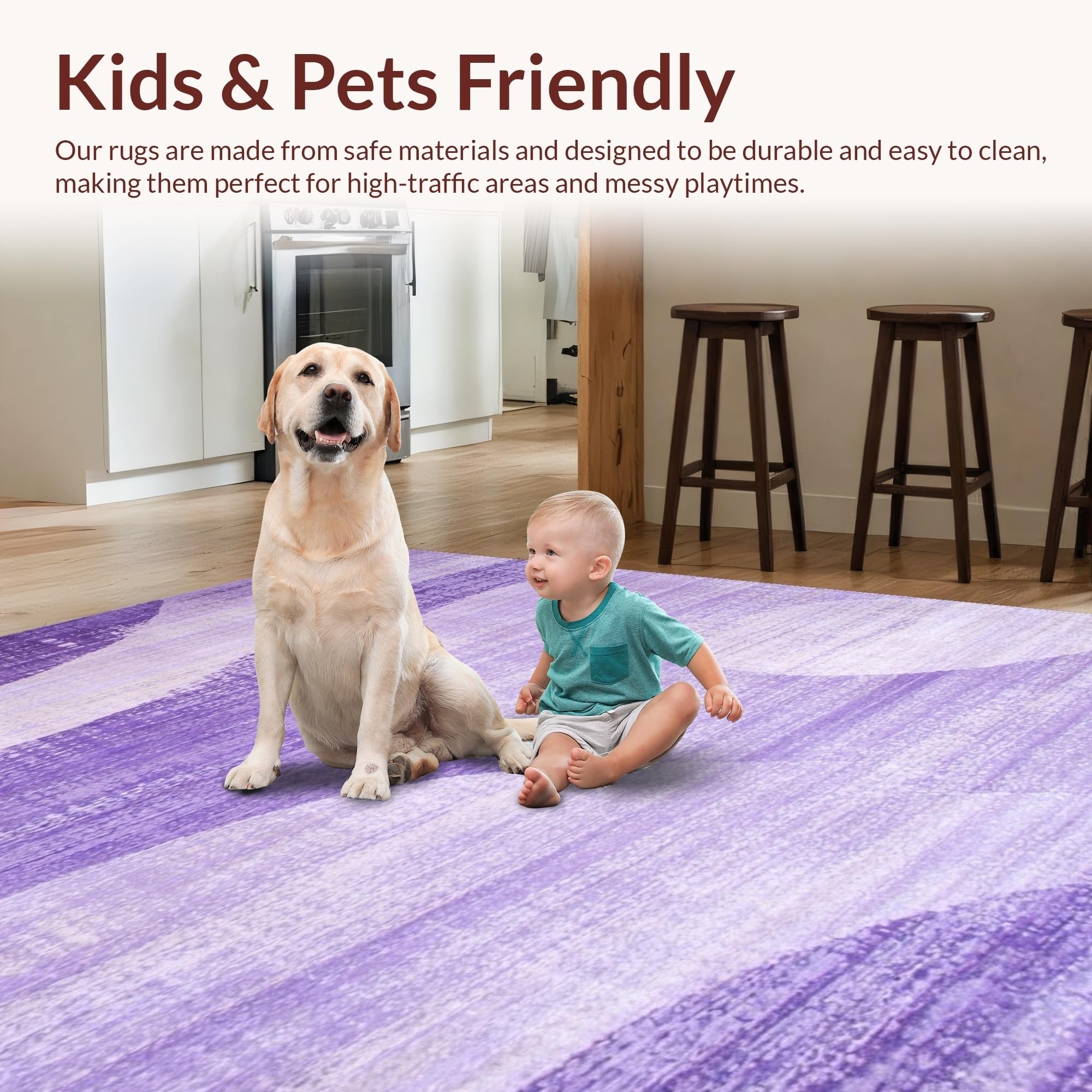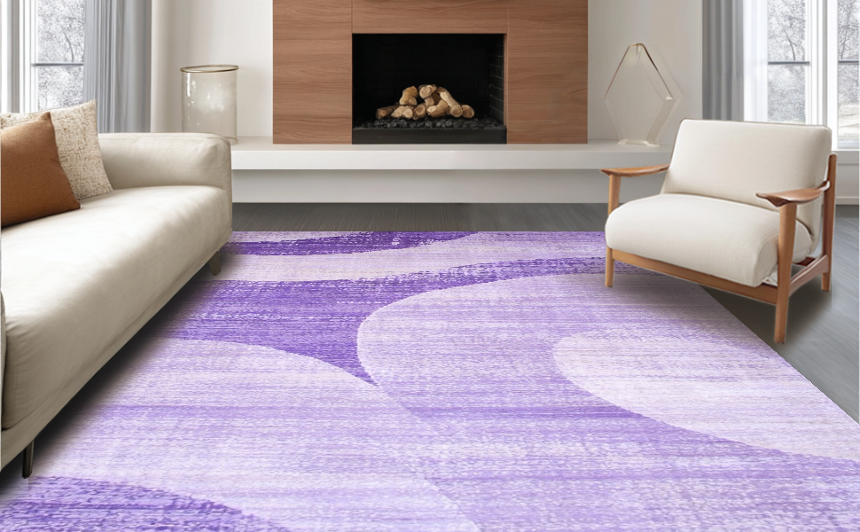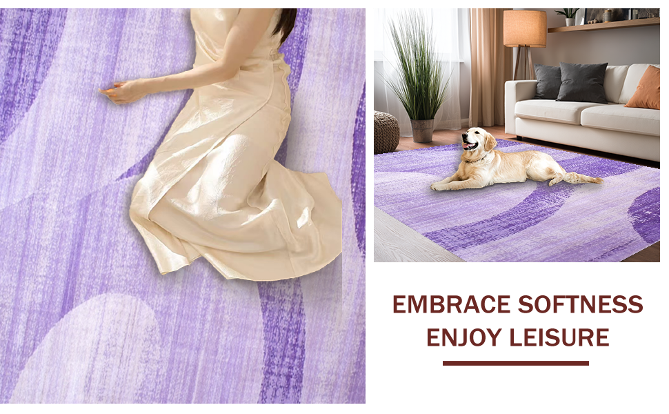 Ultra Soft Area Rug, Non Slip, Stain Resistant, Washable Area Rugs for Living Room, Bedroom, Artful Soft Plush Ombre Design(Purple) Overview: