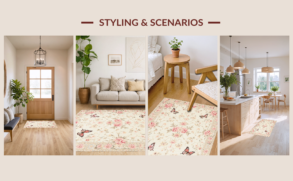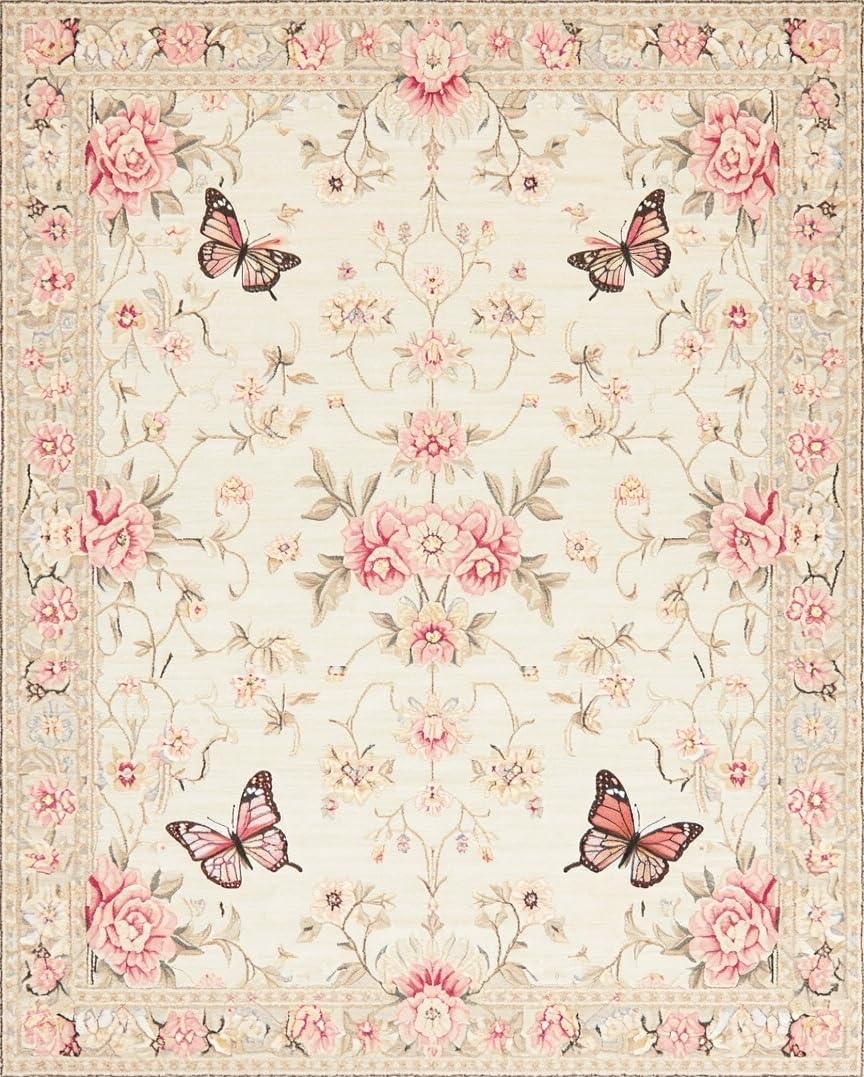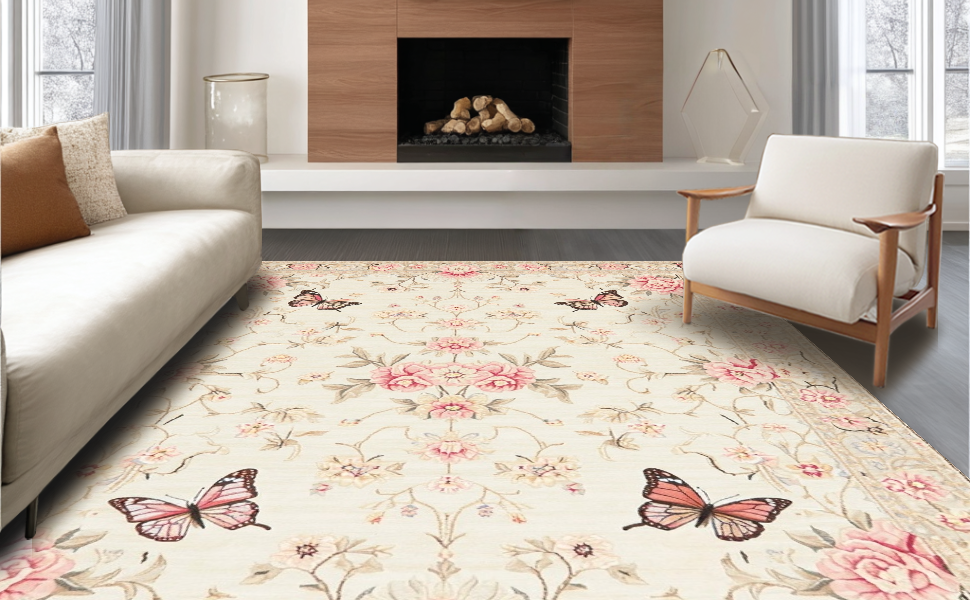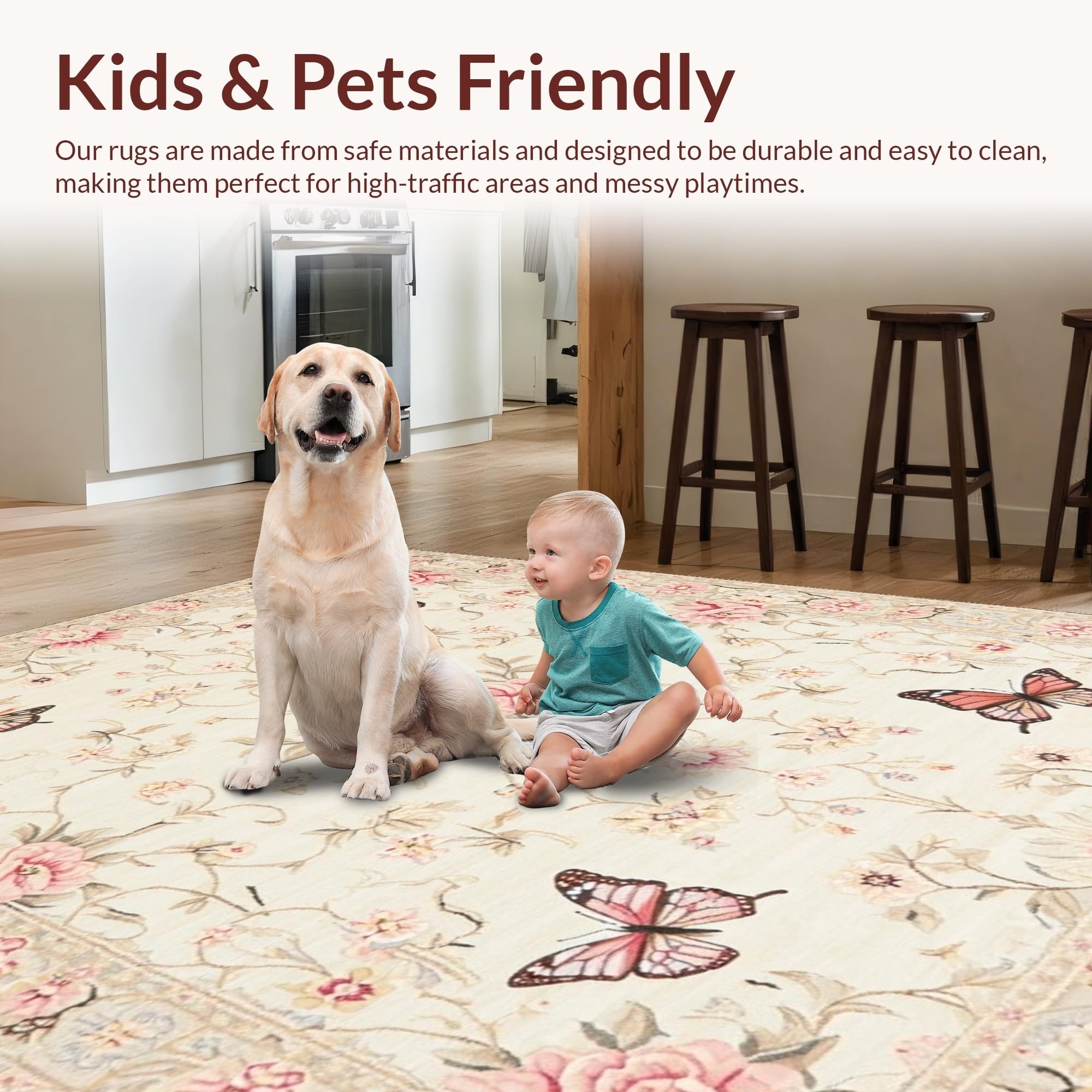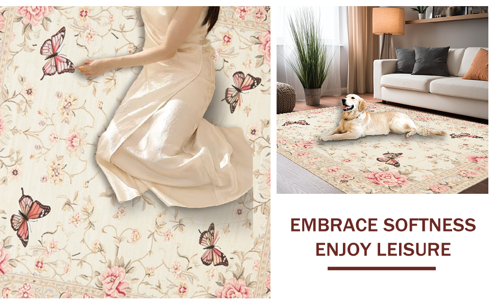 Ultra Soft Area Rug, Non Slip, Stain Resistant, Washable Area Rugs for Living Room, Bedroom, Artful Soft Toned Petal Design(Beige) Overview: