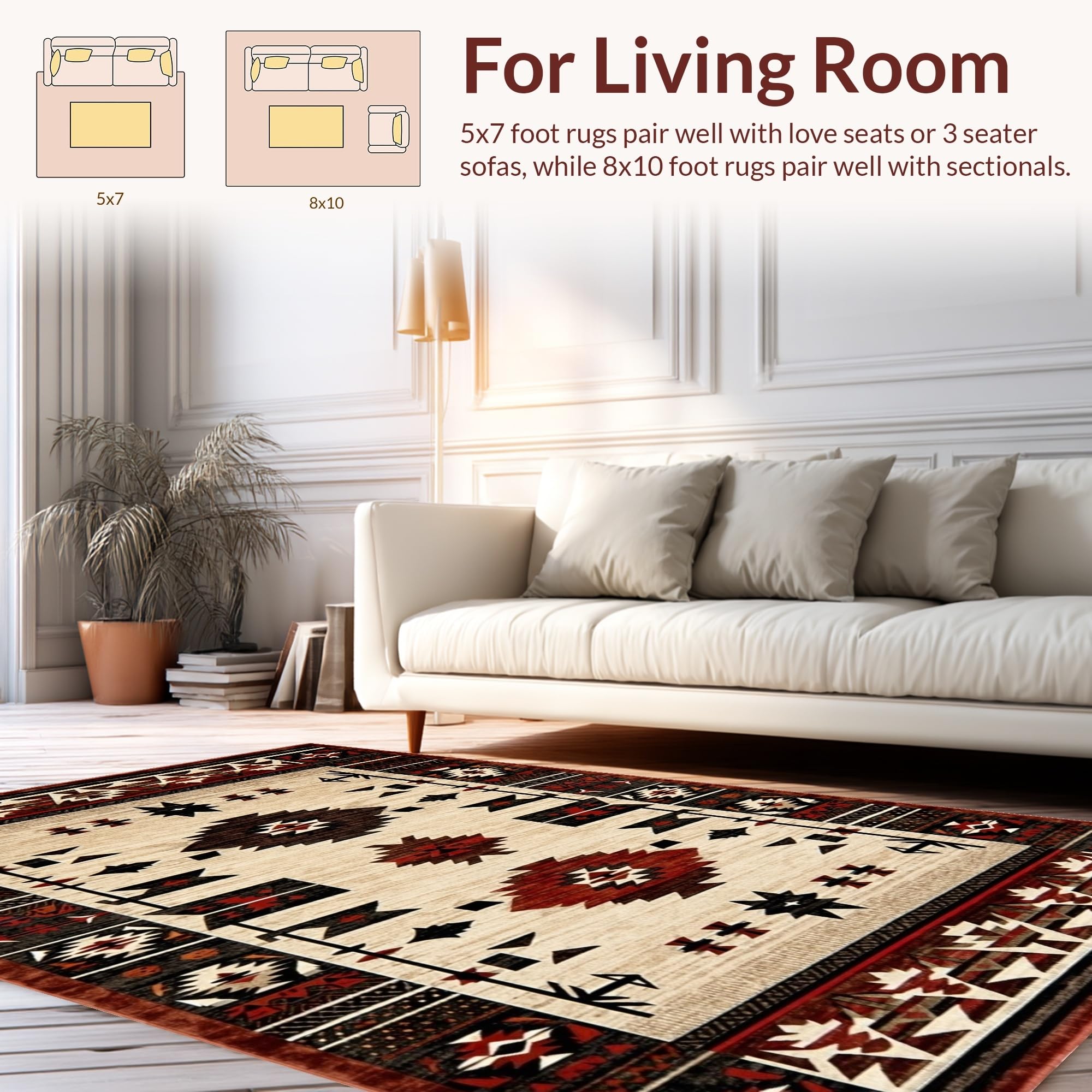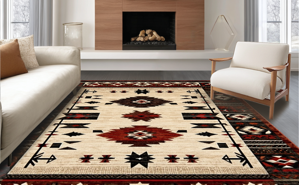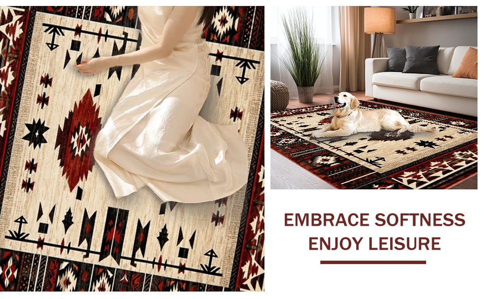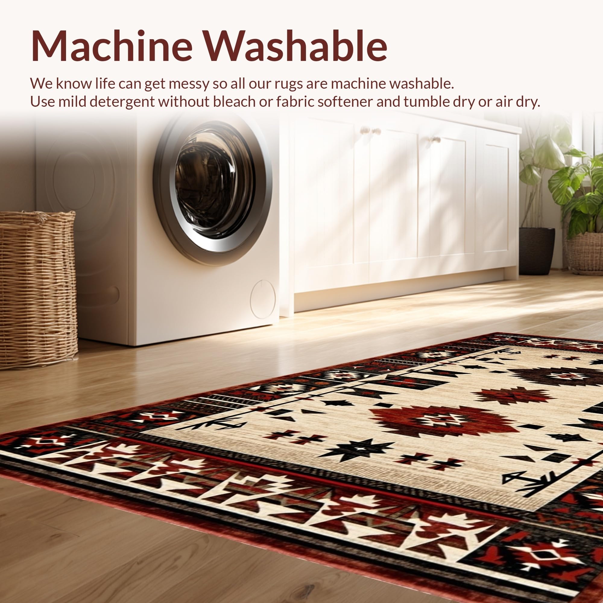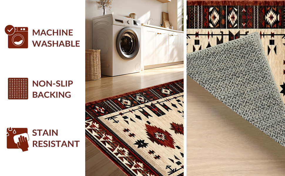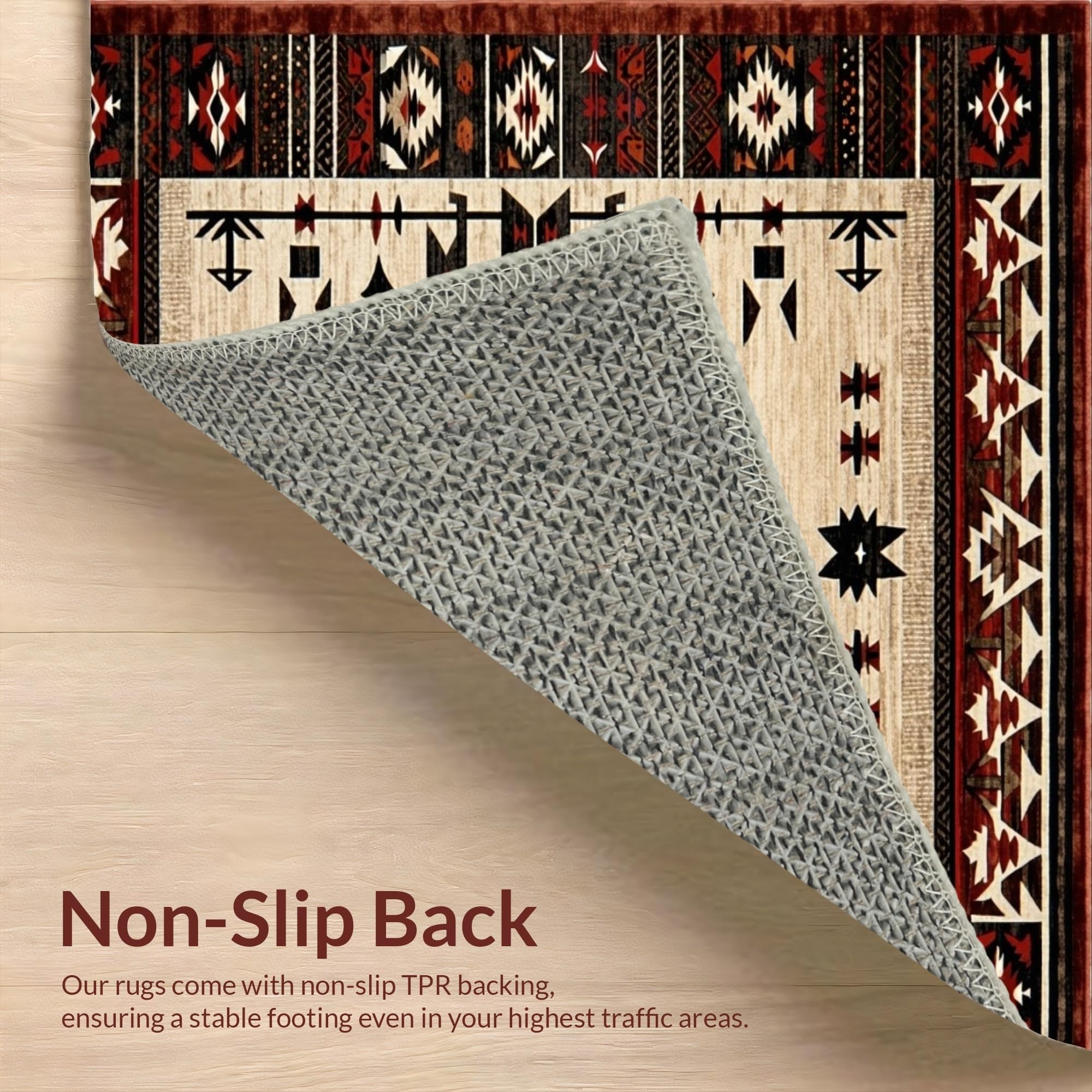 Ultra Soft Area Rug, Non Slip, Stain Resistant, Washable Area Rugs for Living Room, Bedroom, Artful Southwestern Tribal Aesthetic(Red) Overview: