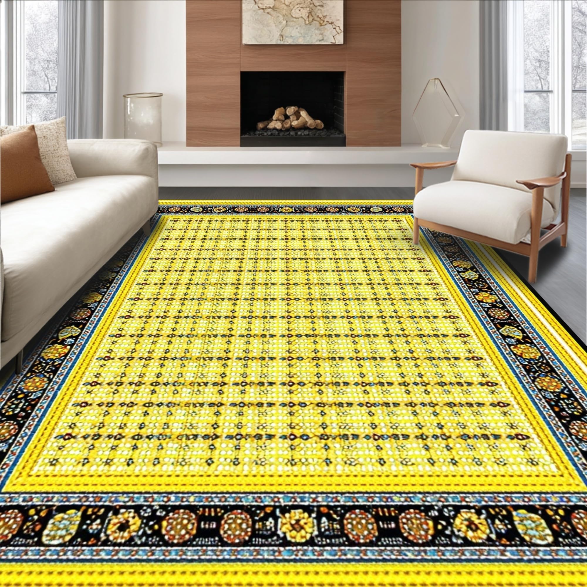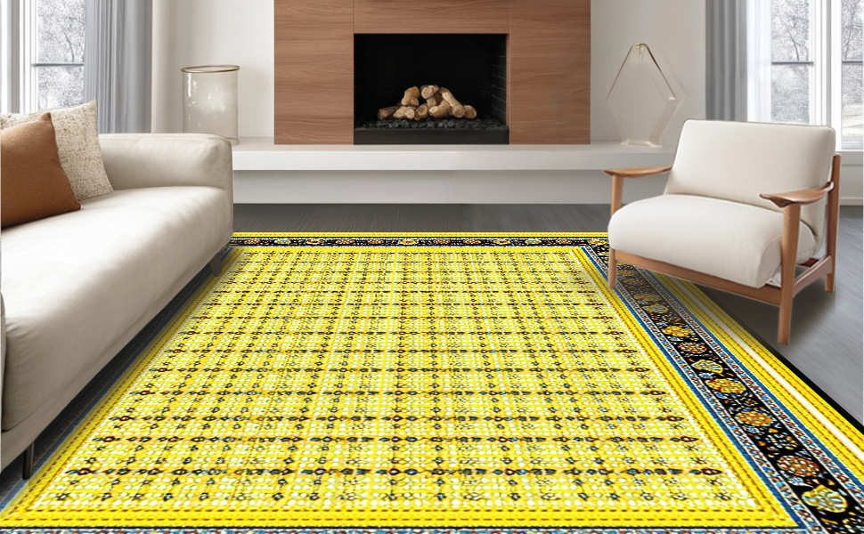 Ultra Soft Area Rug, Non Slip, Stain Resistant, Washable Area Rugs for Living Room, Bedroom, Artful Springtime Egg Medley(Yellow) Overview: