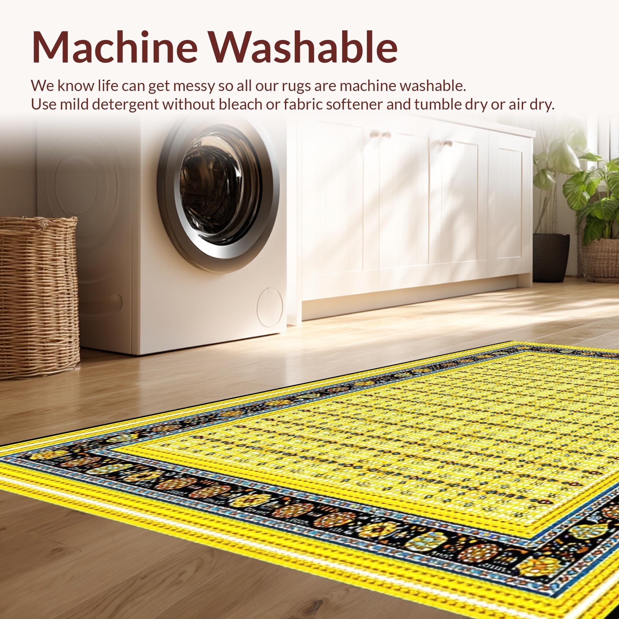 - Machine Washable: Our rugs can be easily thrown in the wash machine.