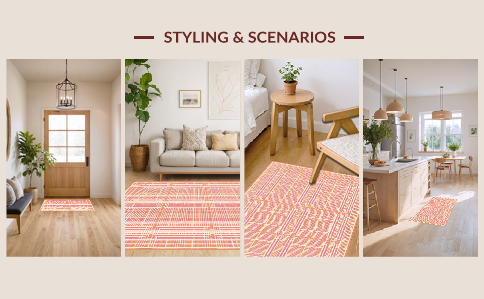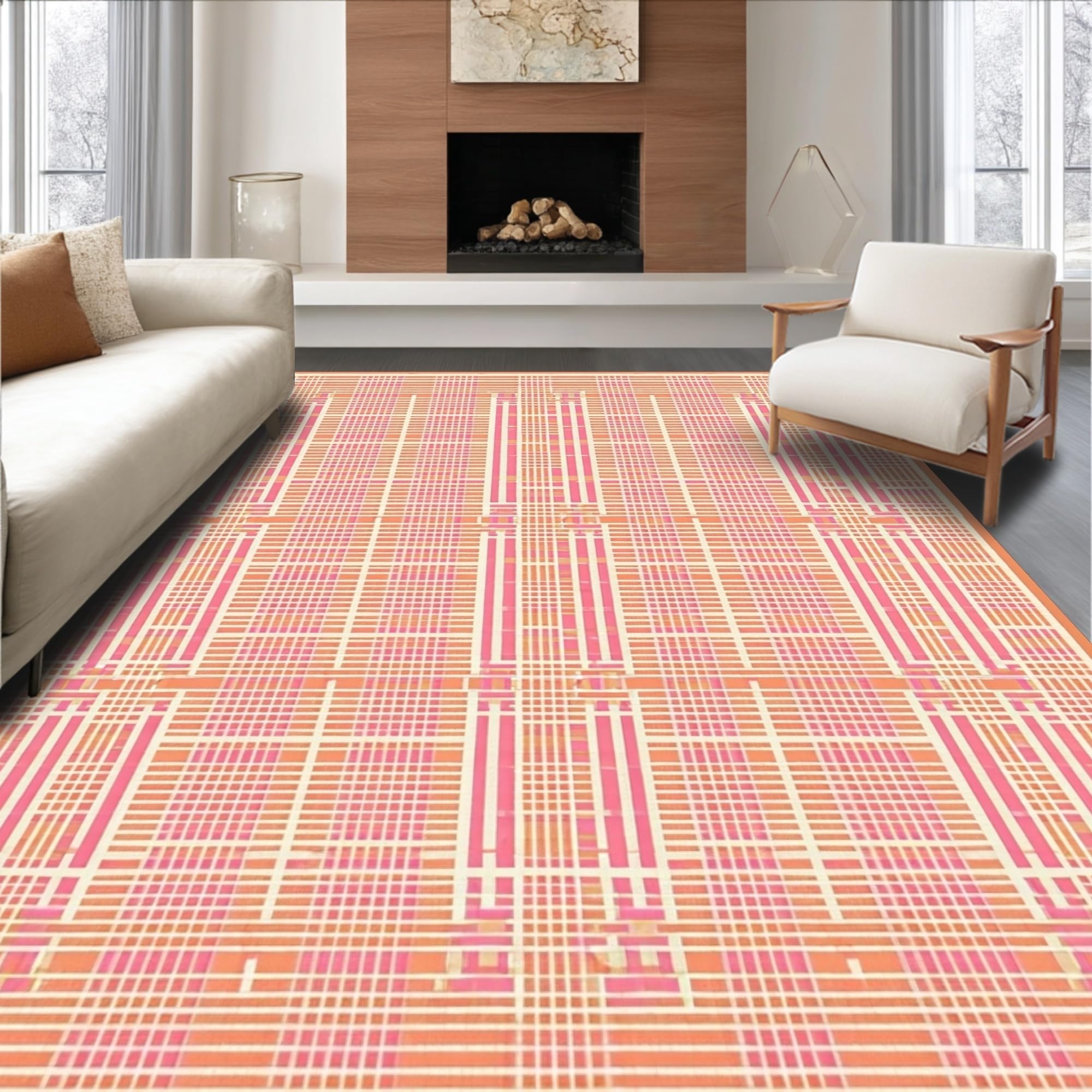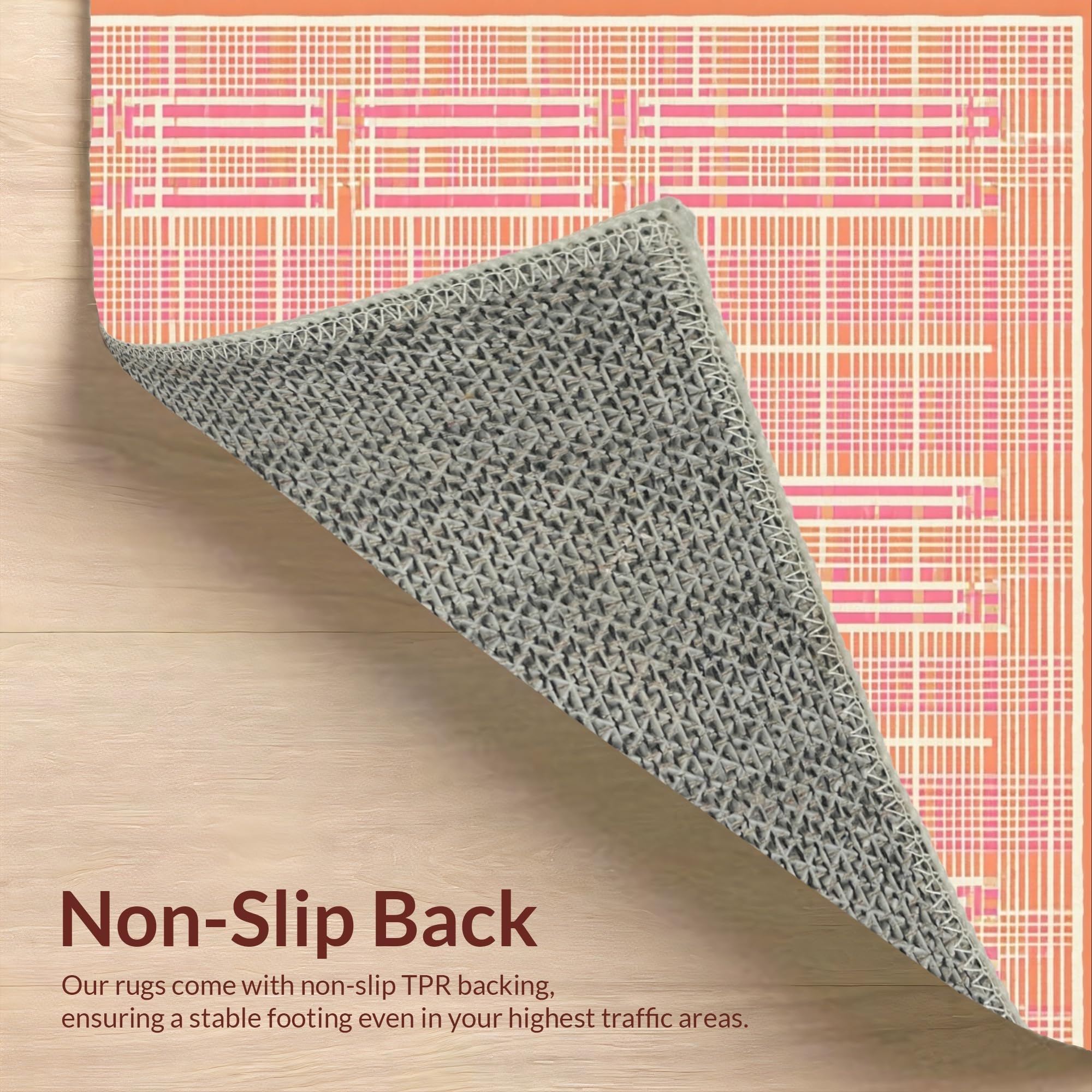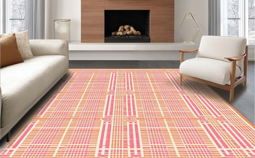 Ultra Soft Area Rug, Non Slip, Stain Resistant, Washable Area Rugs for Living Room, Bedroom, Artful Striped Color Block Design(Orange) Overview: