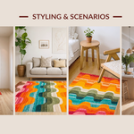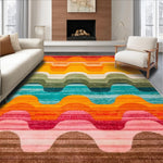 Ultra Soft Area Rug, Non Slip, Stain Resistant, Washable Area Rugs for Living Room, Bedroom, Artful Striped Colorful Motif(Orange) Overview:
