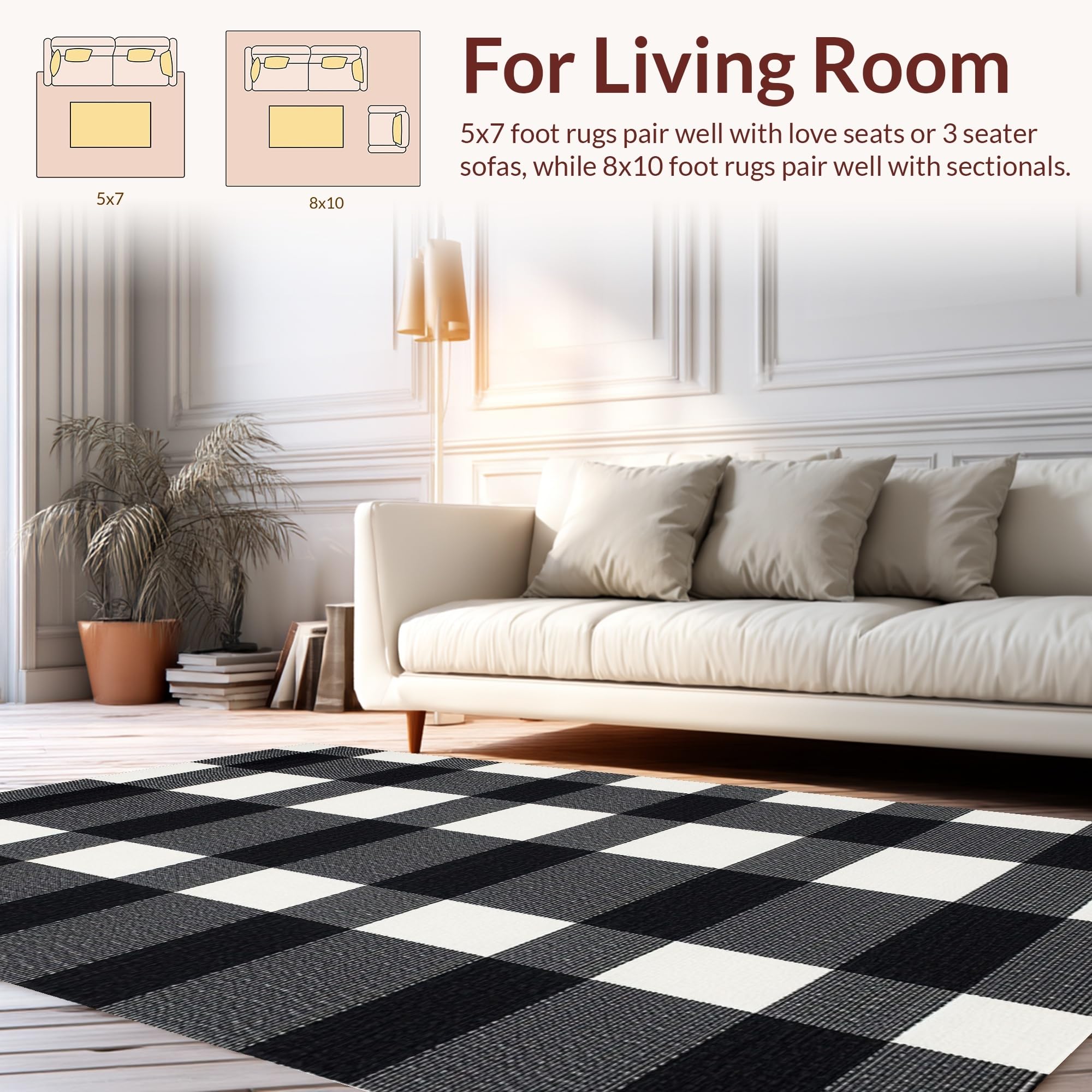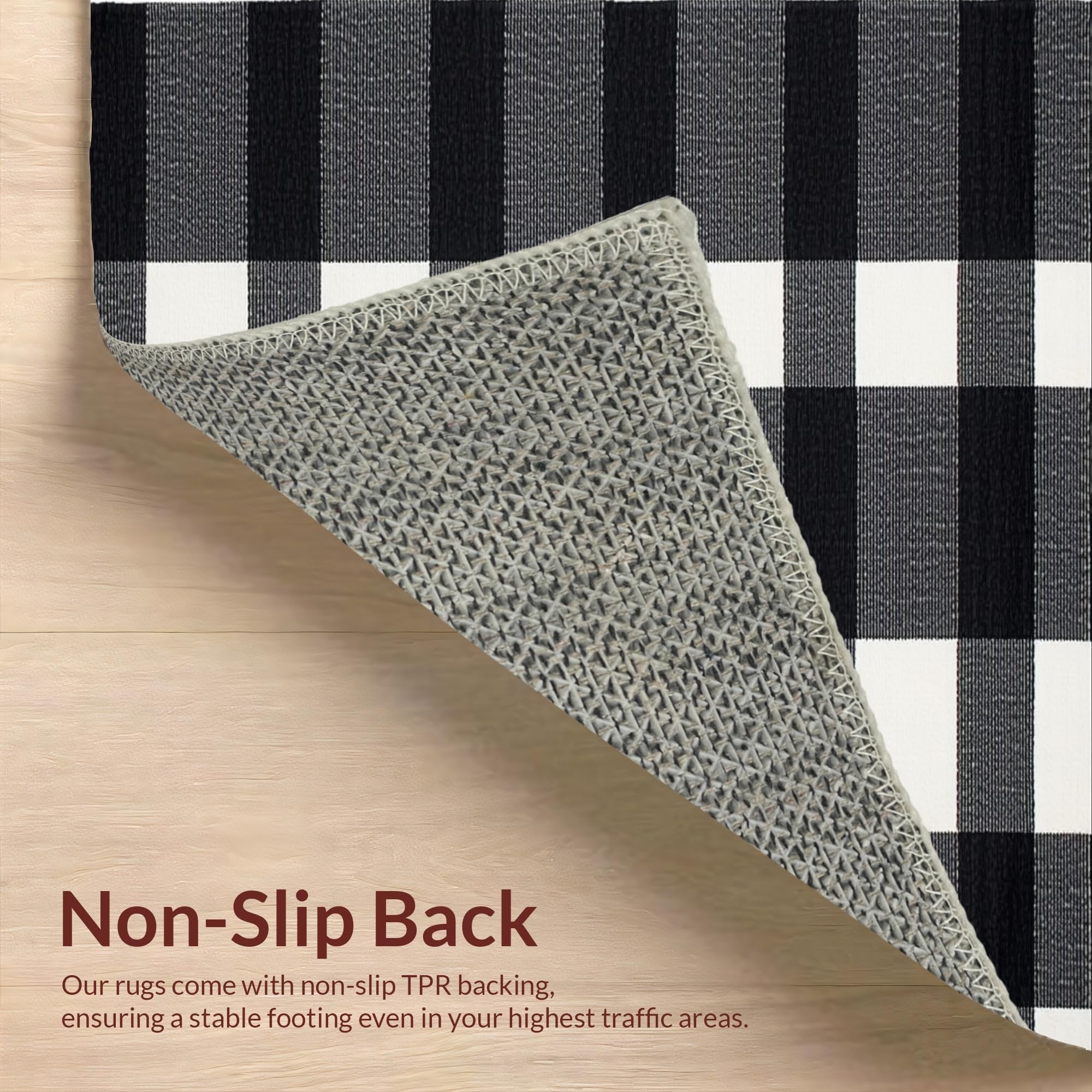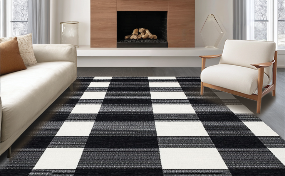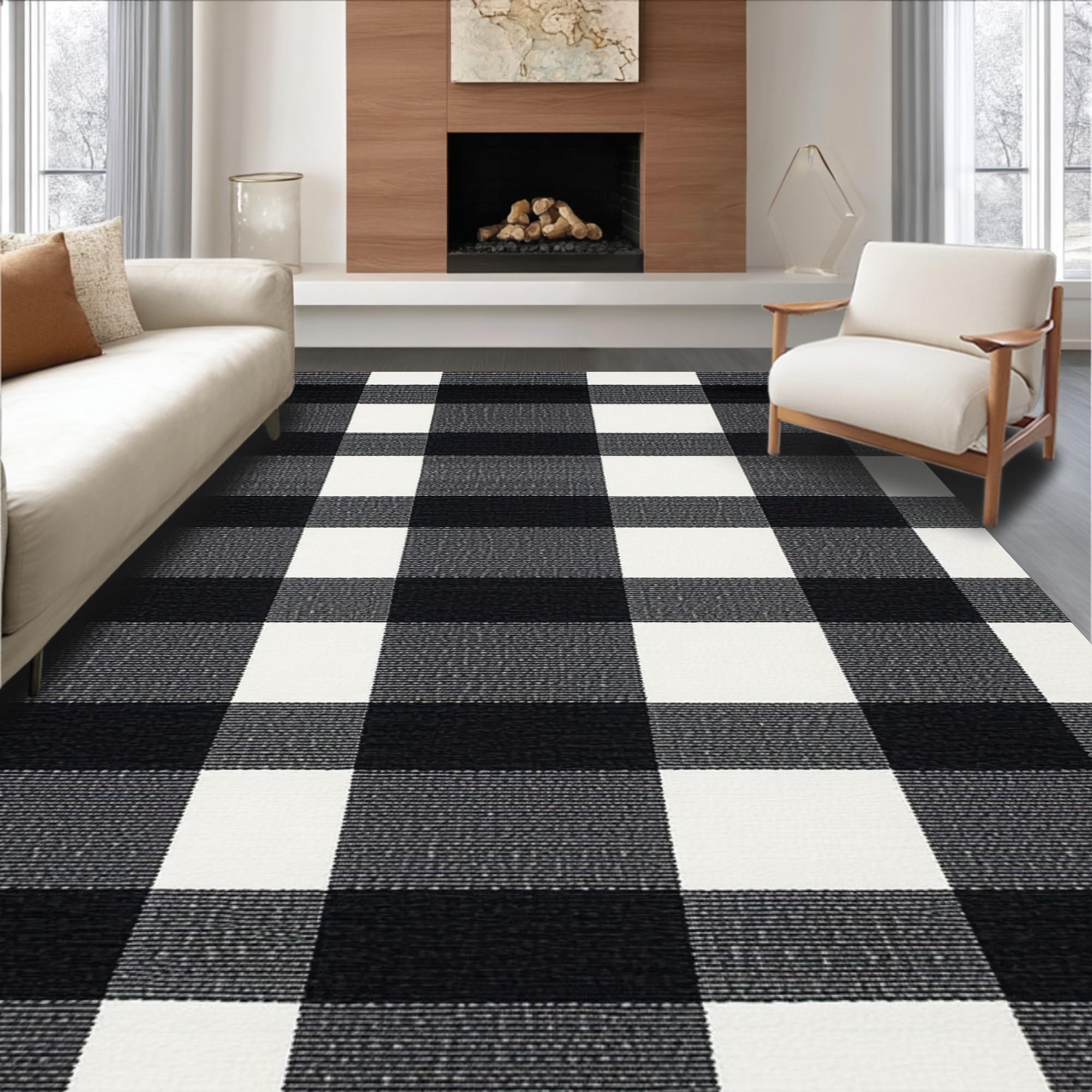 Ultra Soft Area Rug, Non Slip, Stain Resistant, Washable Area Rugs for Living Room, Bedroom, Artful Striped Decorative Essence(Black) Overview: