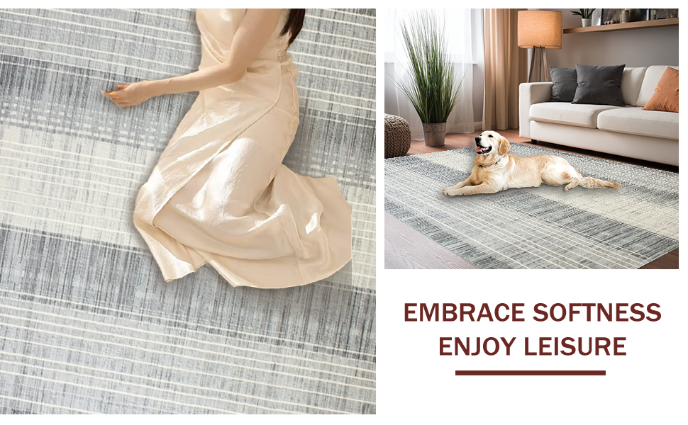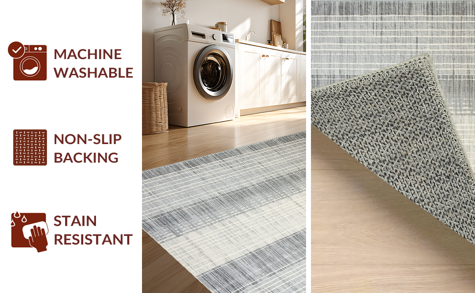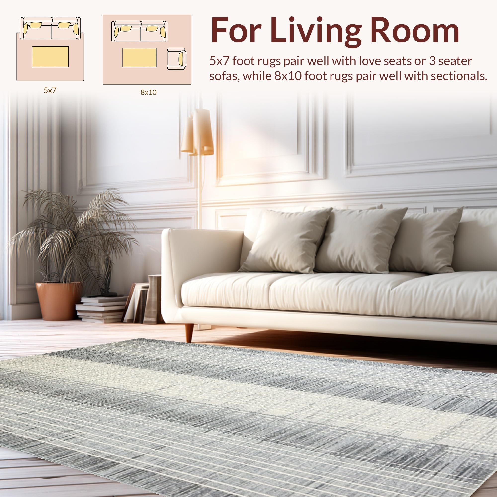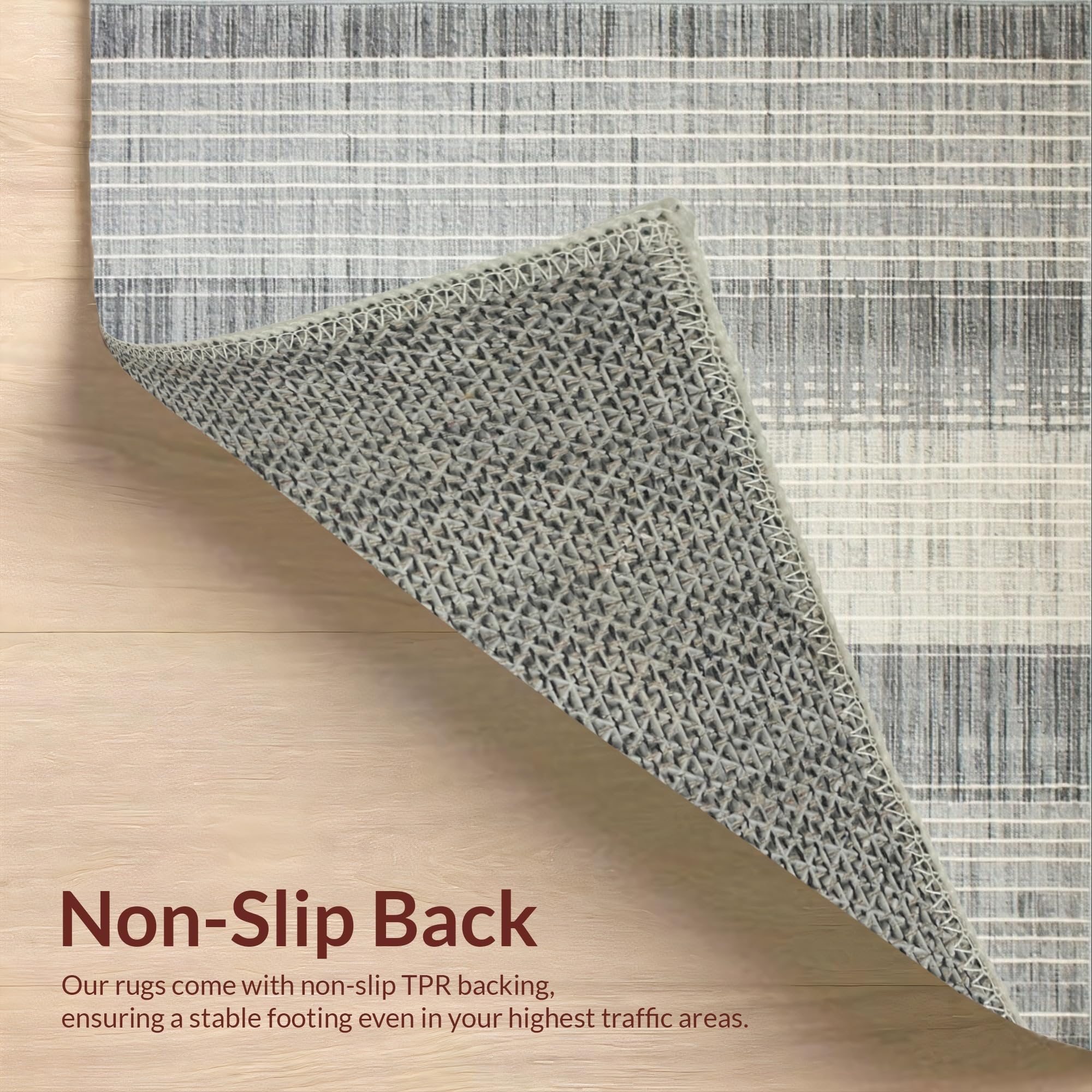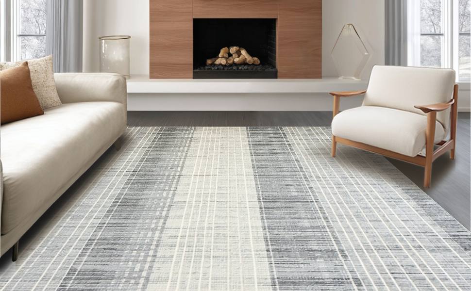Ultra Soft Area Rug, Non Slip, Stain Resistant, Washable Area Rugs for Living Room, Bedroom, Artful Striped Motif with Flair(Gray) Overview: