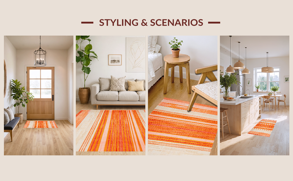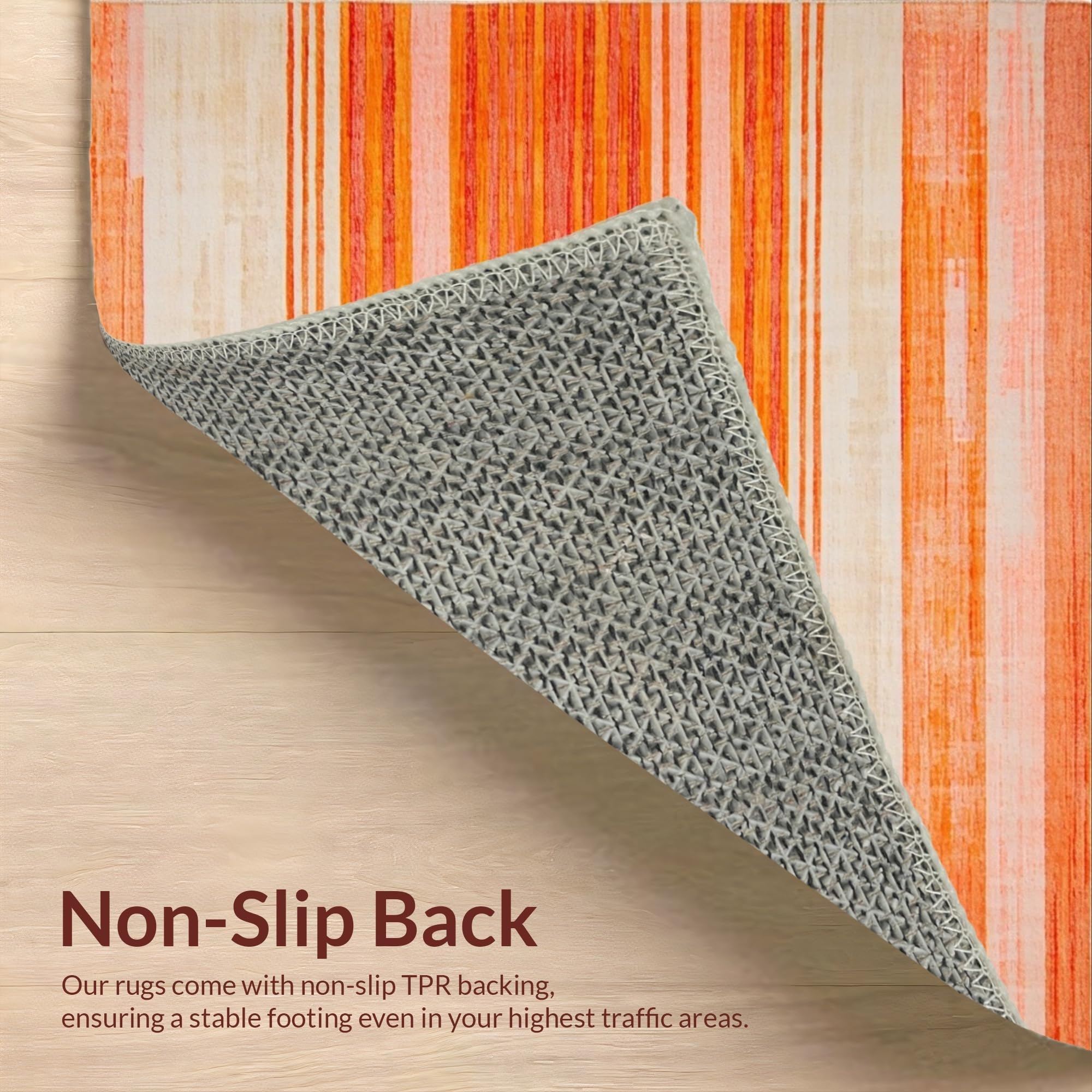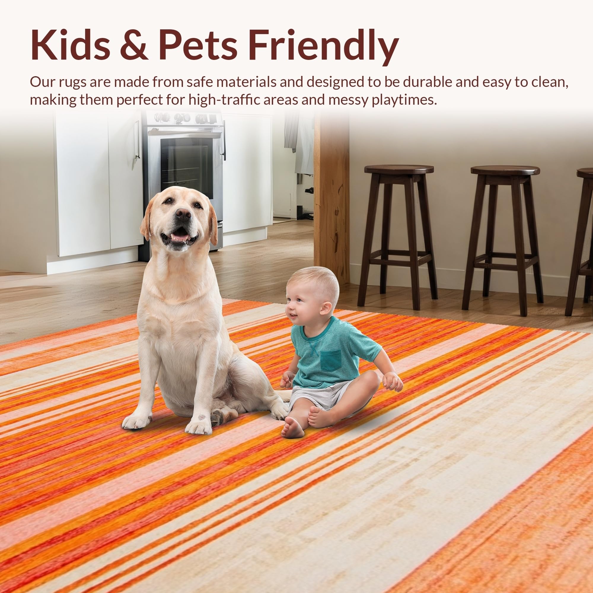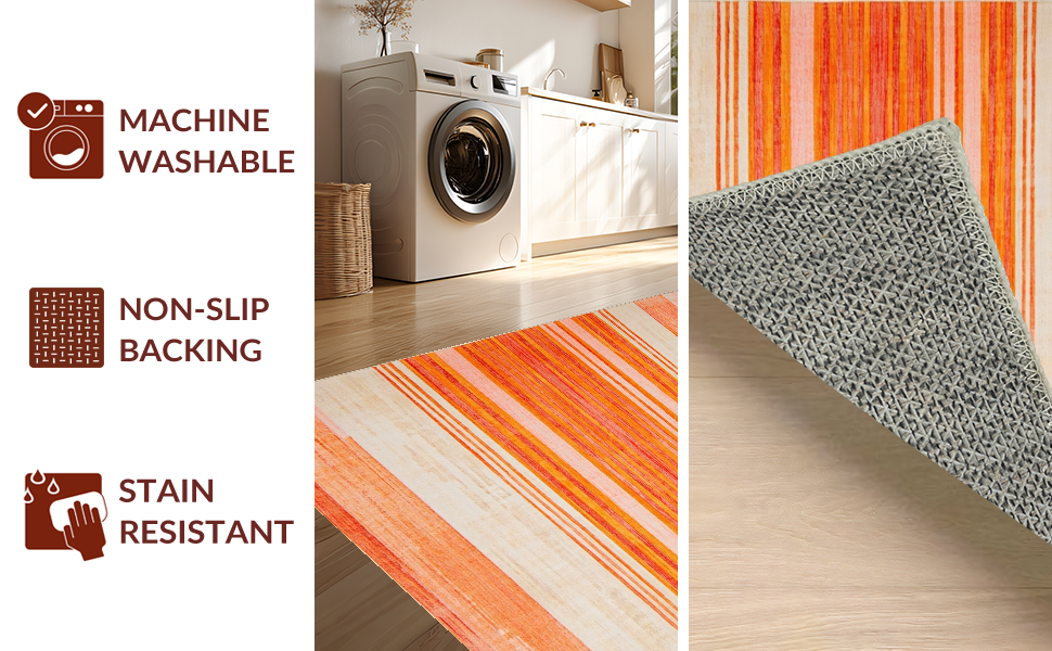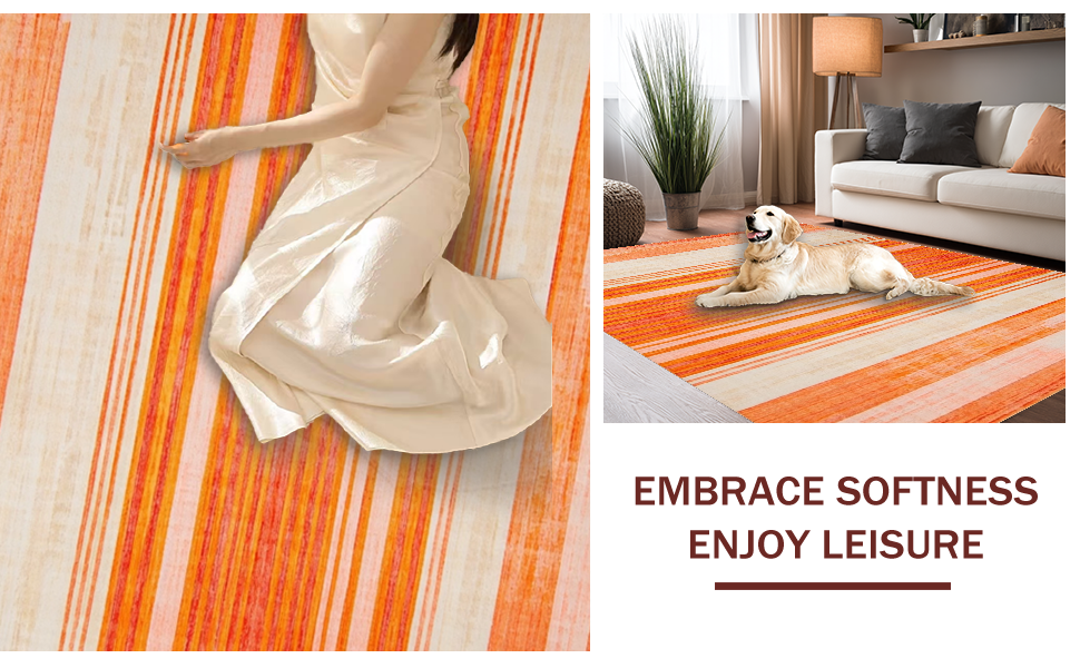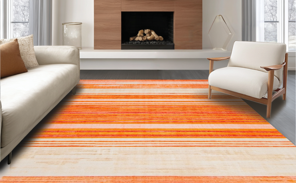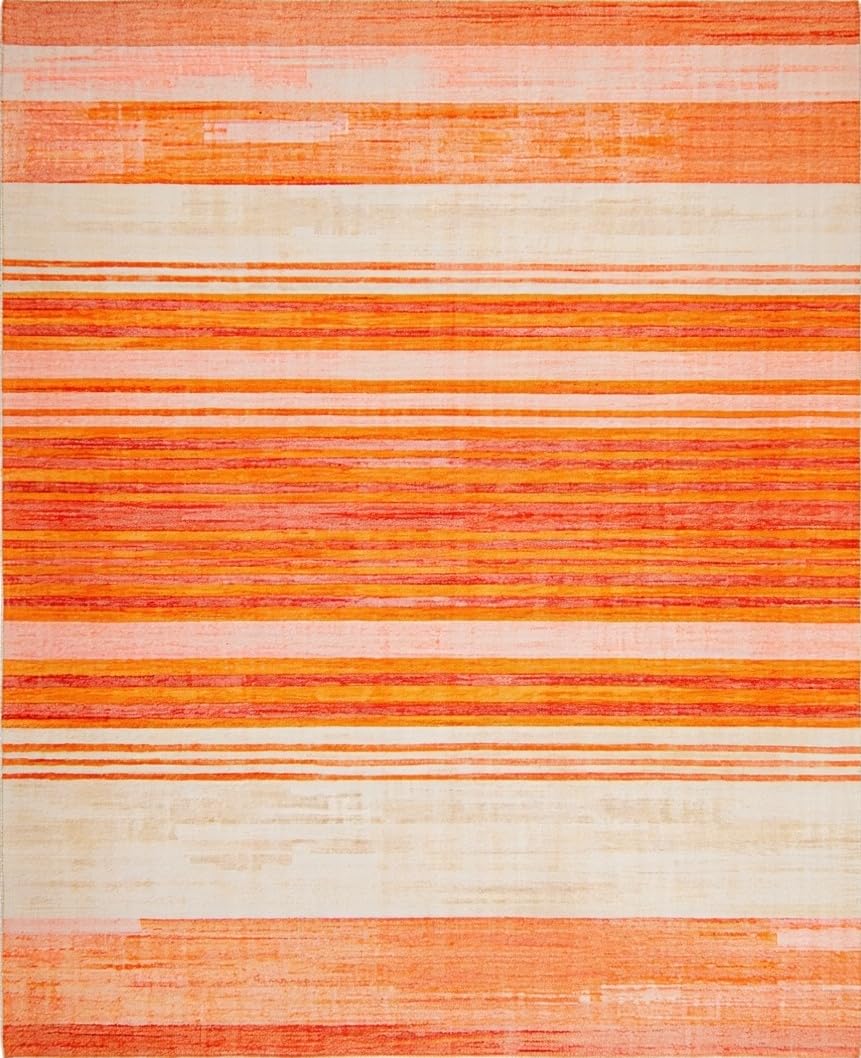 Ultra Soft Area Rug, Non Slip, Stain Resistant, Washable Area Rugs for Living Room, Bedroom, Artful Stripes with Playful Vibes(Orange) Overview: